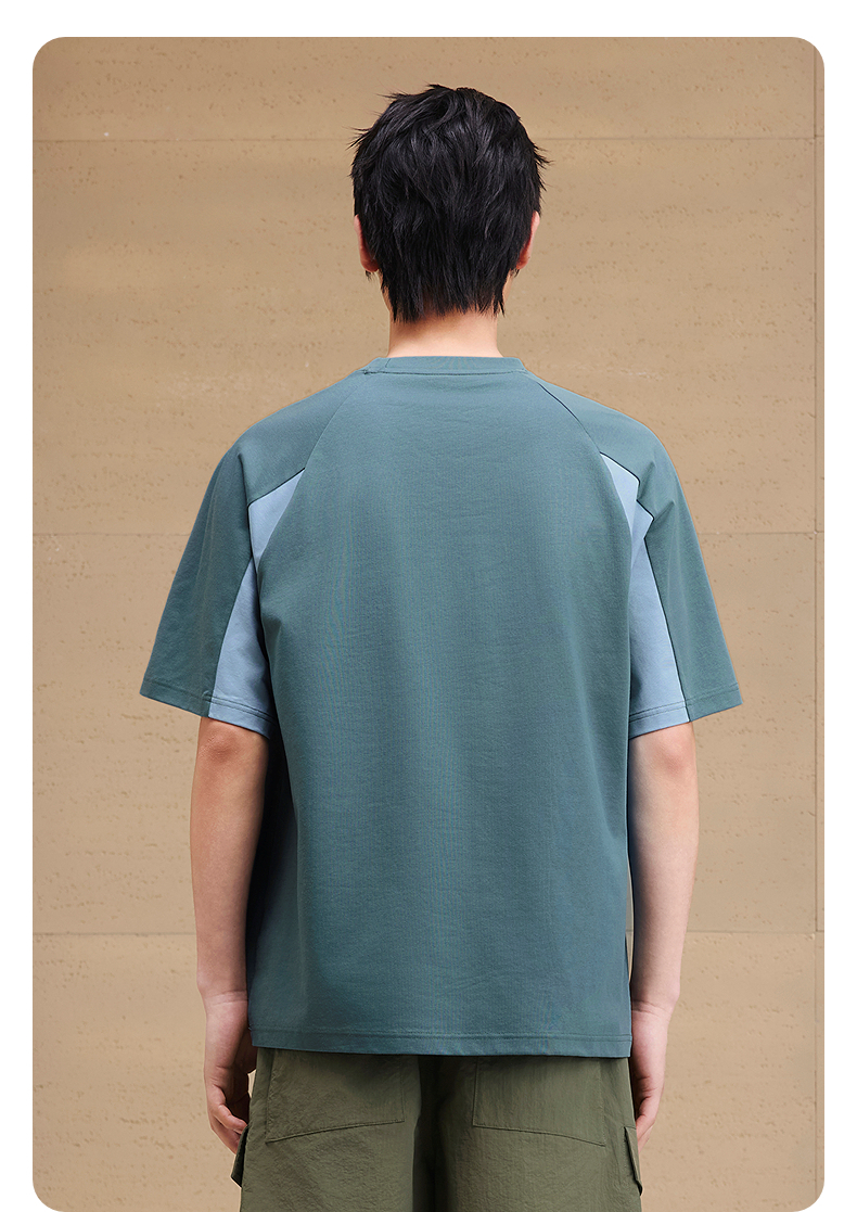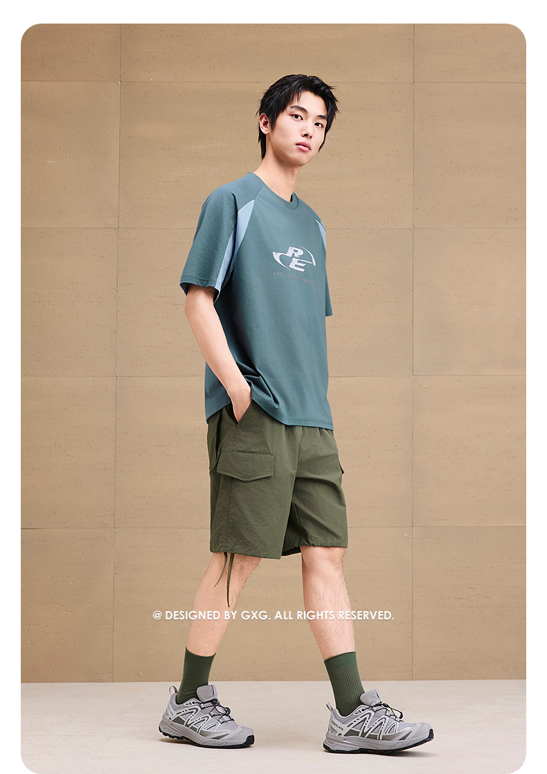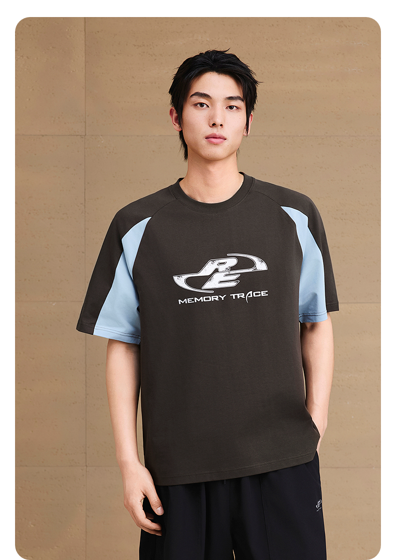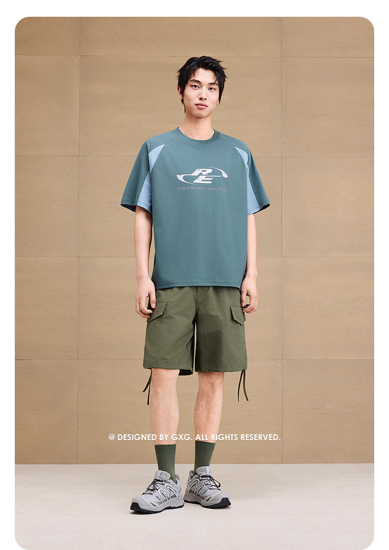 GXG男装 圆领T恤撞色拼接图案印花上衣凉感短袖针织 2025夏季热卖