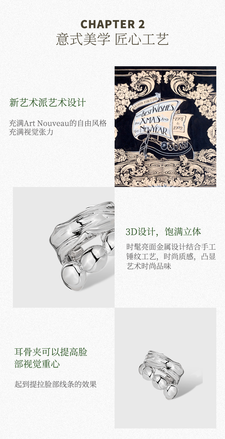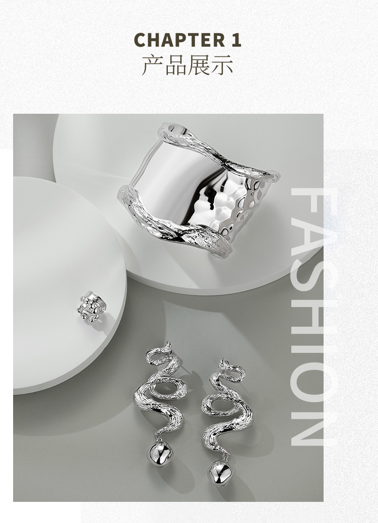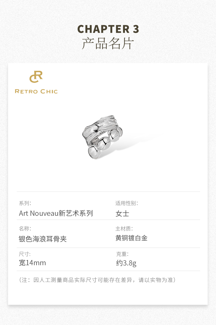 Mordern Art 现代艺术时期 | 银色海浪耳骨夹(1对)