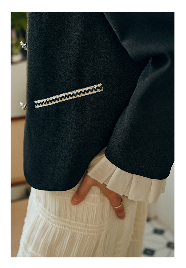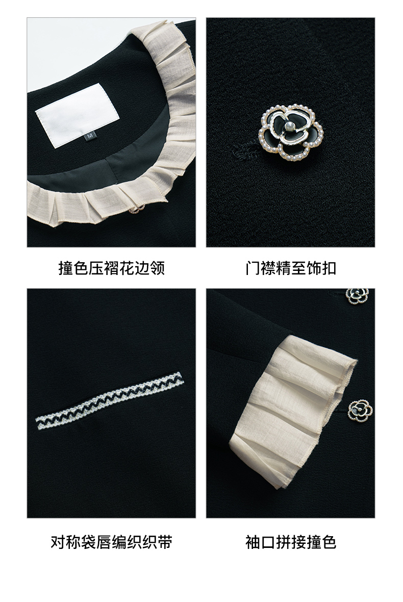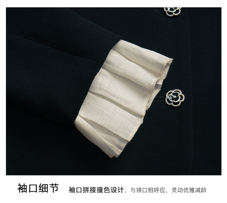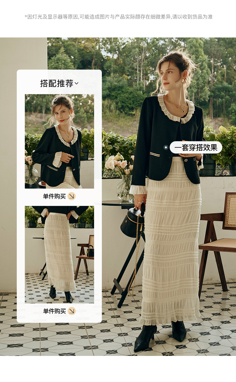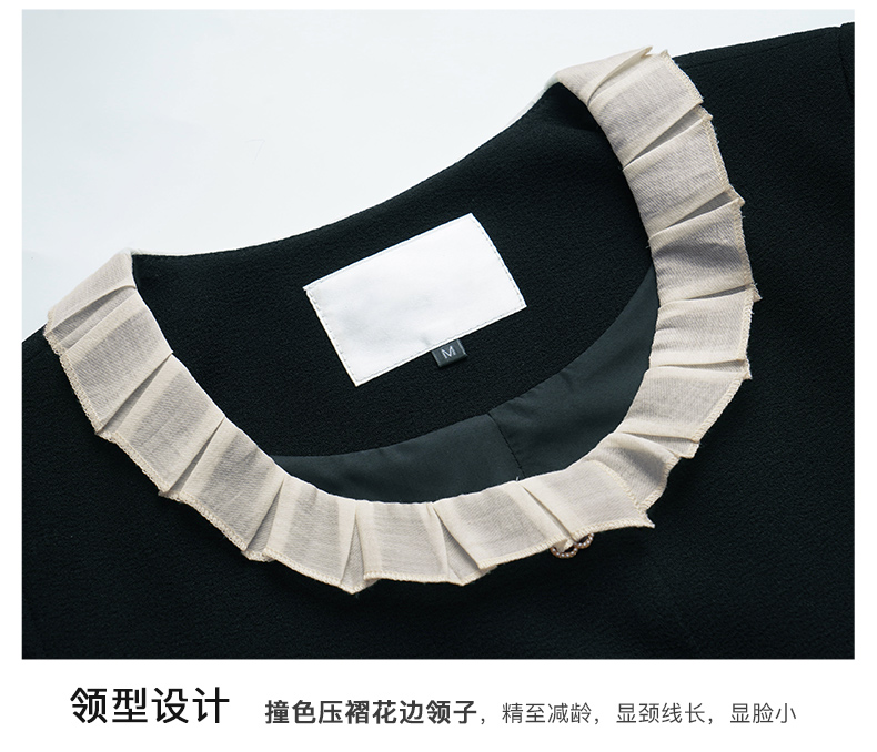 OLrain欧芮儿黑色短外套初秋2023年新款法式名媛娃娃领花边领外套