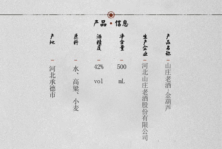 【酒厂直营】山庄老酒 金葫芦 42度500ml×6浓香型白酒