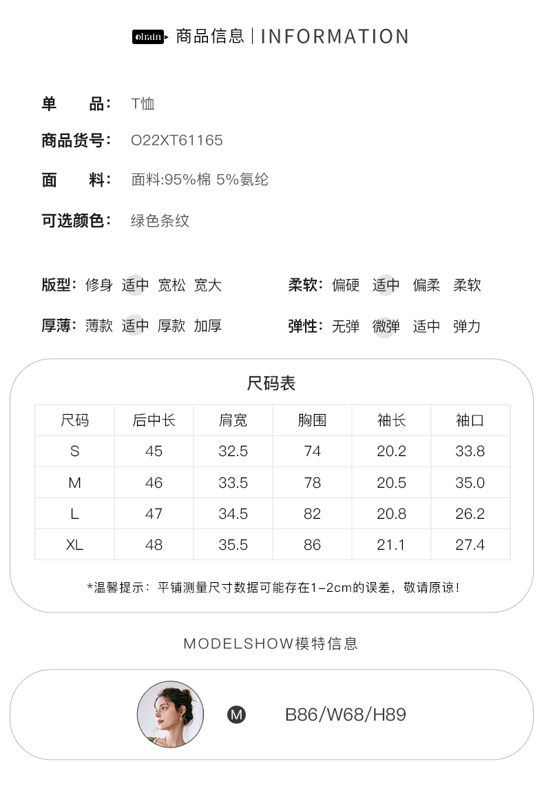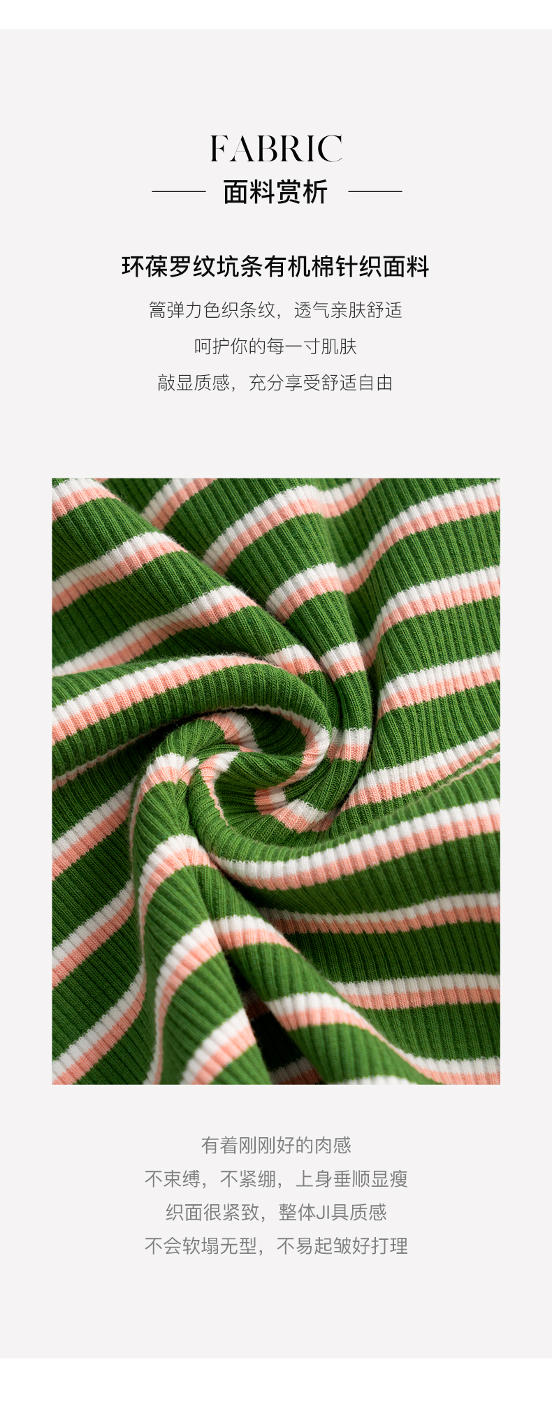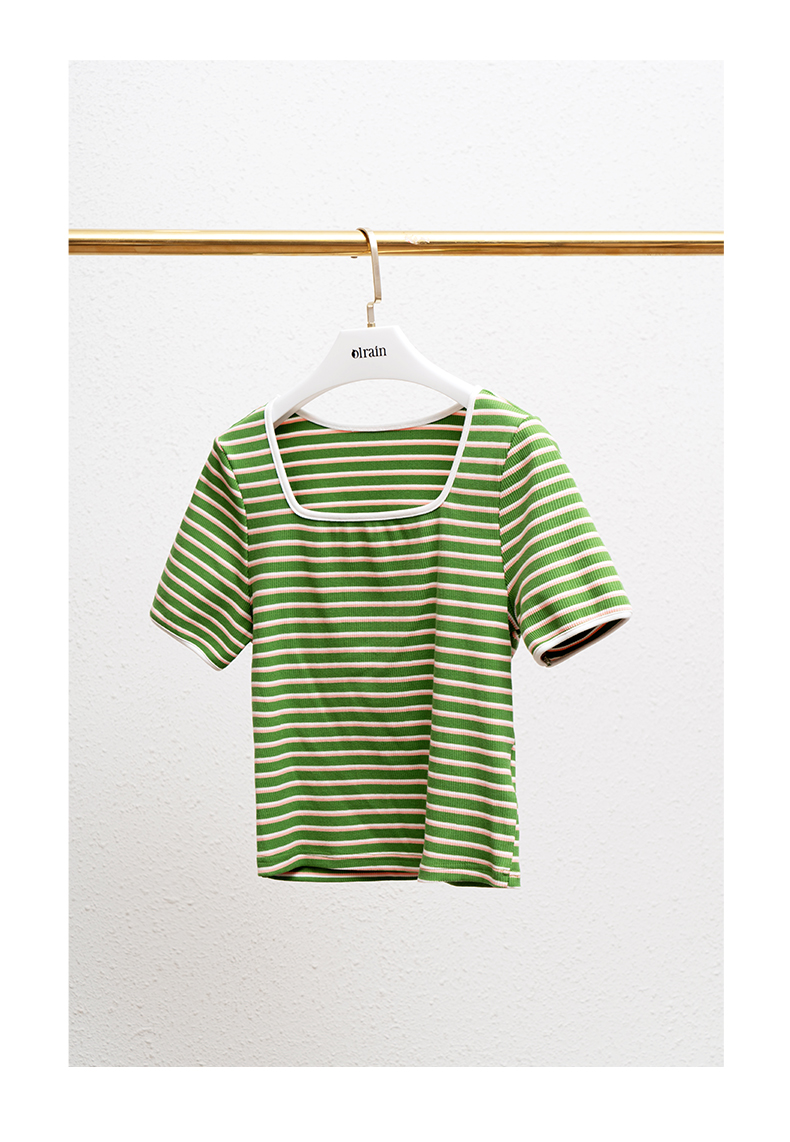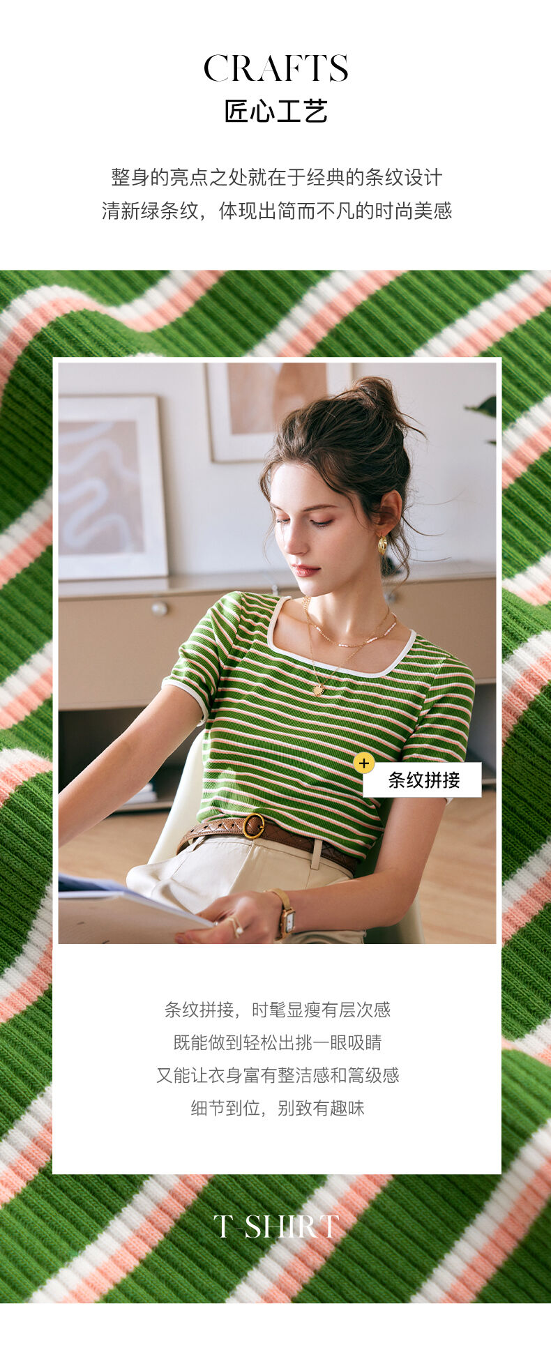 欧芮儿条纹短袖T恤女夏季2022新款修身时尚方领撞色冰爽薄款上衣