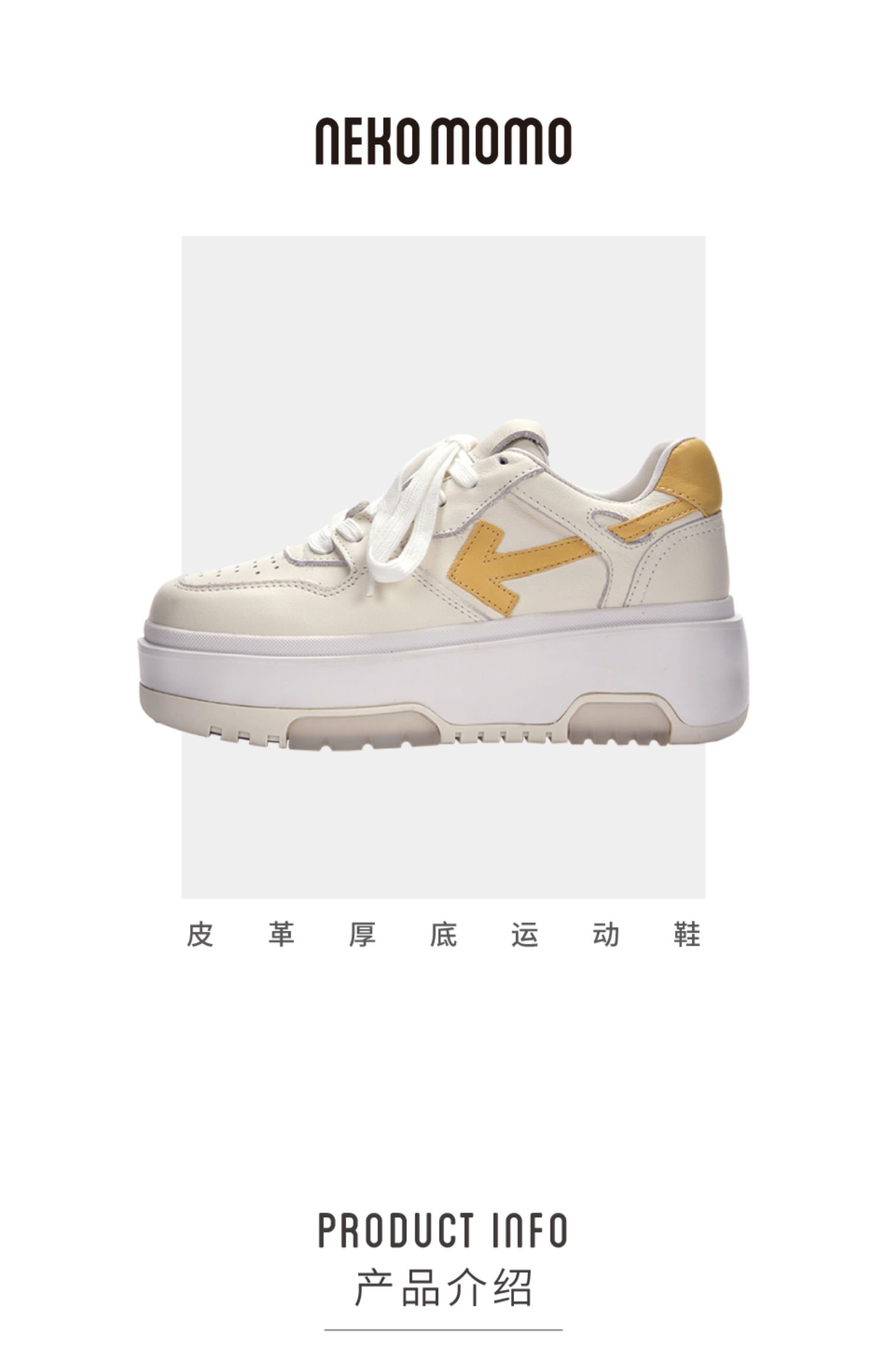 nekomomo2023年春季新款商场同款头层牛皮系带厚底板鞋女小白鞋女