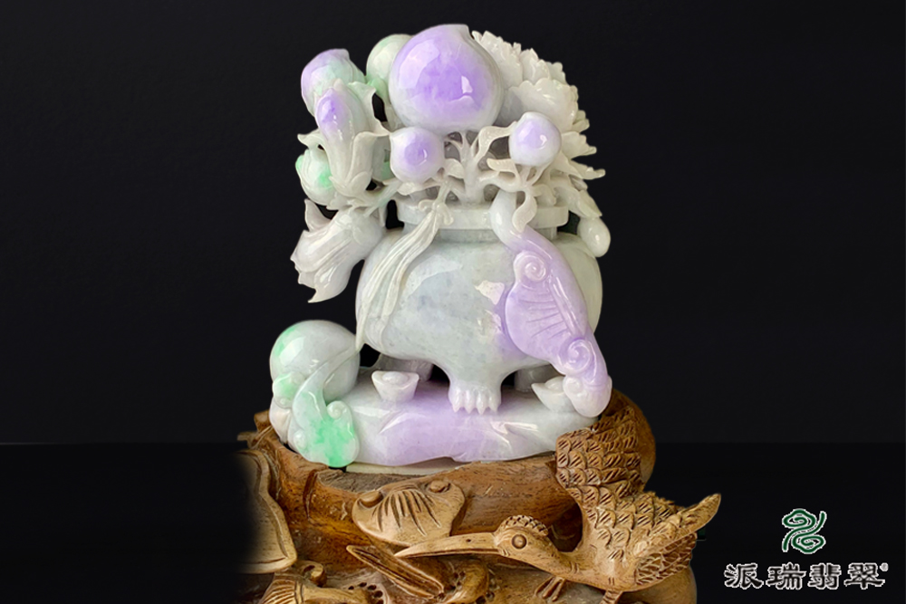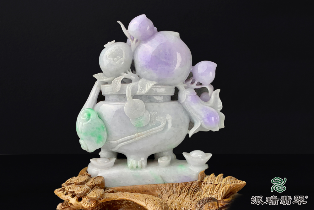 派瑞翡翠 翡翠摆件 糯种 绿色 紫色