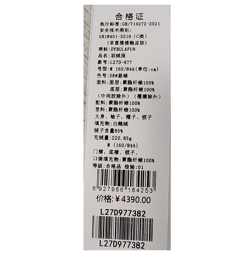 戴布拉芬羽绒服L27D977