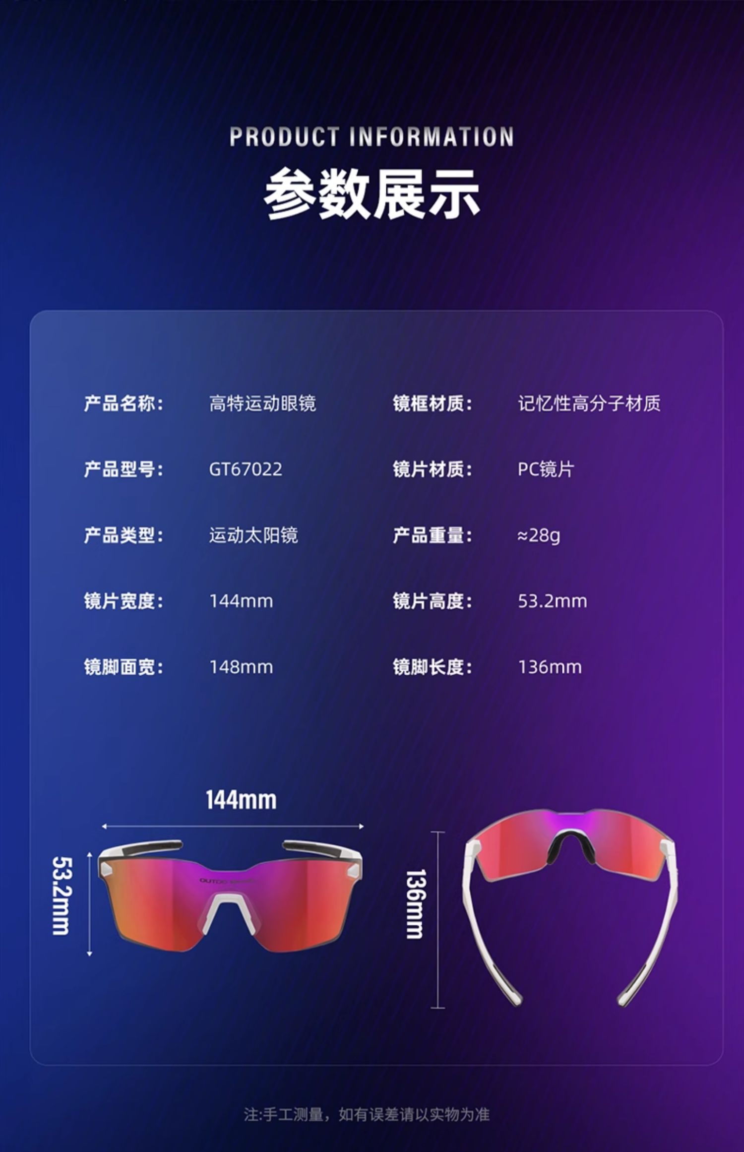 高特运动眼镜品牌女墨镜防晒太阳镜遮阳防紫外线新款变色GT67022