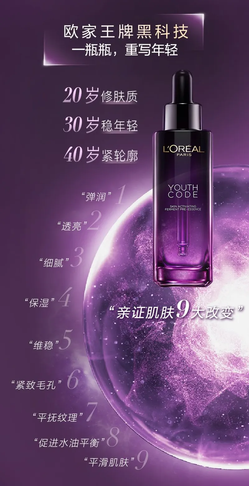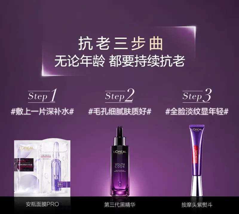 【香港直邮】L'oreal/欧莱雅第三代黑精华小黑瓶肌底液75ml+欧莱雅安瓶面膜5片(新旧随机)+紫熨斗眼霜30ml