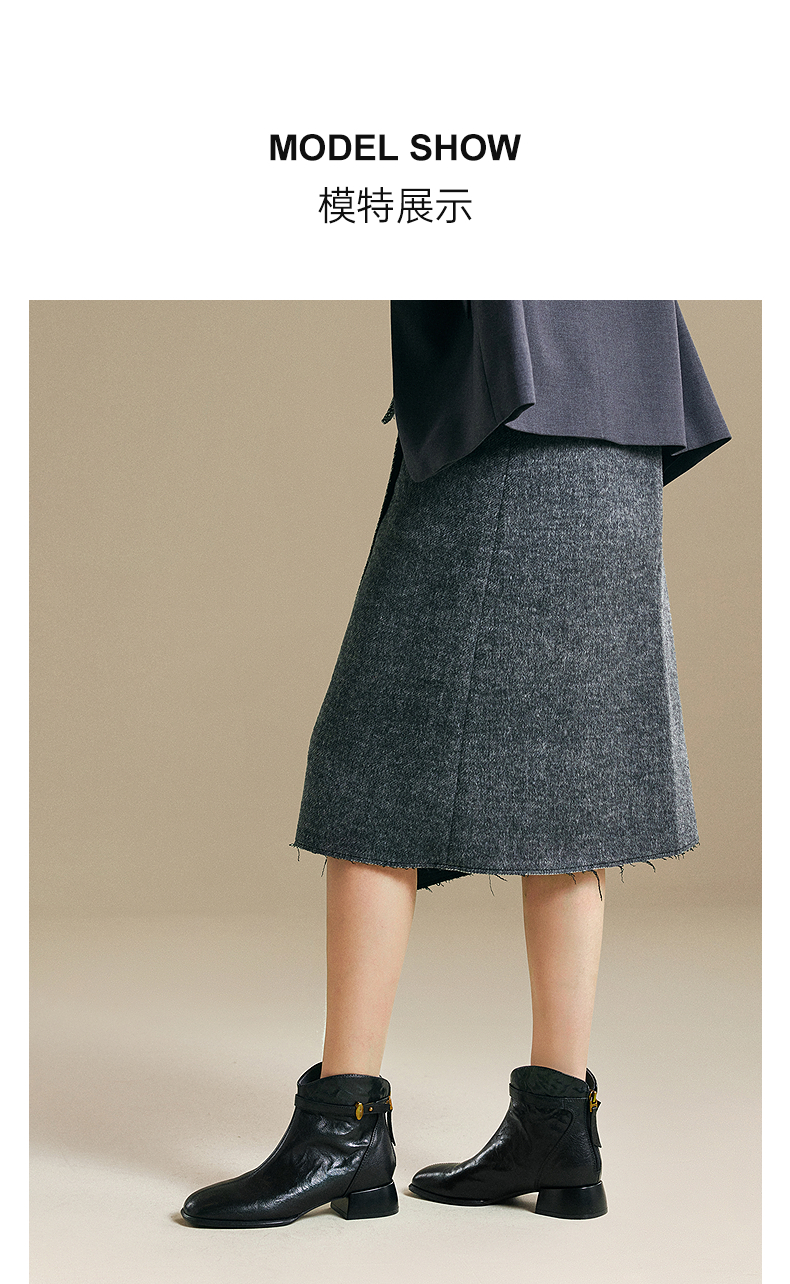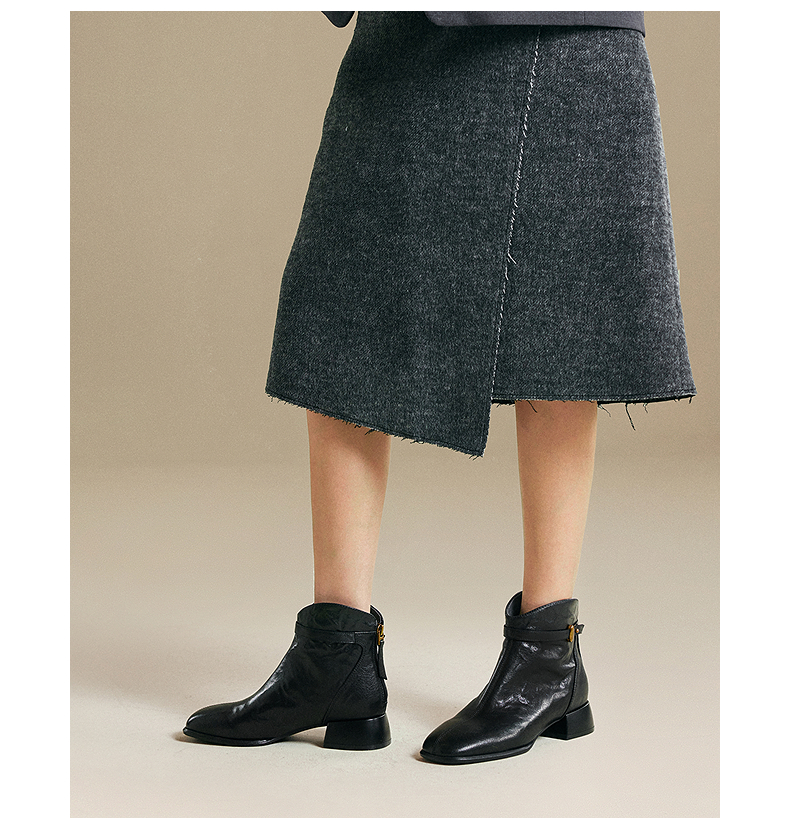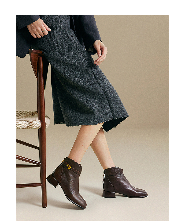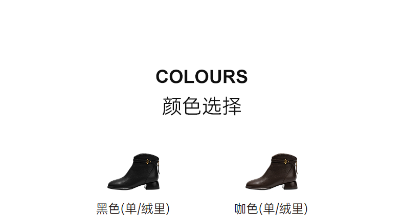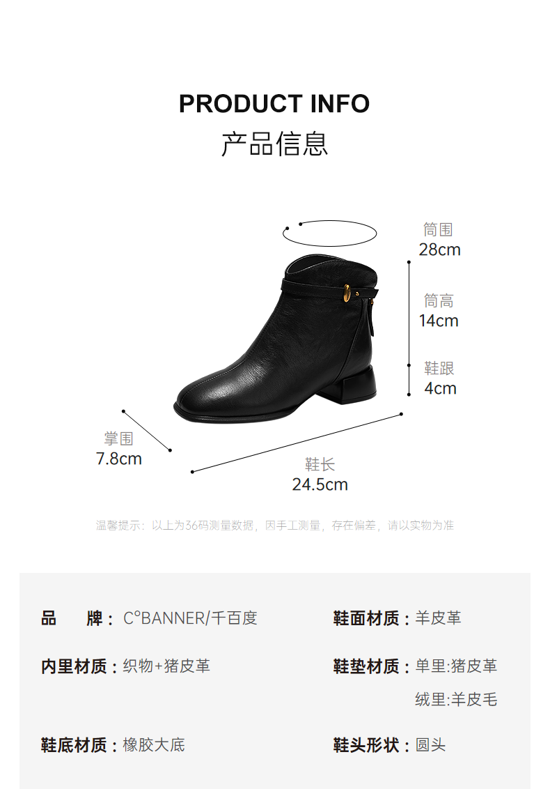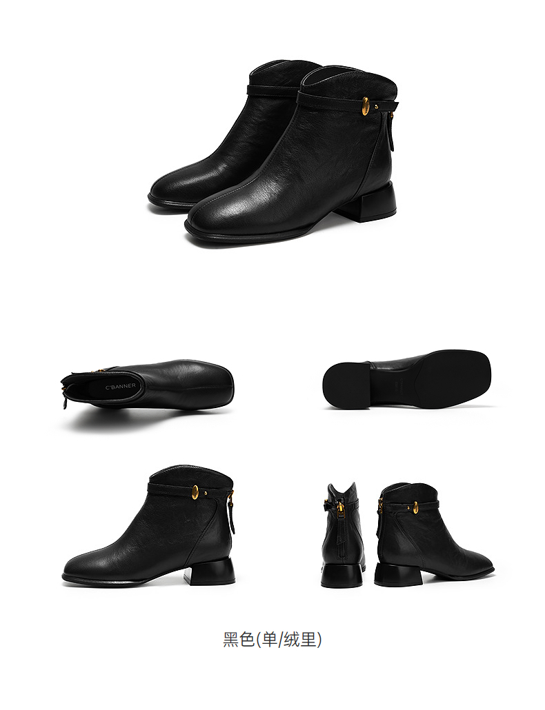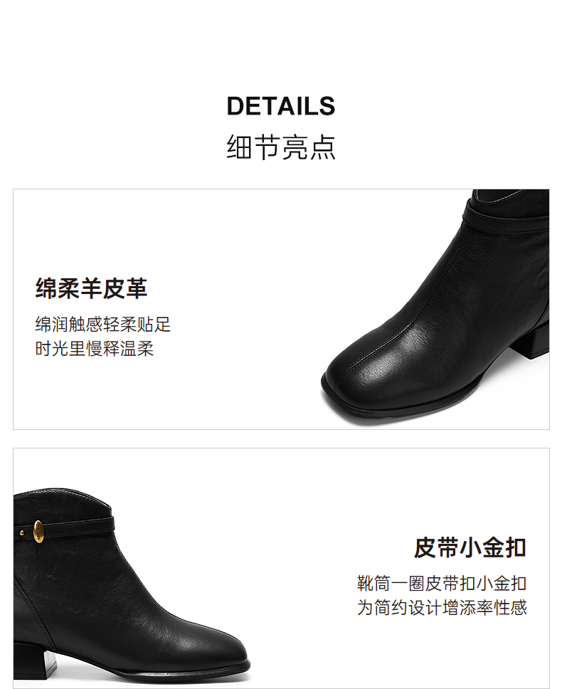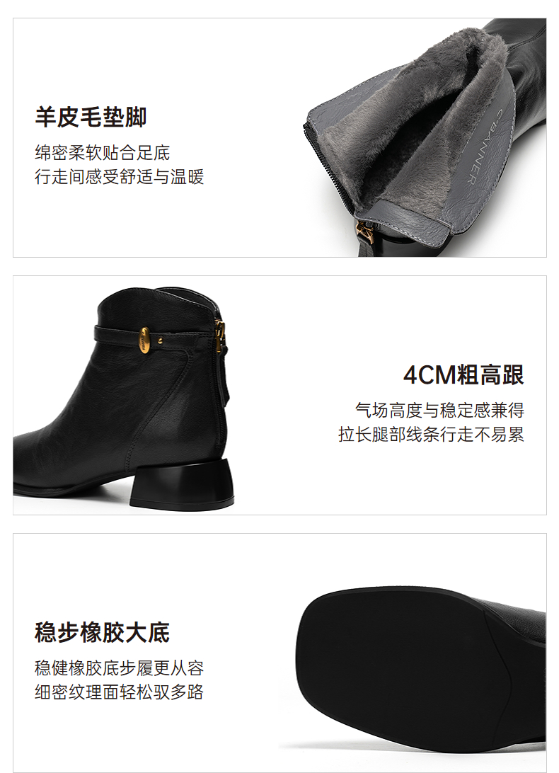 千百度粗高跟羊皮靴女加绒保暖时装靴增高洋气短靴子A25532608