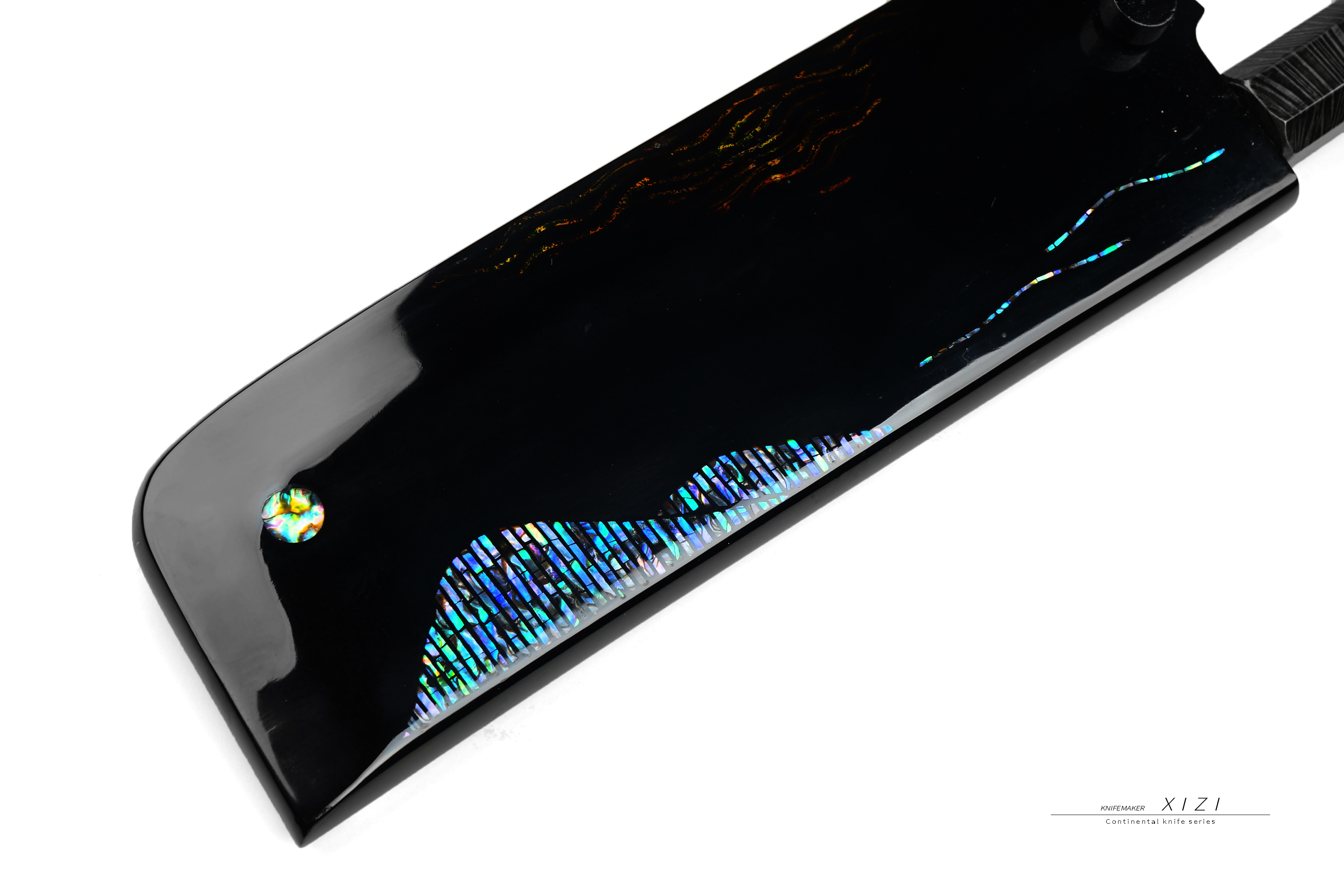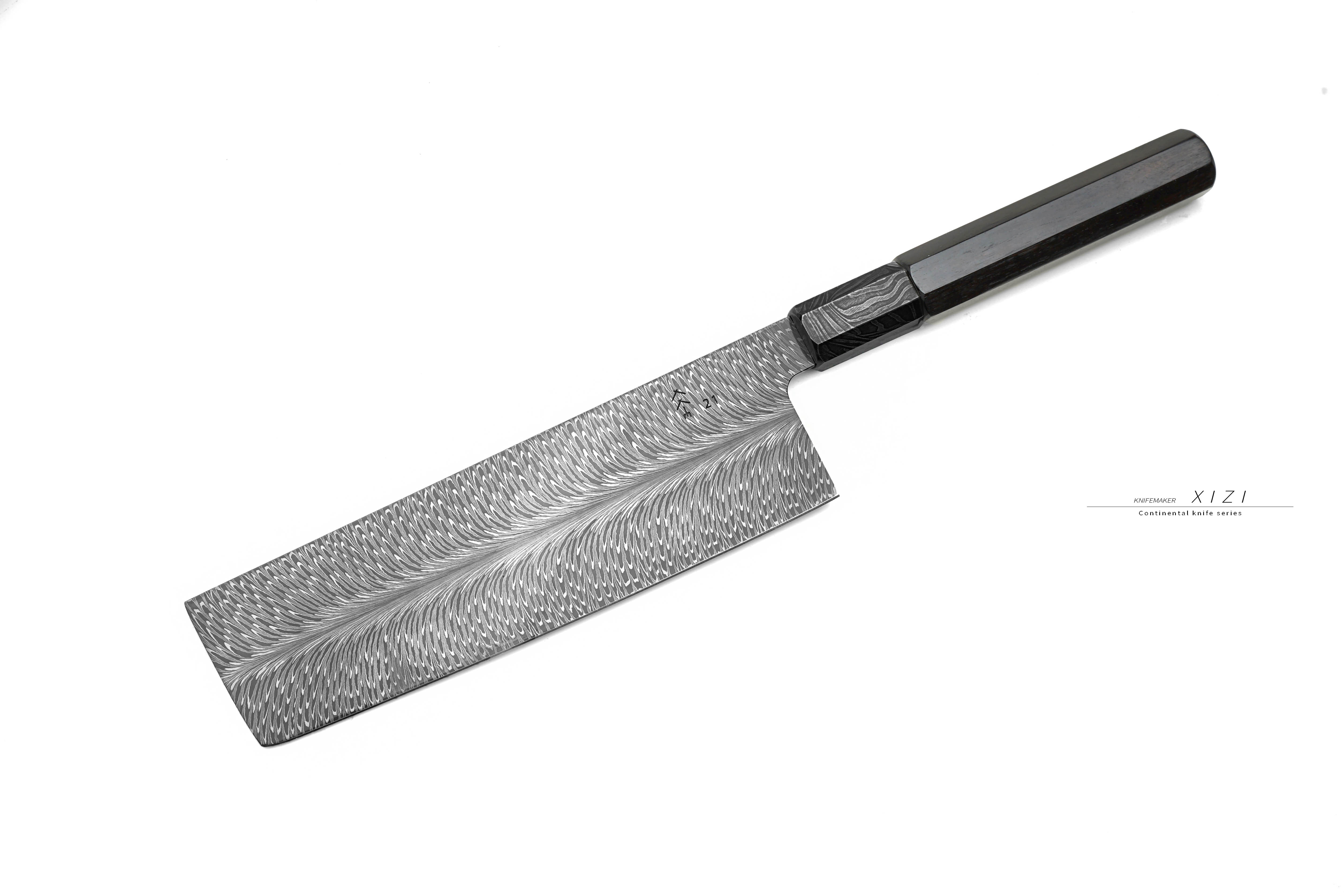 今天是三希堂建厂21周年,我们推出了高配版本的限量大马厨刀,带三希堂21周年logo和限量编号。还是第一次锻打这么宽的羽毛纹大马士革钢,经过反复试验,最后终于打出这种羽毛均匀且满满平铺的大马士革钢,像羽毛做的绸缎一样,顺滑舒服。羽毛沿着中线自然的向两边绽开,黑白灰三色对比度高,纹路栩栩如生,放大纹路像水墨画一样,墨韵滴在纸上慢慢扩散开来。传统菜刀一样很长的切割线,切肉切菜都有不一样的感受,让生活多彩,让你爱上厨房,这次还上了黑科技,做了dlc透明陶瓷图层,进一步的增加防锈和防刮蹭能力,水冲在刀面上会凝结成一颗颗水珠,左右翻动刀面,水珠能在上面自由滚动。手锻大马士革+黑檀木八角柄,这么厚的大马成本也得不少钱了,型制传统,手感舒适好用,拧动尾部可以自由拆卸,和量产作品有区分。手工天然大漆刀鞘,木胎,总共四个主题:汉代银箔、西湖倒影、虎皮滴金、七彩霓虹,全部是纯天然的材料,用上了螺钿、银箔镶嵌,熨金等等工艺。这款作品花费了我们极大的心力,无论是外观还是实用性都是极好的,看起来就档次十足,中国传统和西式大马士革结合,最后的效果还可以,配个北美黑胡桃木抽拉盒,大家自己用或者送人都是极好的!!