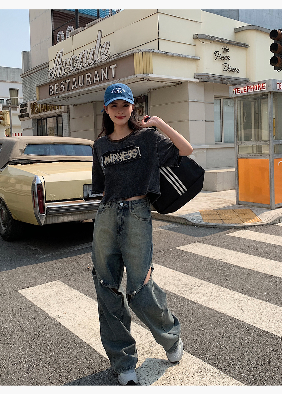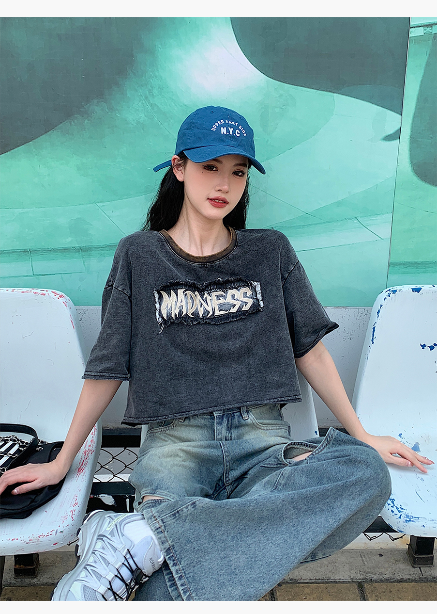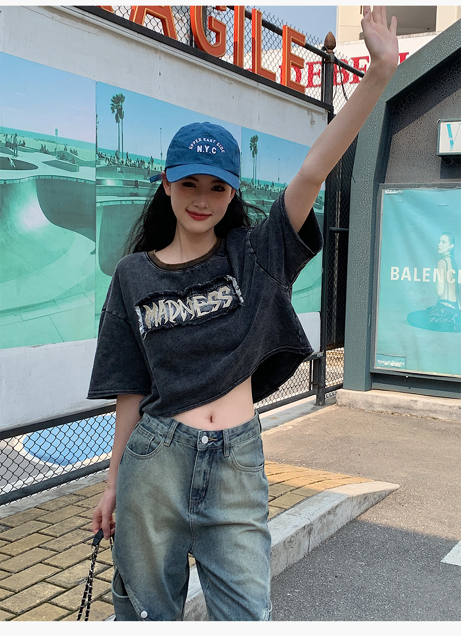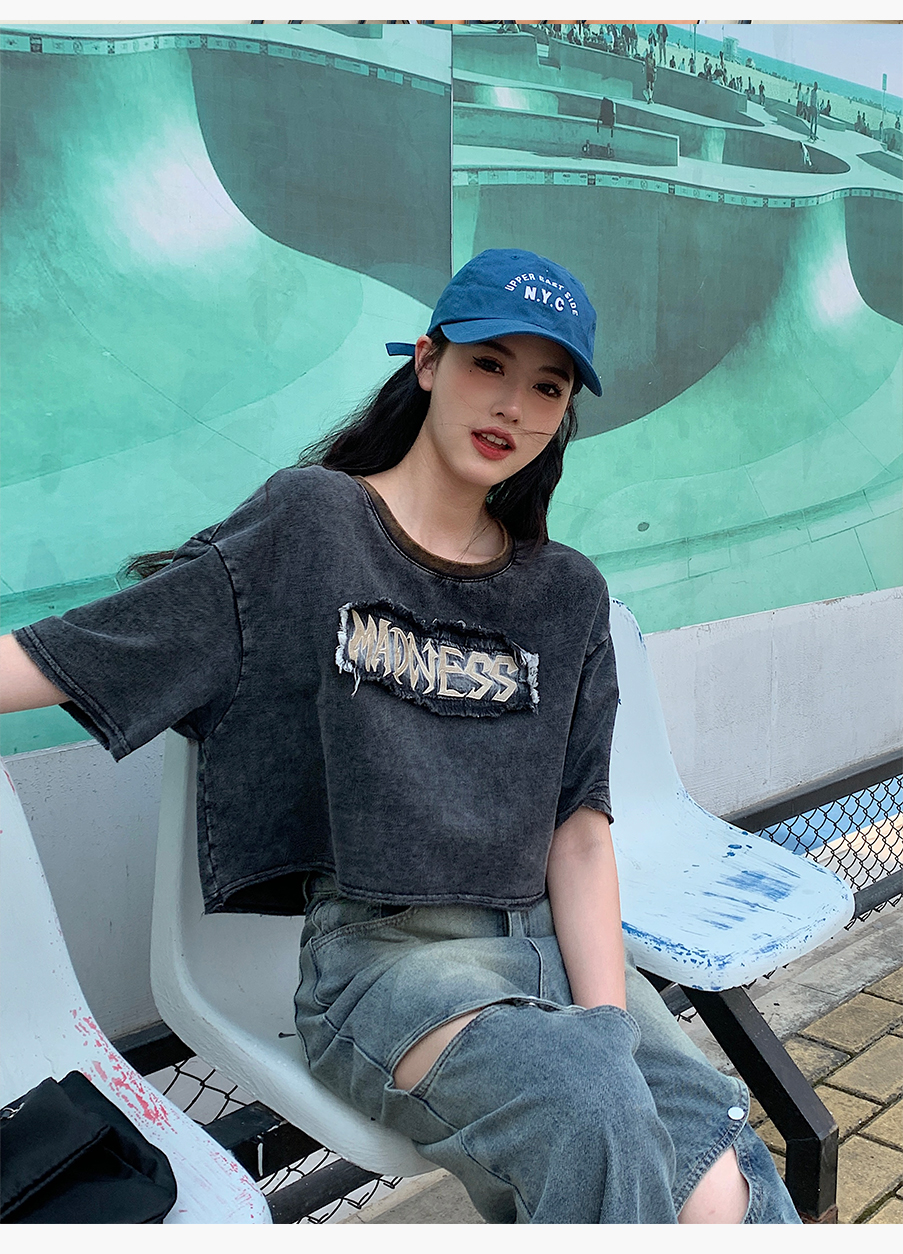 P&X设计师女装夏季时尚复古街头短款T恤 824202574 黑色