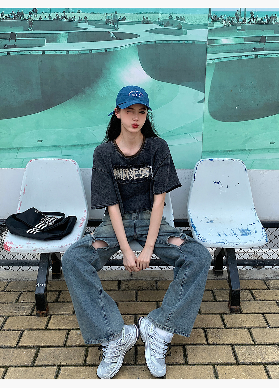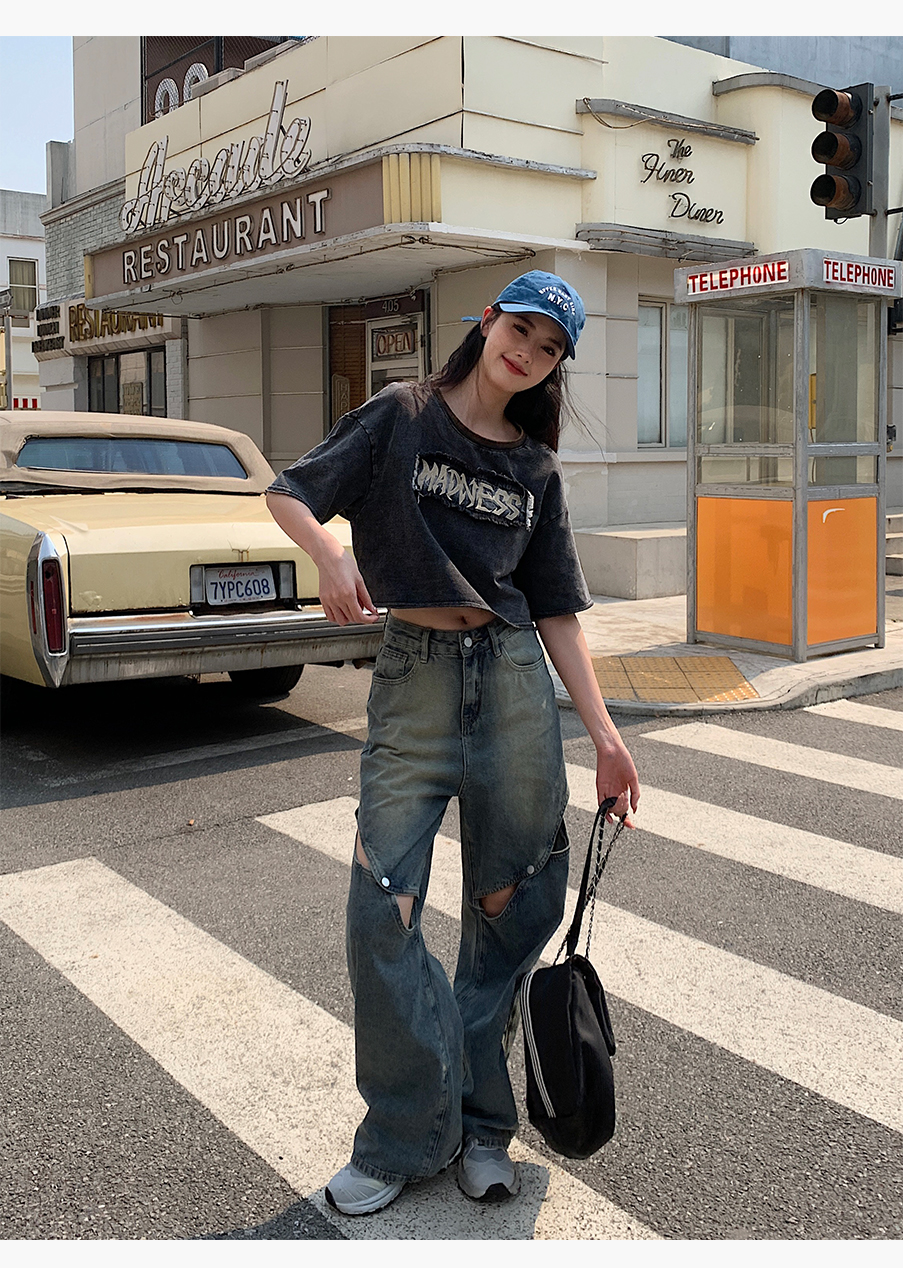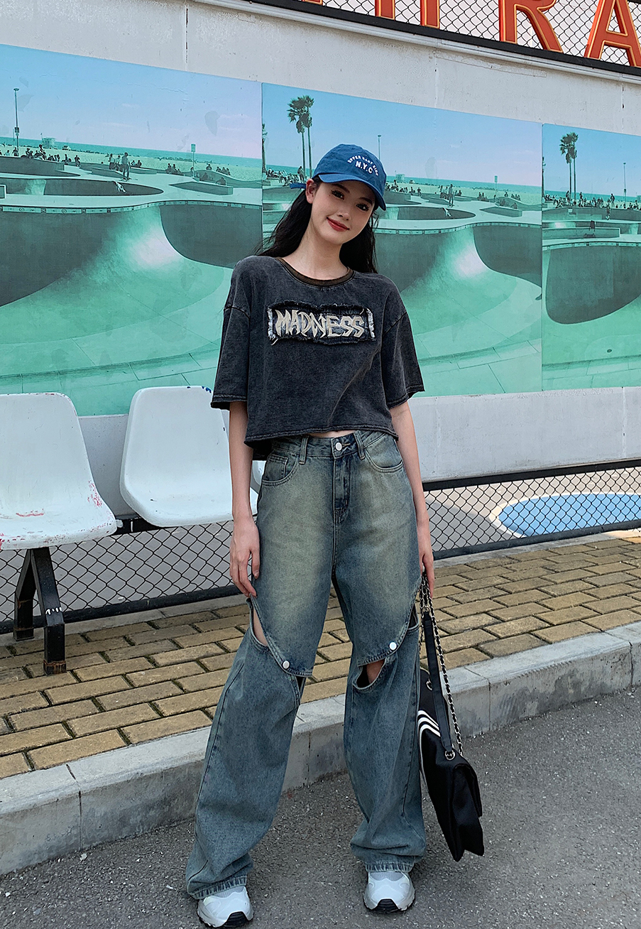P&X设计师女装夏季时尚复古街头短款T恤 824202574 黑色