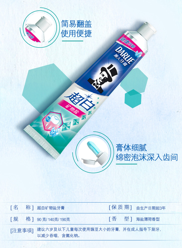 黑人牙膏超白矿物盐190克