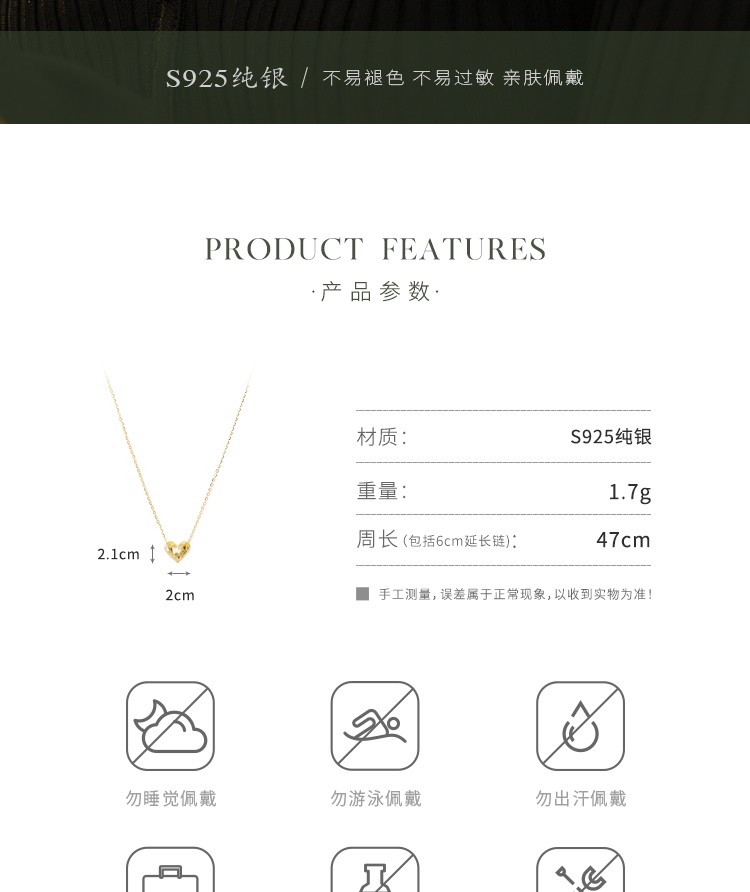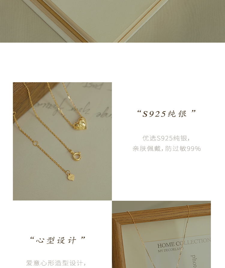 Oflye潮流饰品 爱心项链女新款百搭锁骨链轻奢饰品