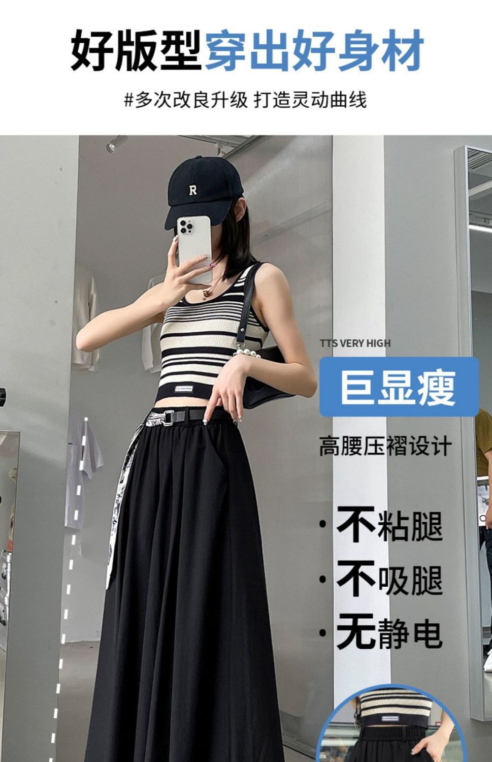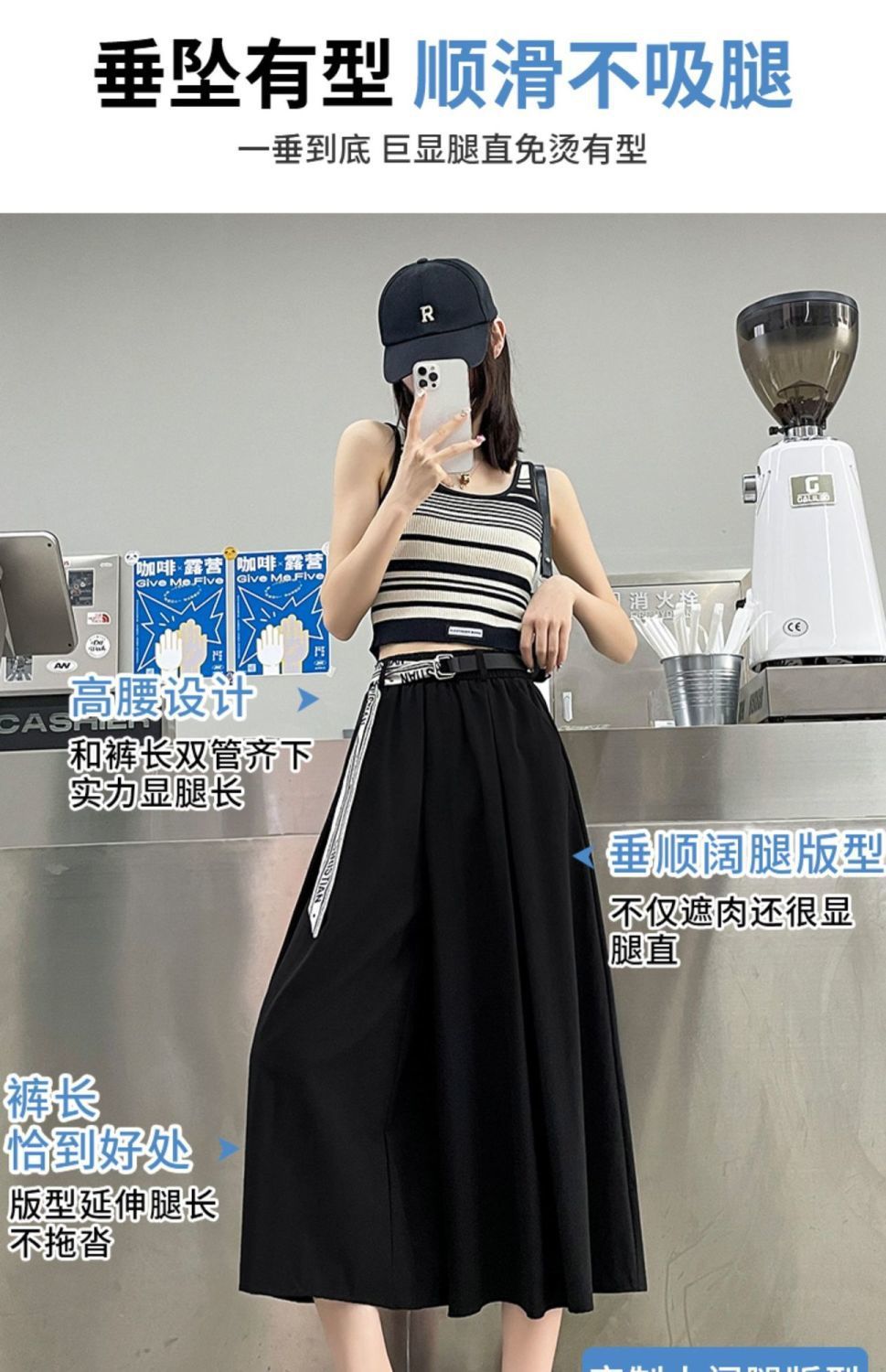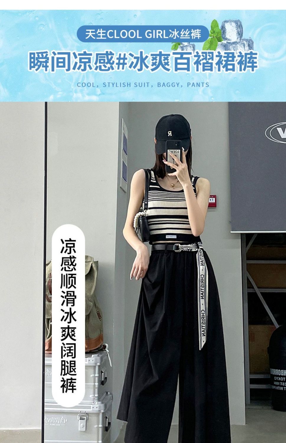 阔腿裤女孩们的夏日必备!精选冰丝面料,轻盈透气,高腰设计显瘦,恰到好处的长度展现垂感,梨型身材也能穿出自信优雅。