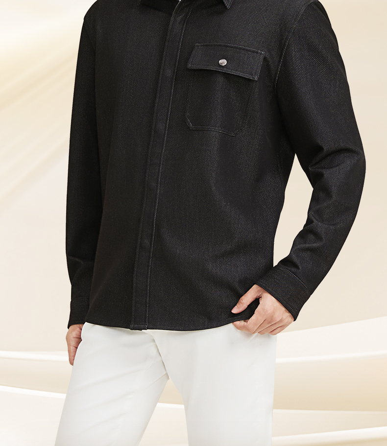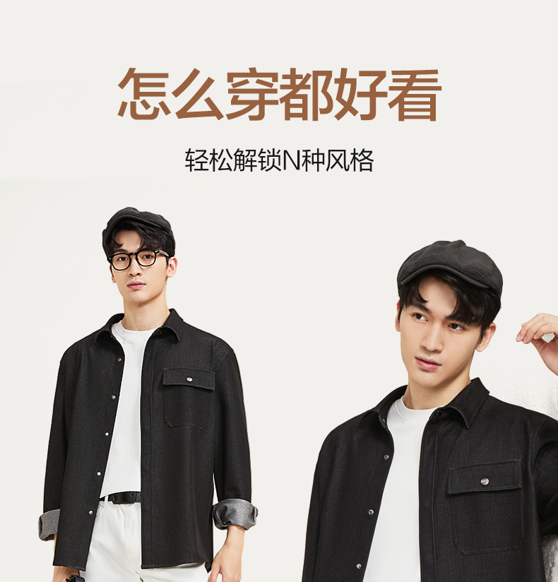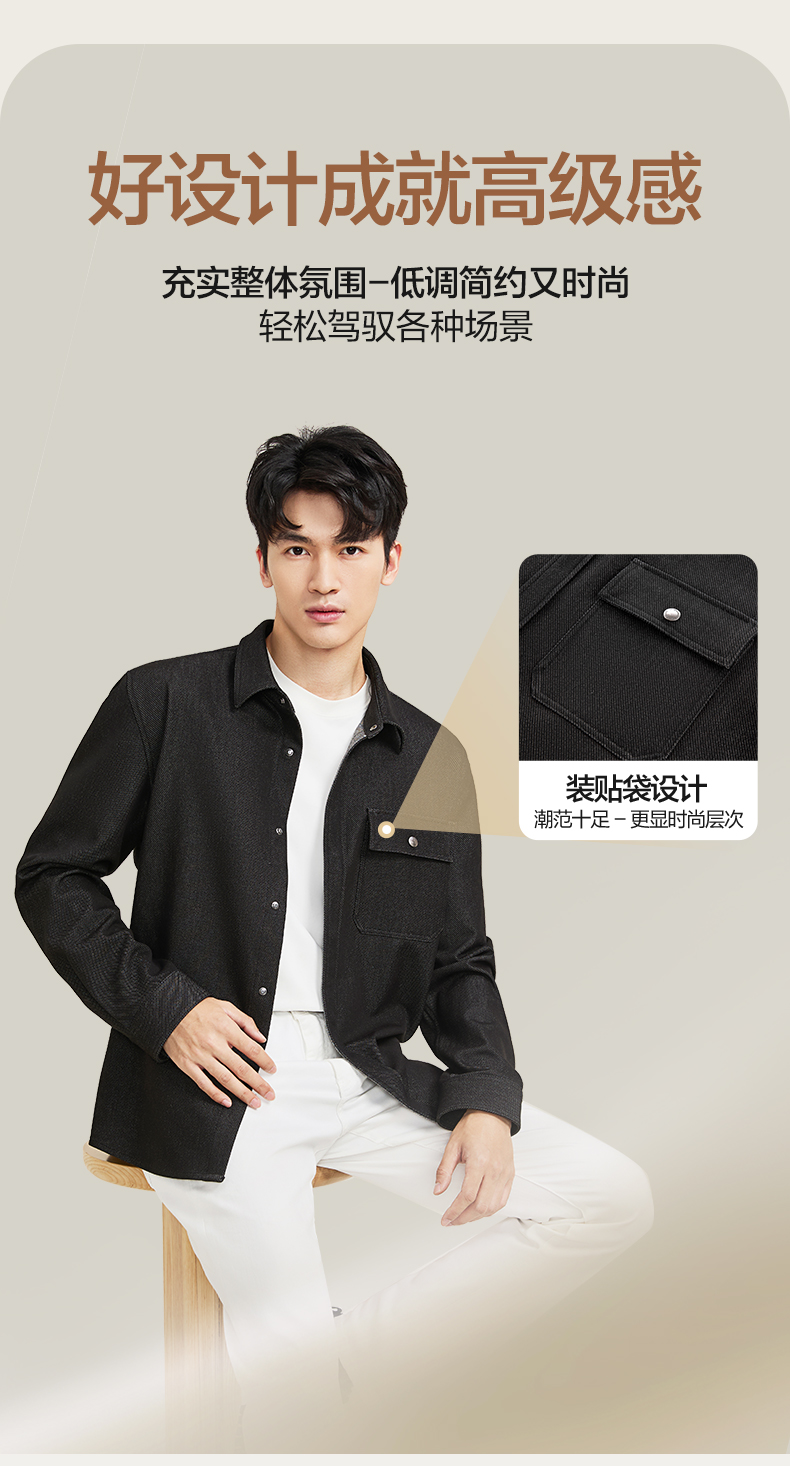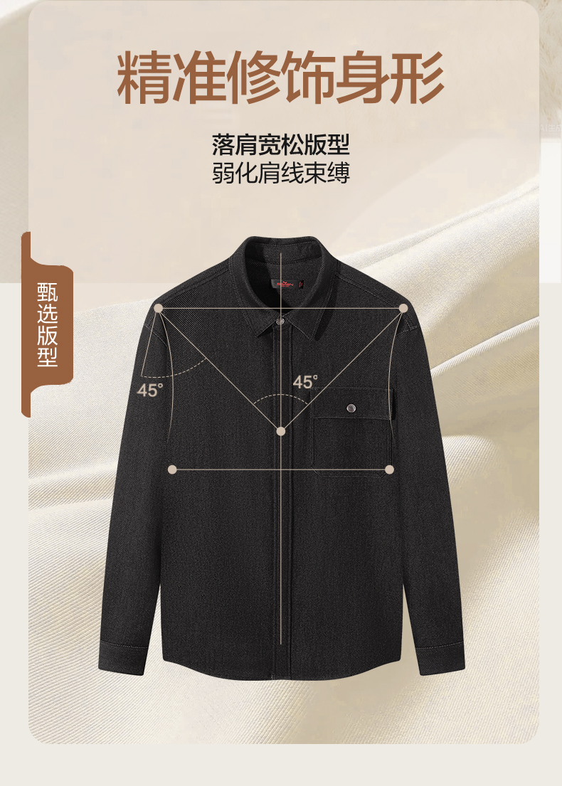 【含羊毛/休闲工装衬衫】柒牌男装休闲长袖衬衫微落肩宽松衬衣男129A70930