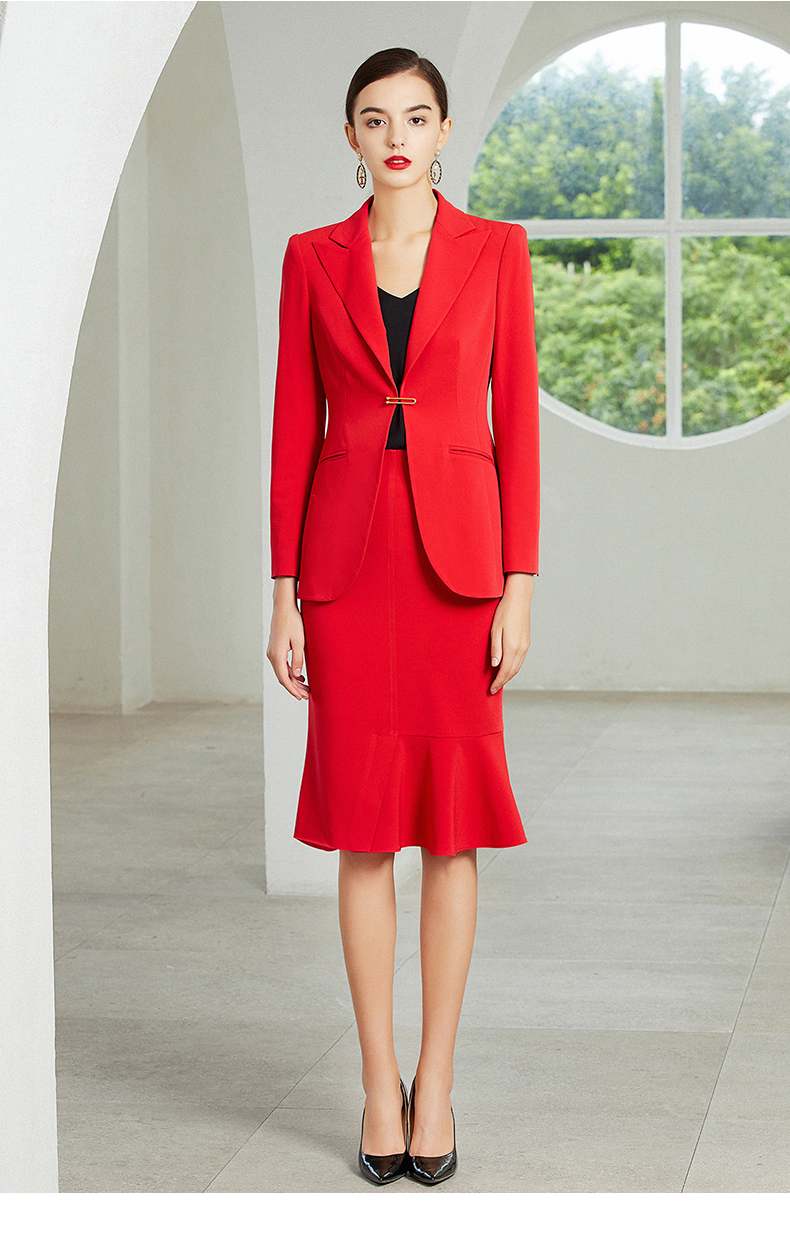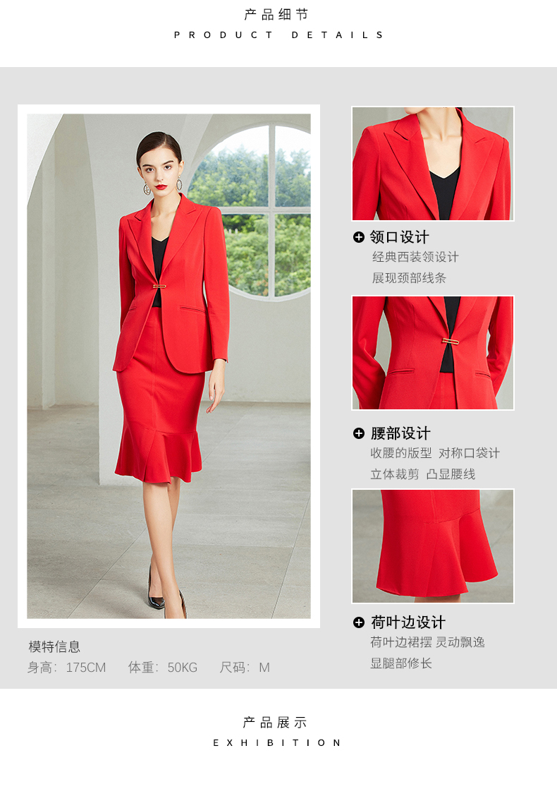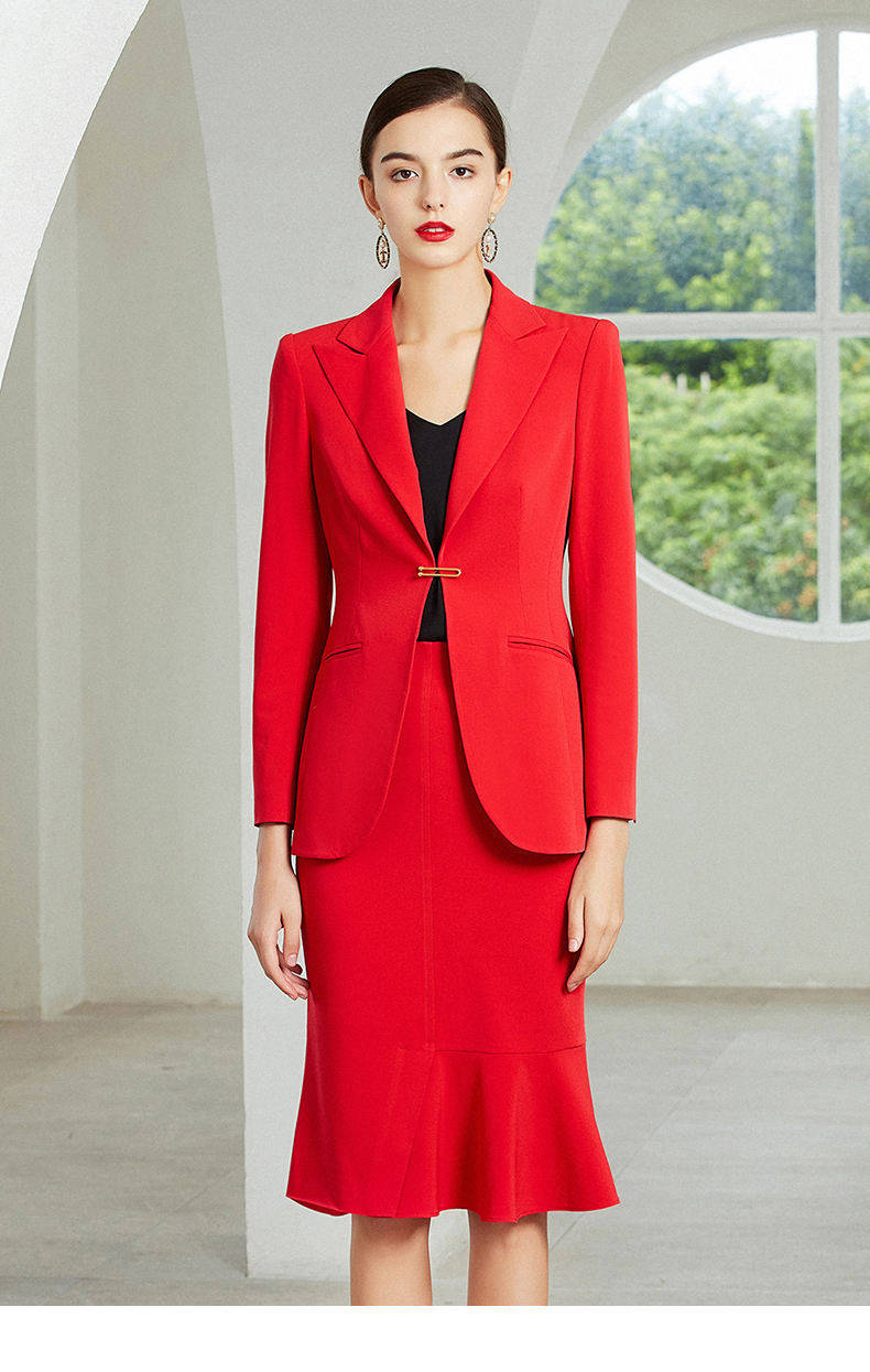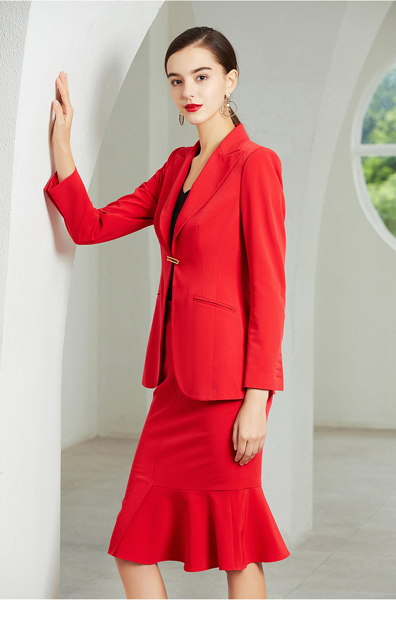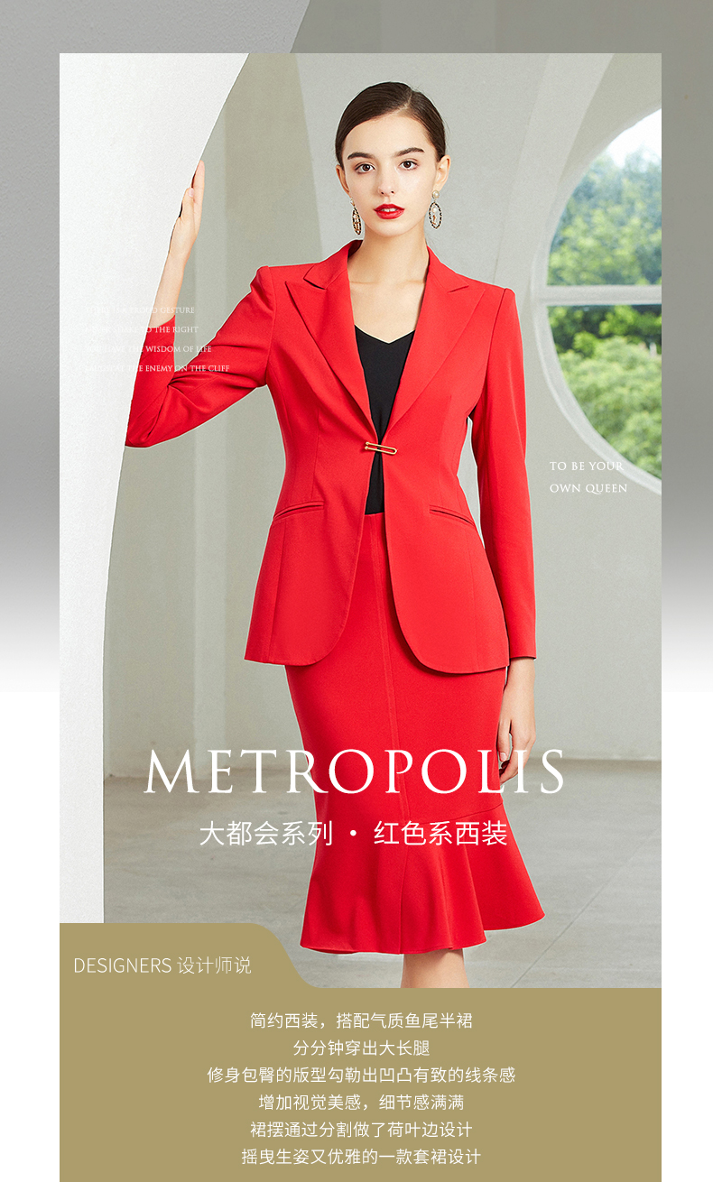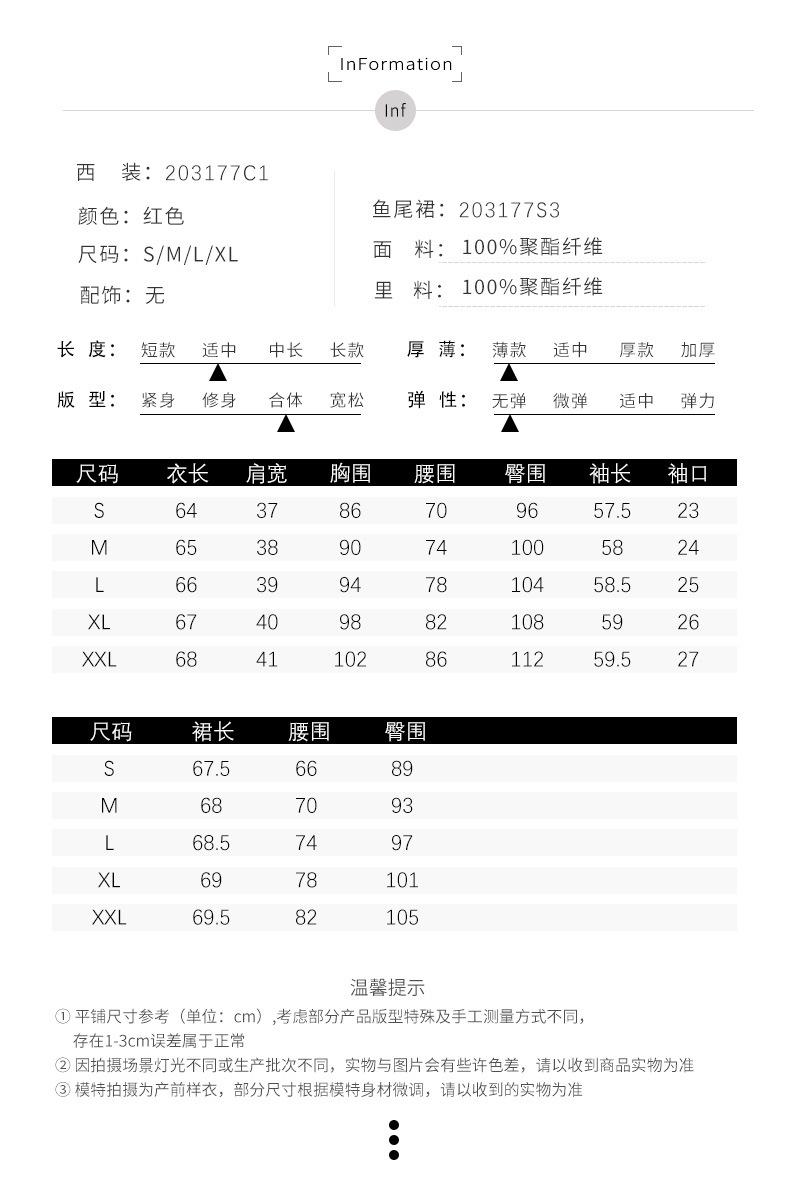 IWY/高端时尚红色西装套裙女休闲外套名媛西服鱼尾裙套装气质203177C1S3
