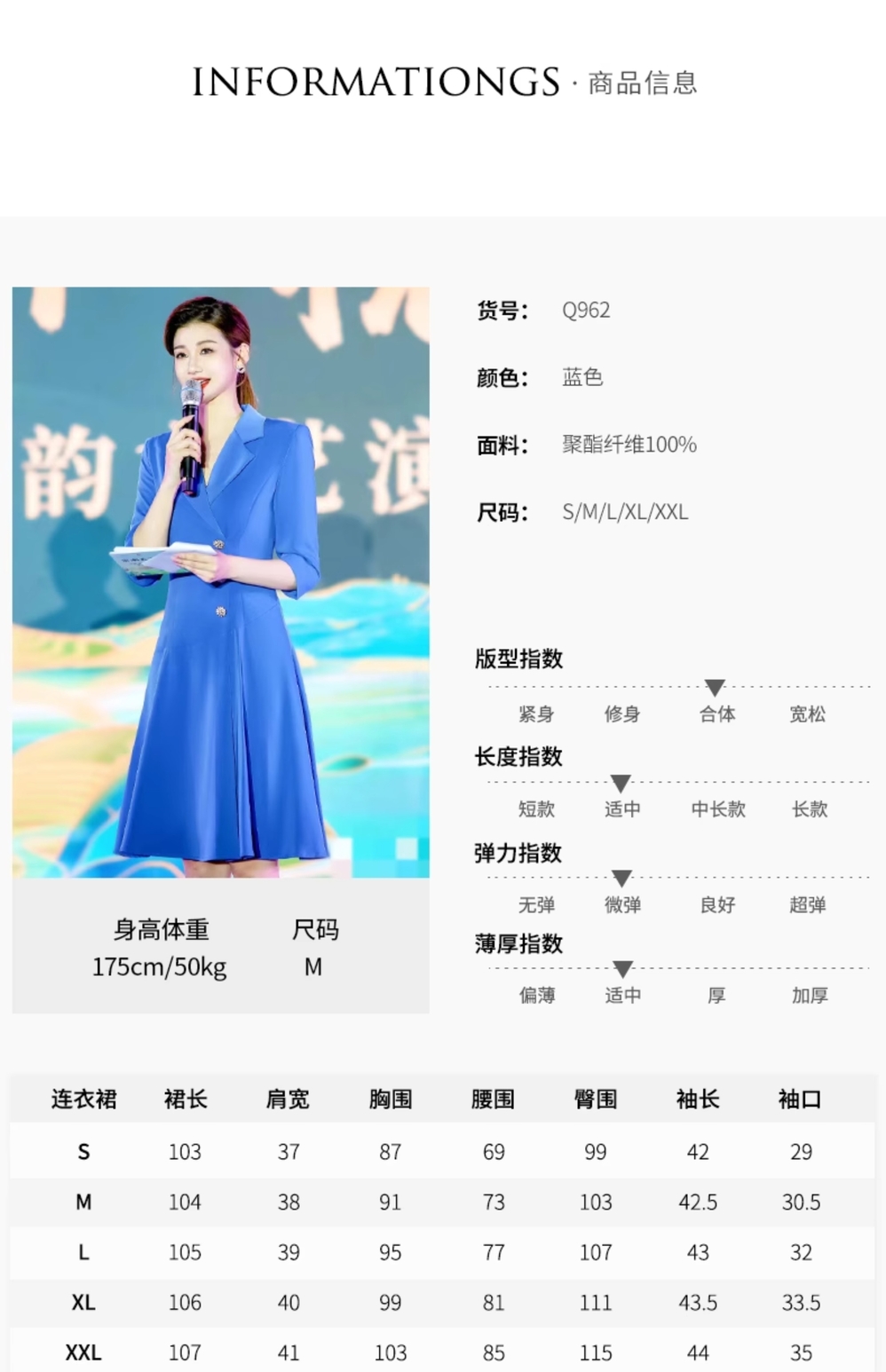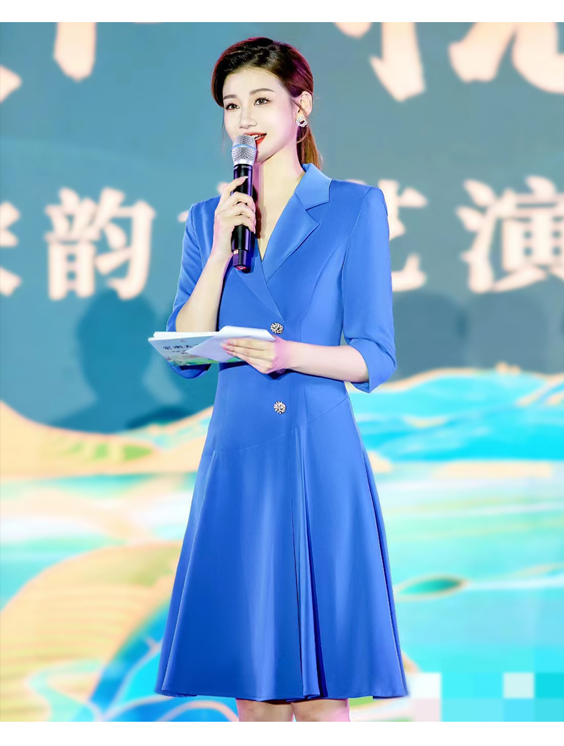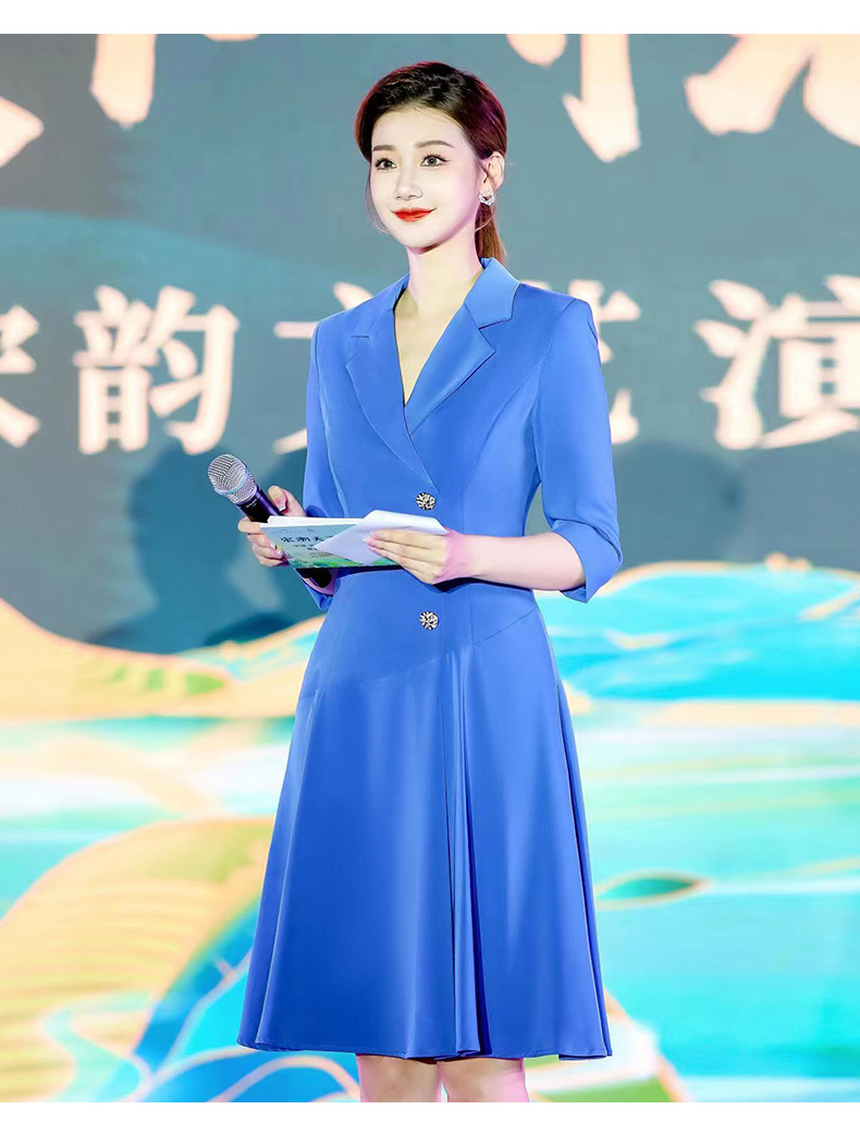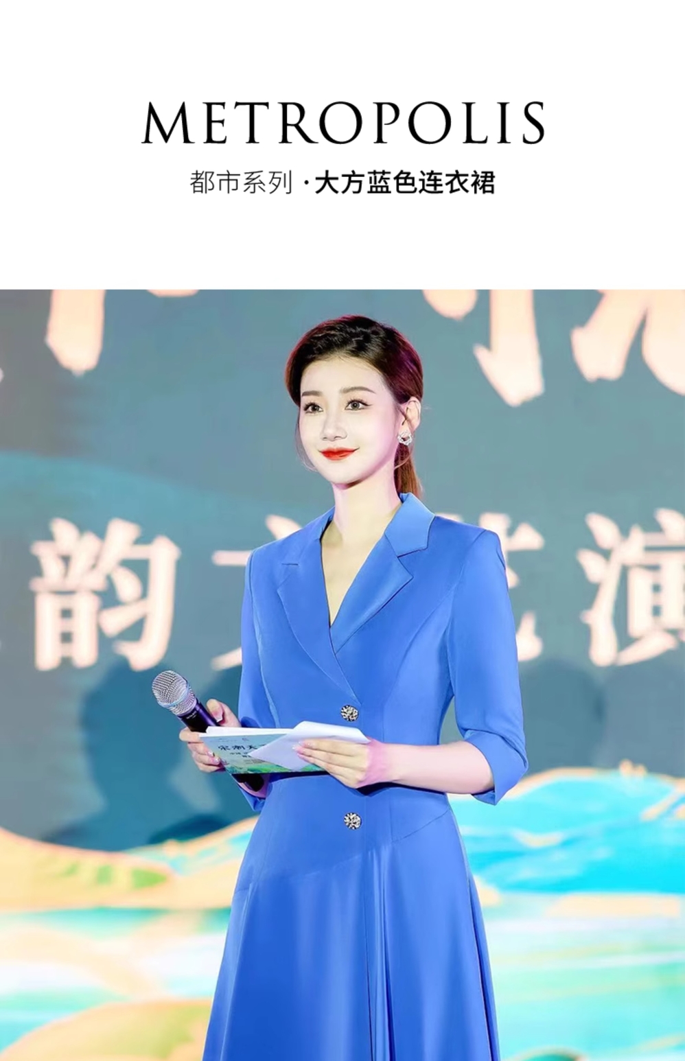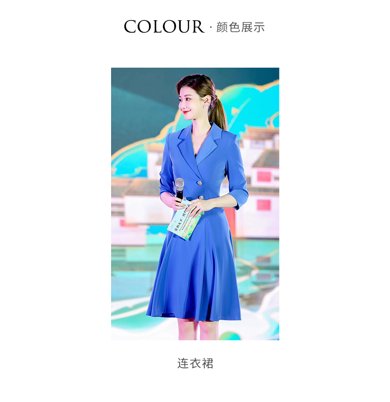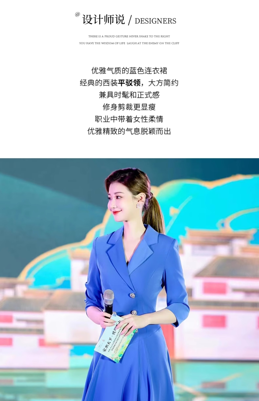 IWY/蓝色主持人正装女端庄大气西装连衣裙高端上镜演讲比Q962