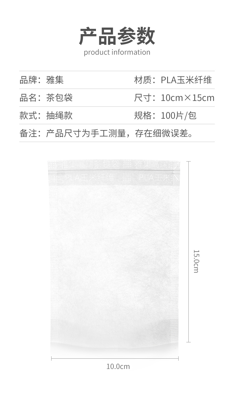 雅集食品级玉米纤维茶包袋(隐藏抽线款10*15cm-100个)