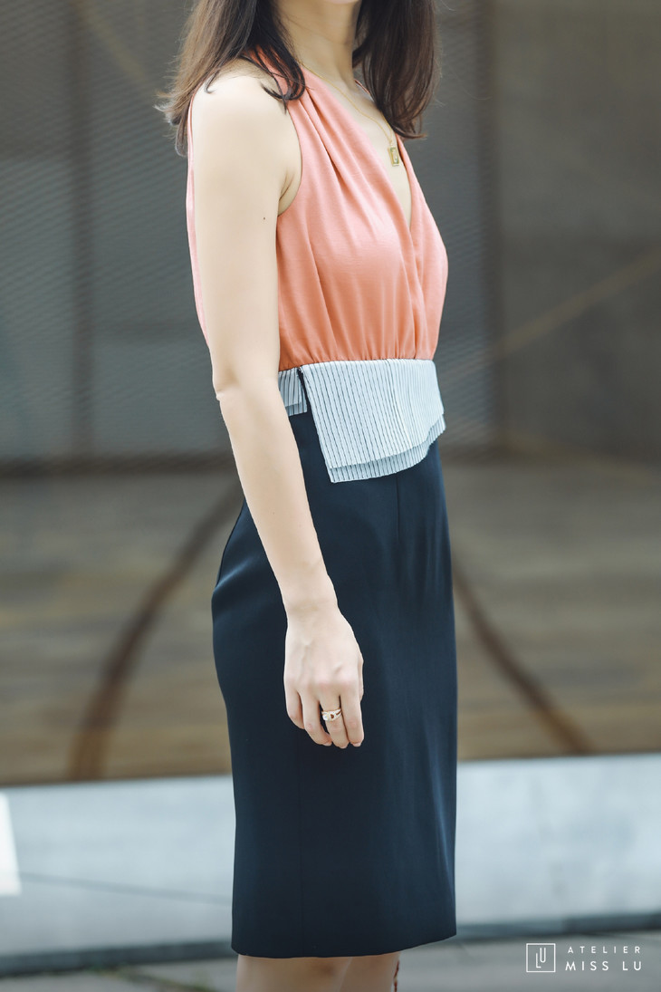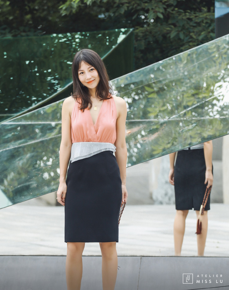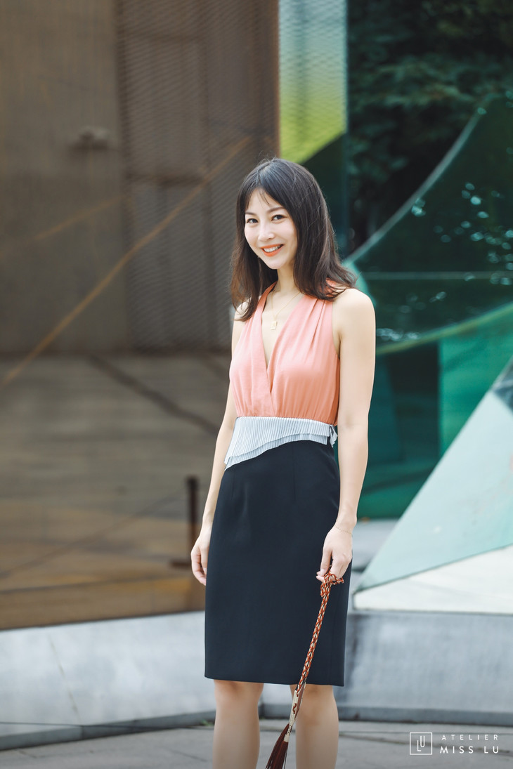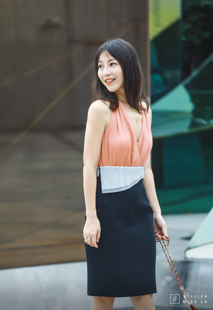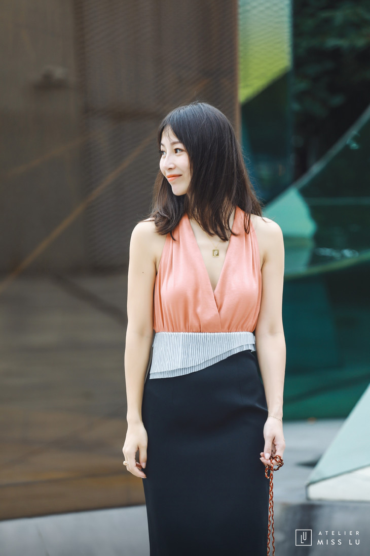 AtelierMissLu / Eva-西柚桔拼色装饰连身裙