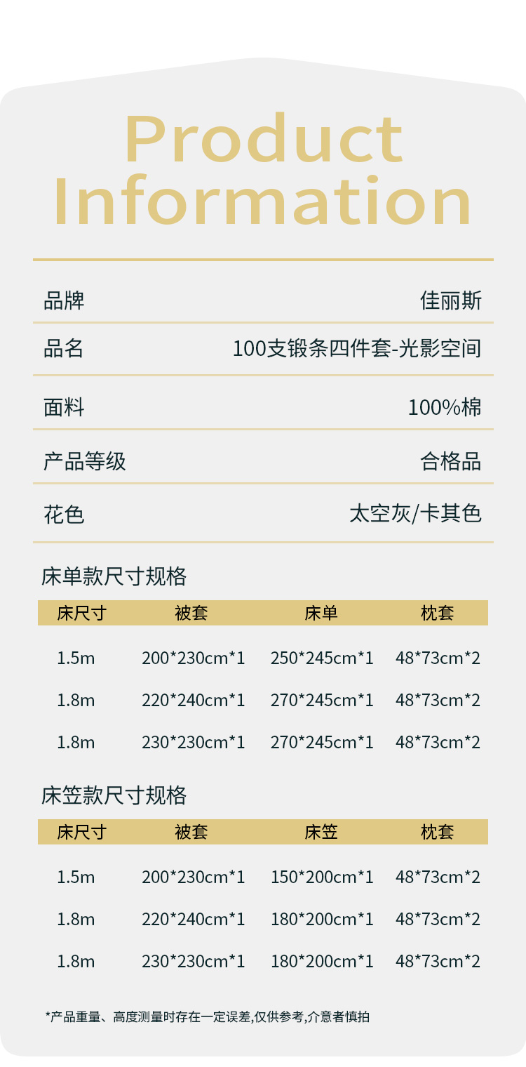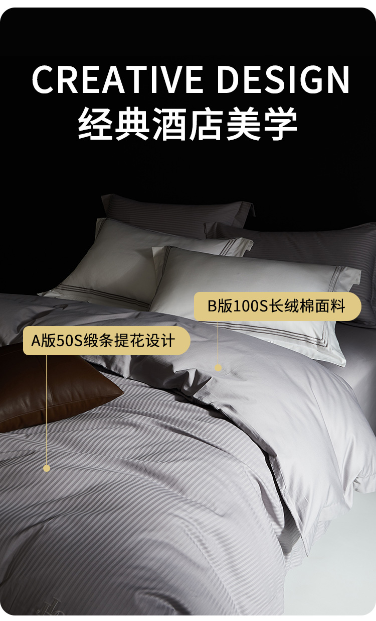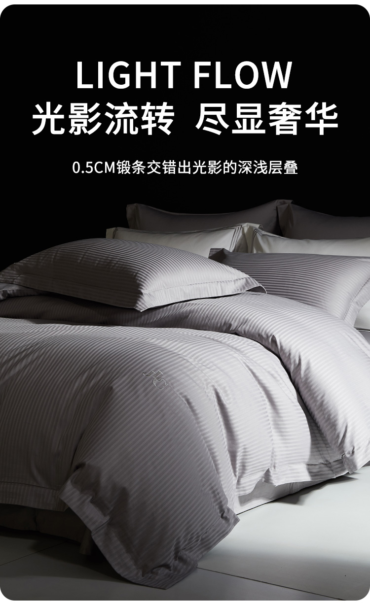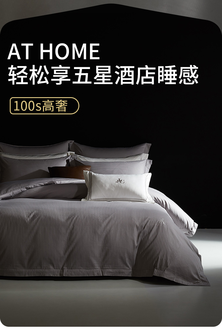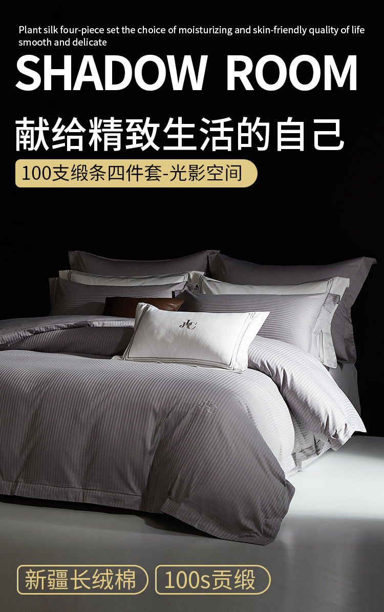 佳丽斯100S贡缎床上四件套轻奢高级感纯棉全棉被套长绒棉床笠光影空间