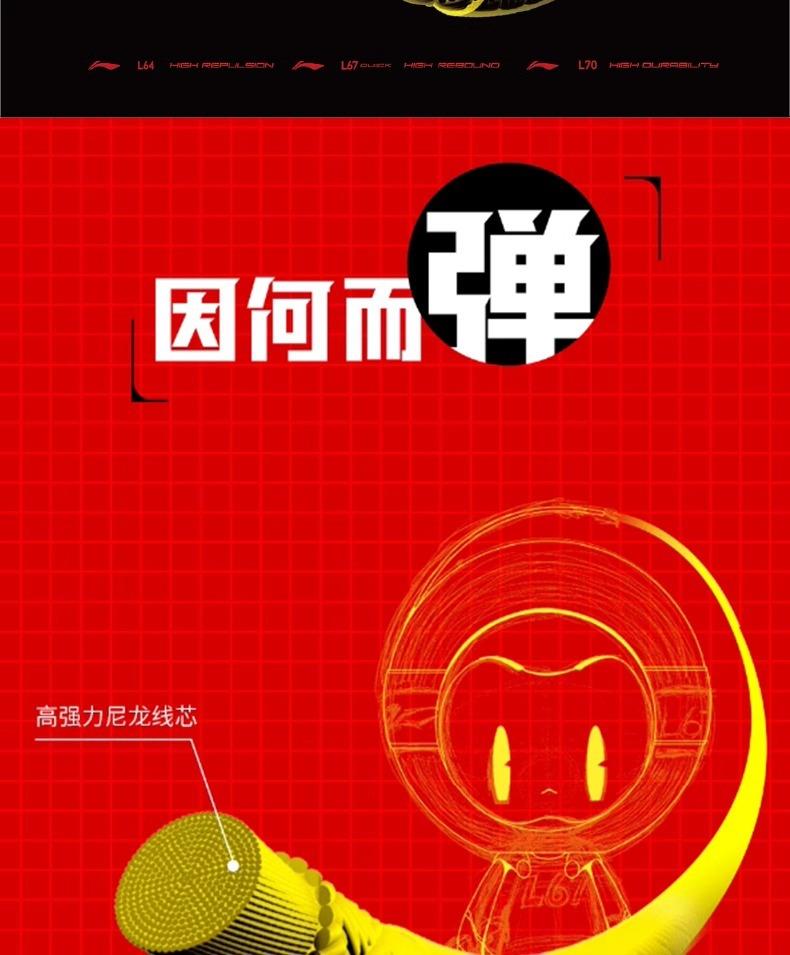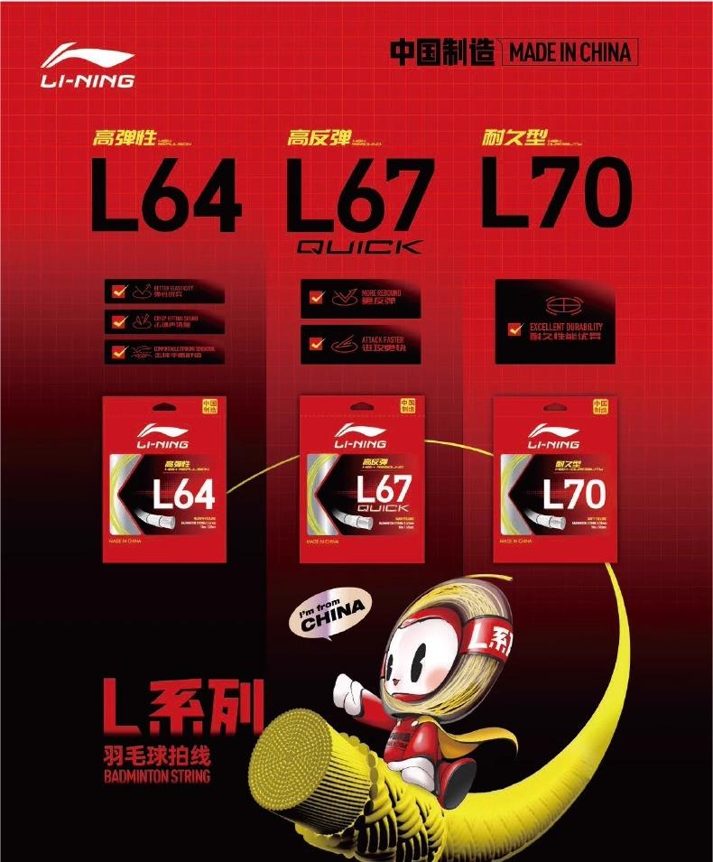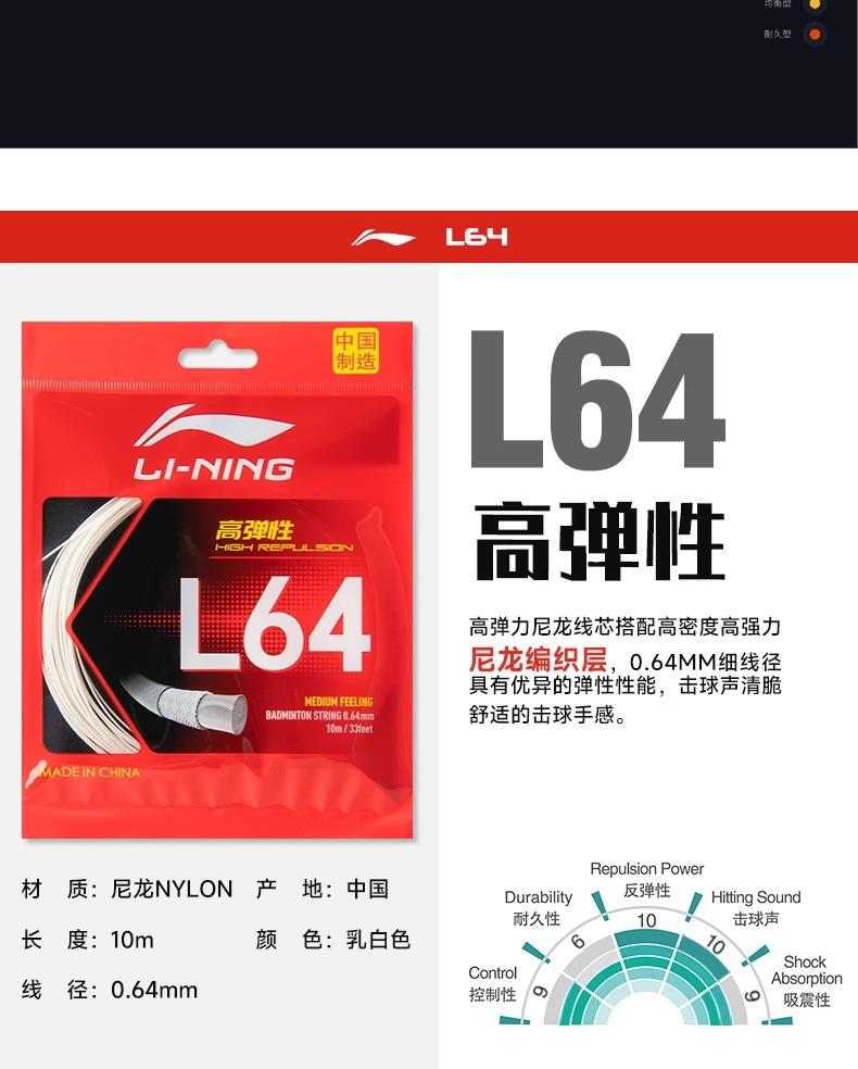 李宁羽毛球线L64高弹耐打球拍拉穿线羽线L64线中国制造0.64mm(两条)