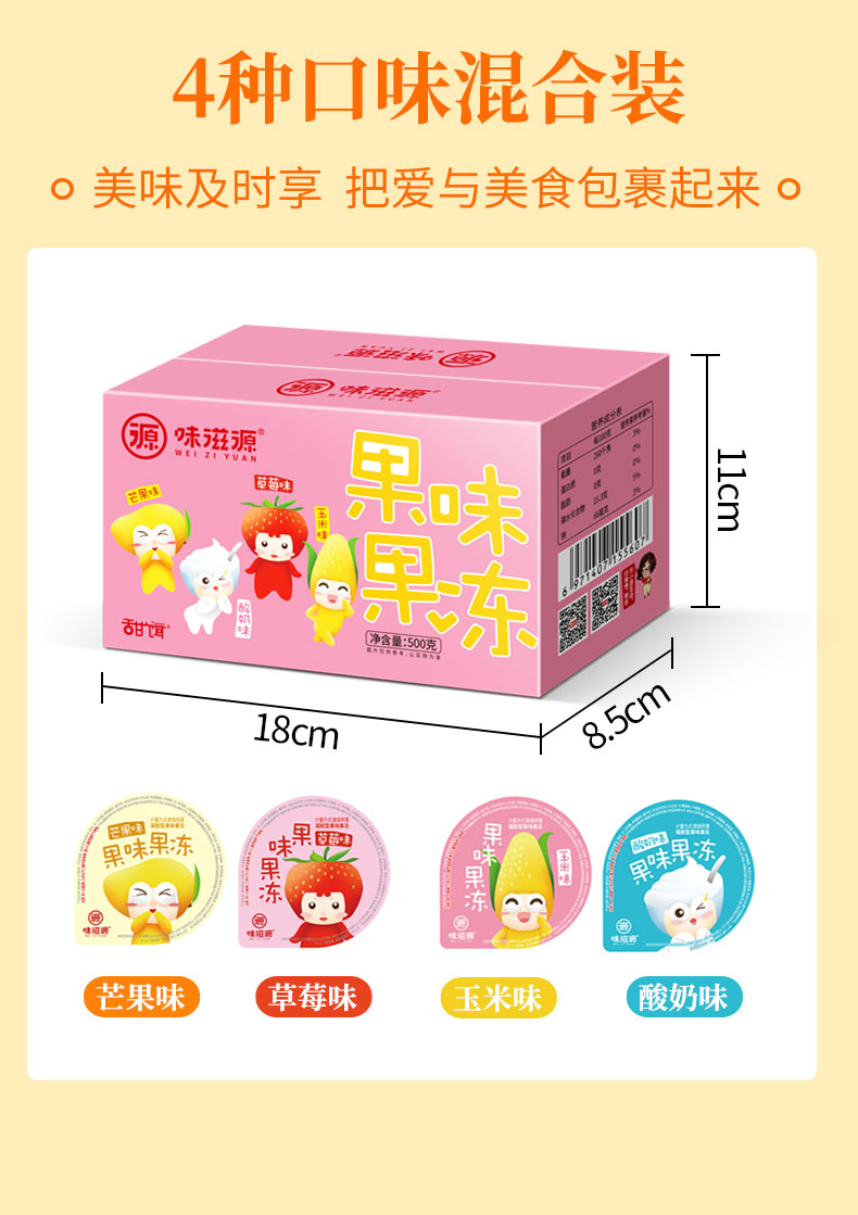 味滋源果味果冻500g箱果冻四种口味混合【分销】