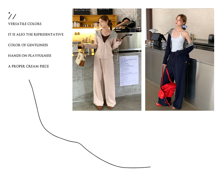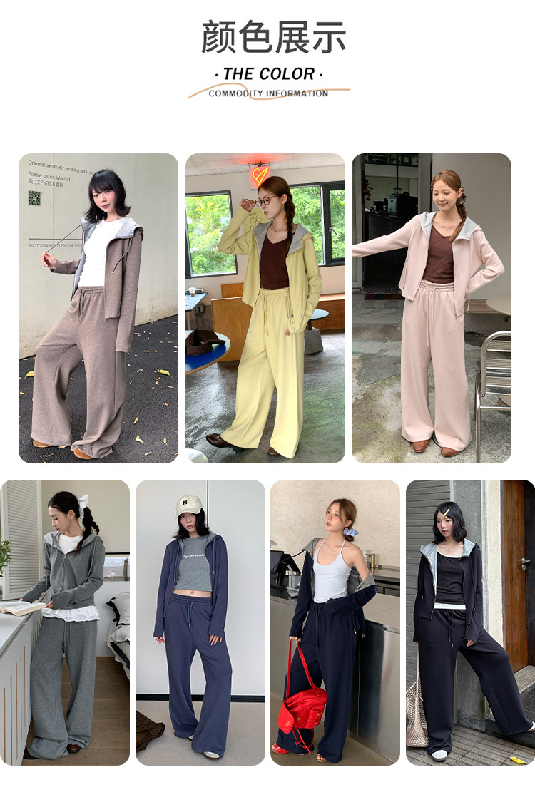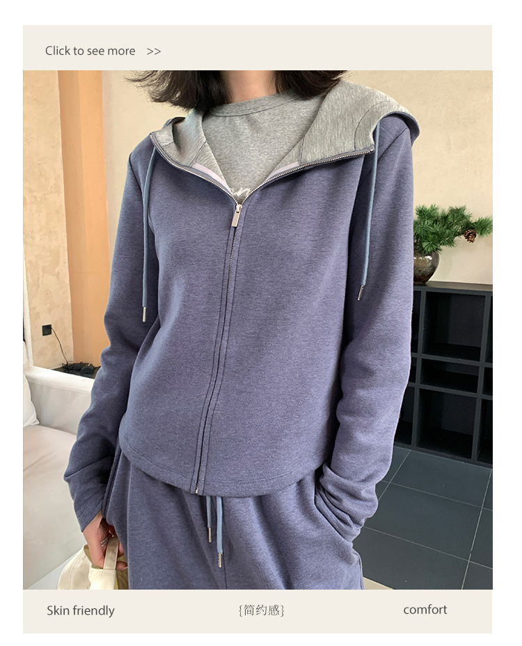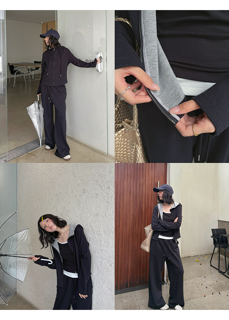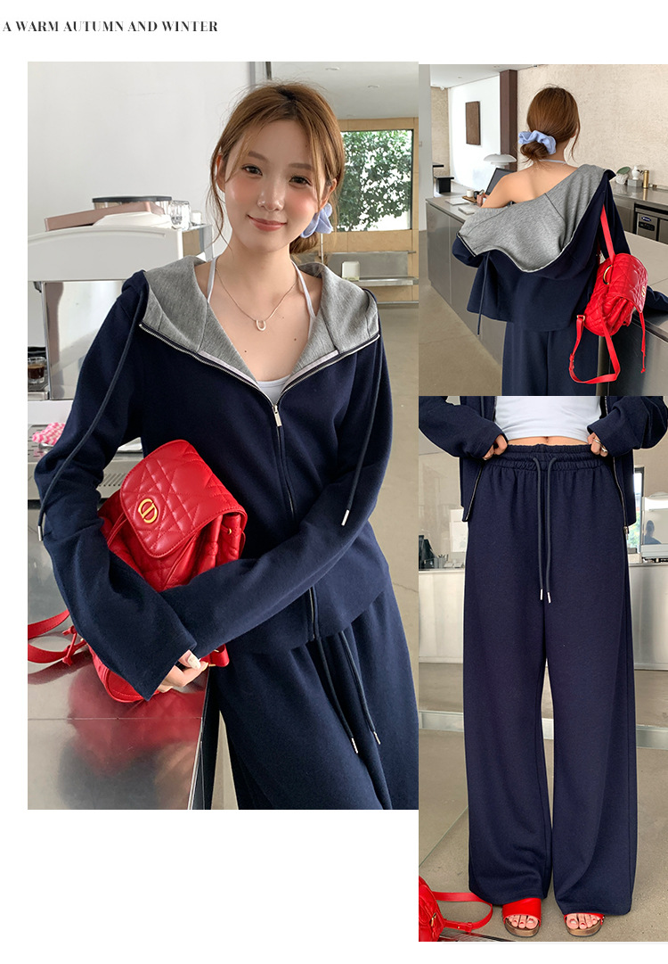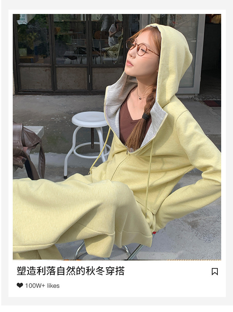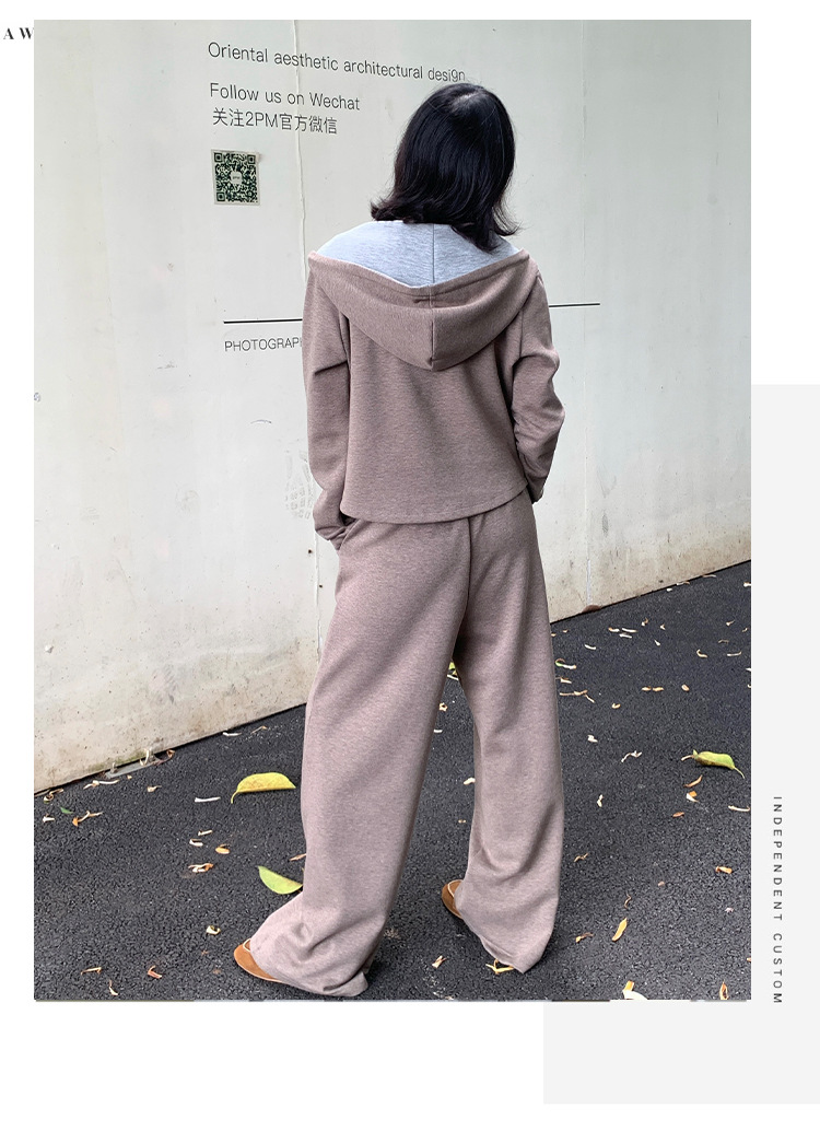 【专柜品质】撞色连帽卫衣运动套装 秋冬时尚显瘦气质拉链开衫两件套
