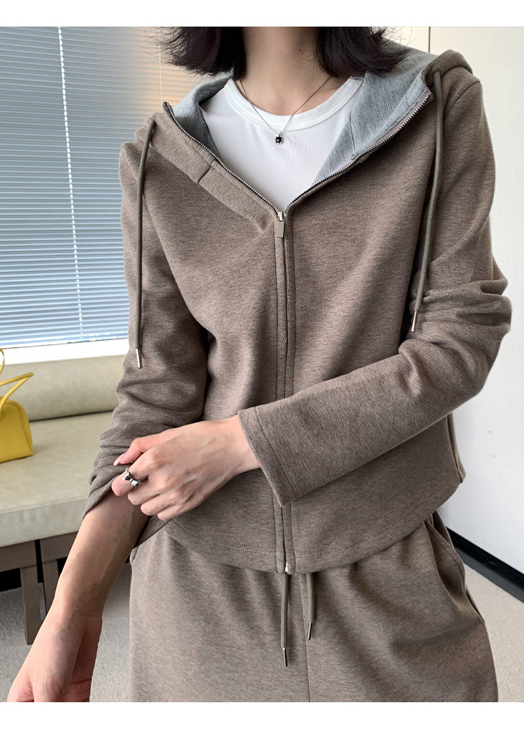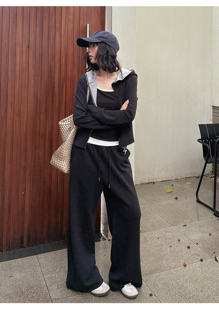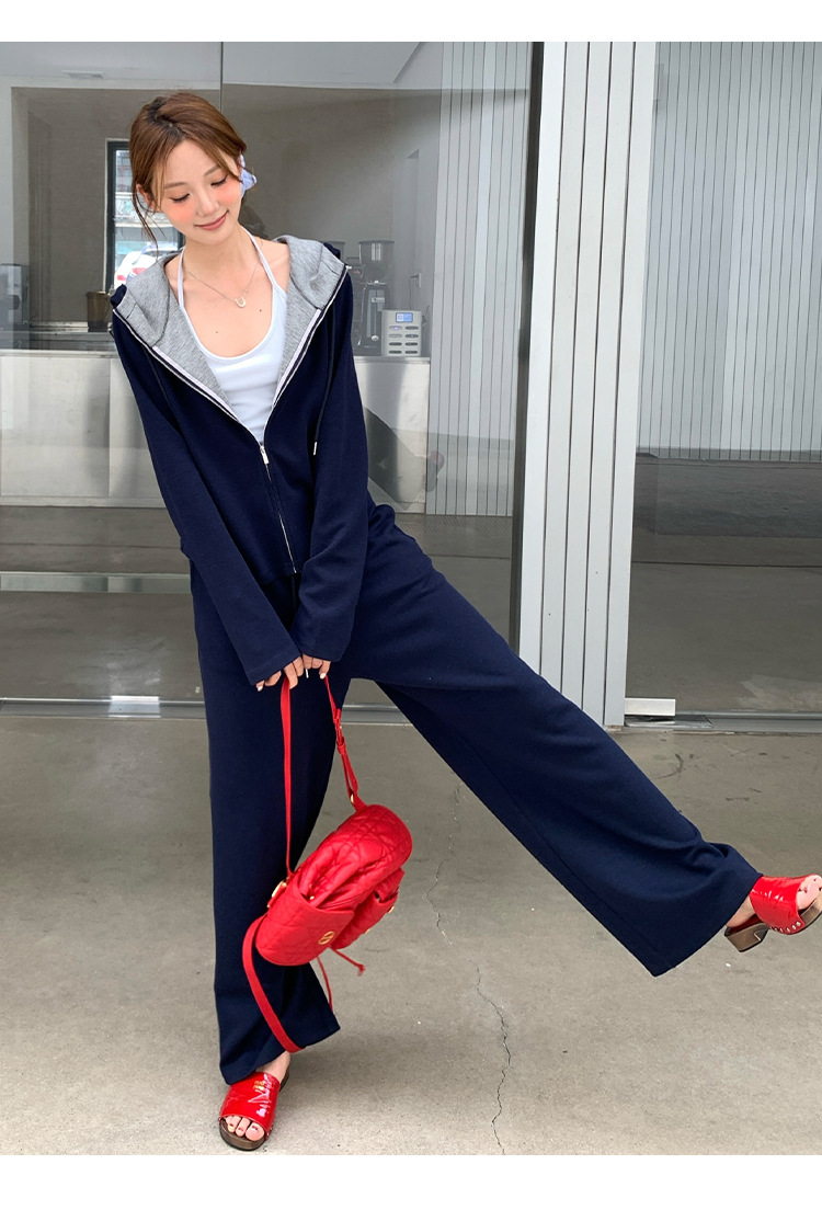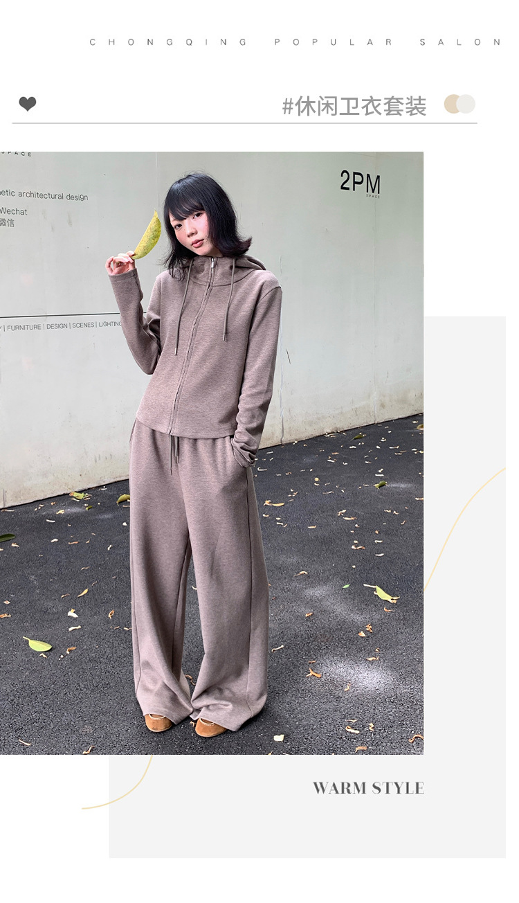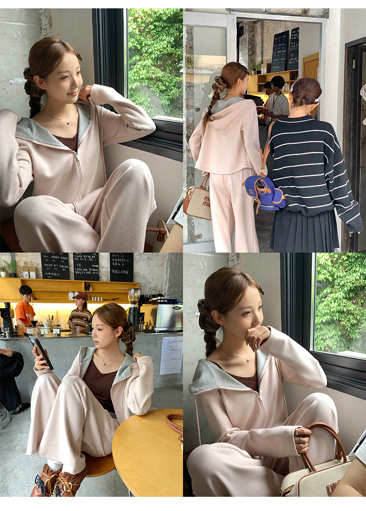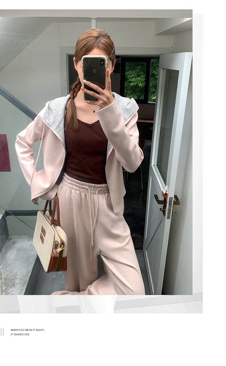 【专柜品质】撞色连帽卫衣运动套装 秋冬时尚显瘦气质拉链开衫两件套