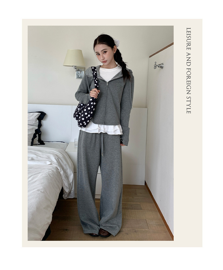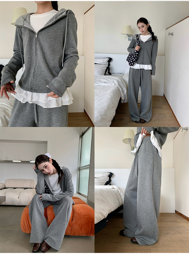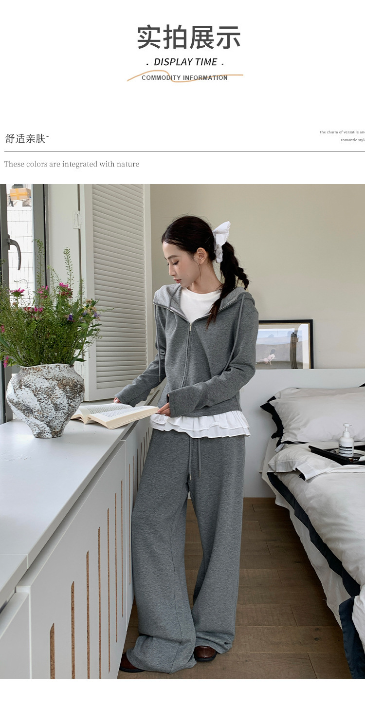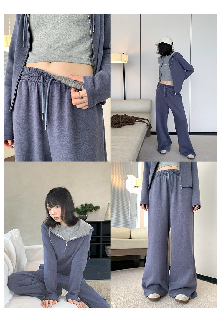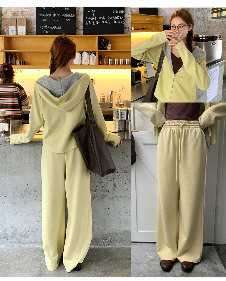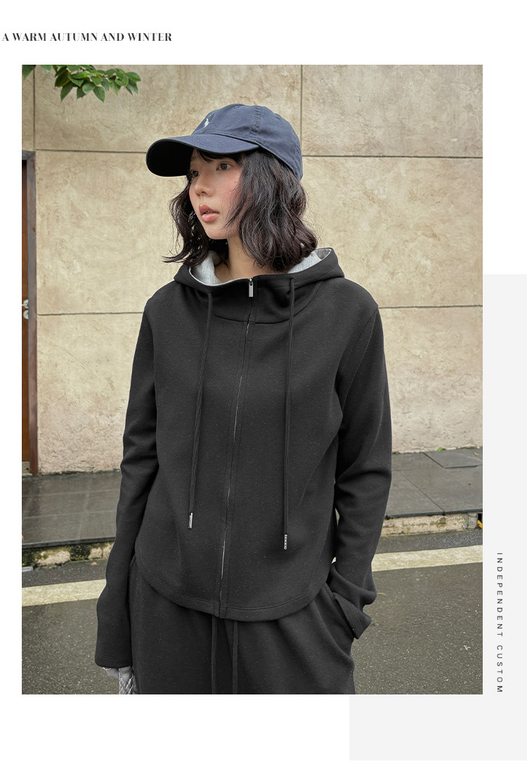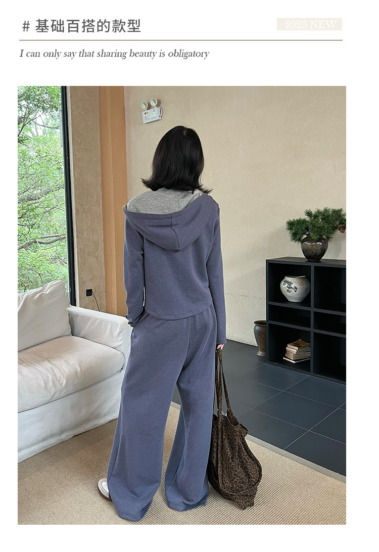 【专柜品质】撞色连帽卫衣运动套装 秋冬时尚显瘦气质拉链开衫两件套
