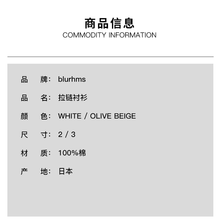 blurhms Chambray Zip Shirt 高密度超长棉拉链长袖衬衫