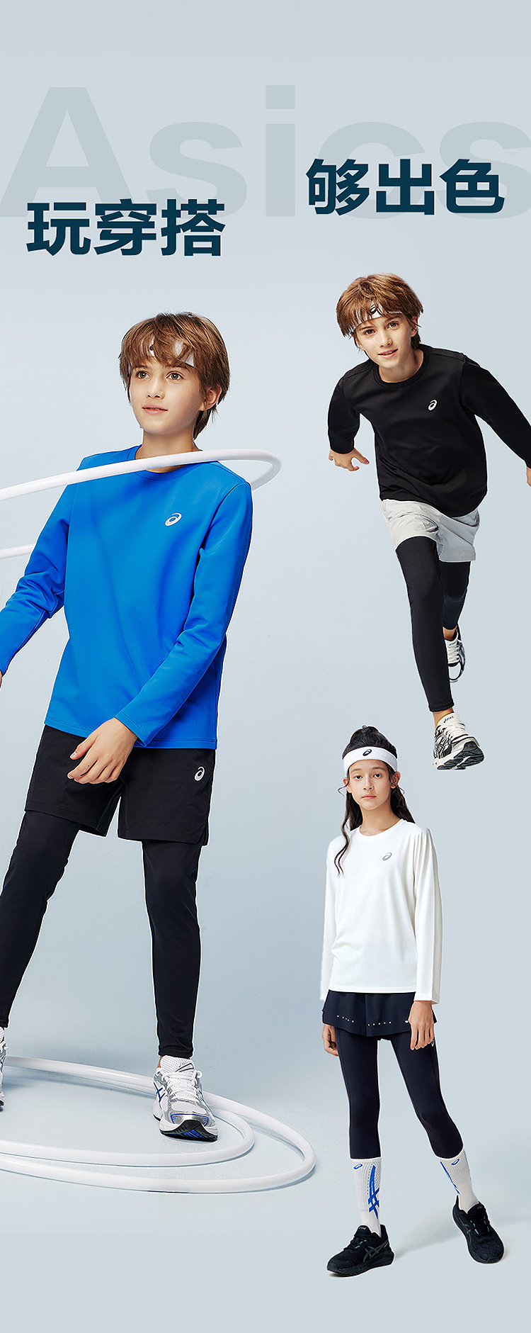 ASICS/亚瑟士童装25年冬季儿童吸湿排汗长袖T恤蓄热保暖基础百搭