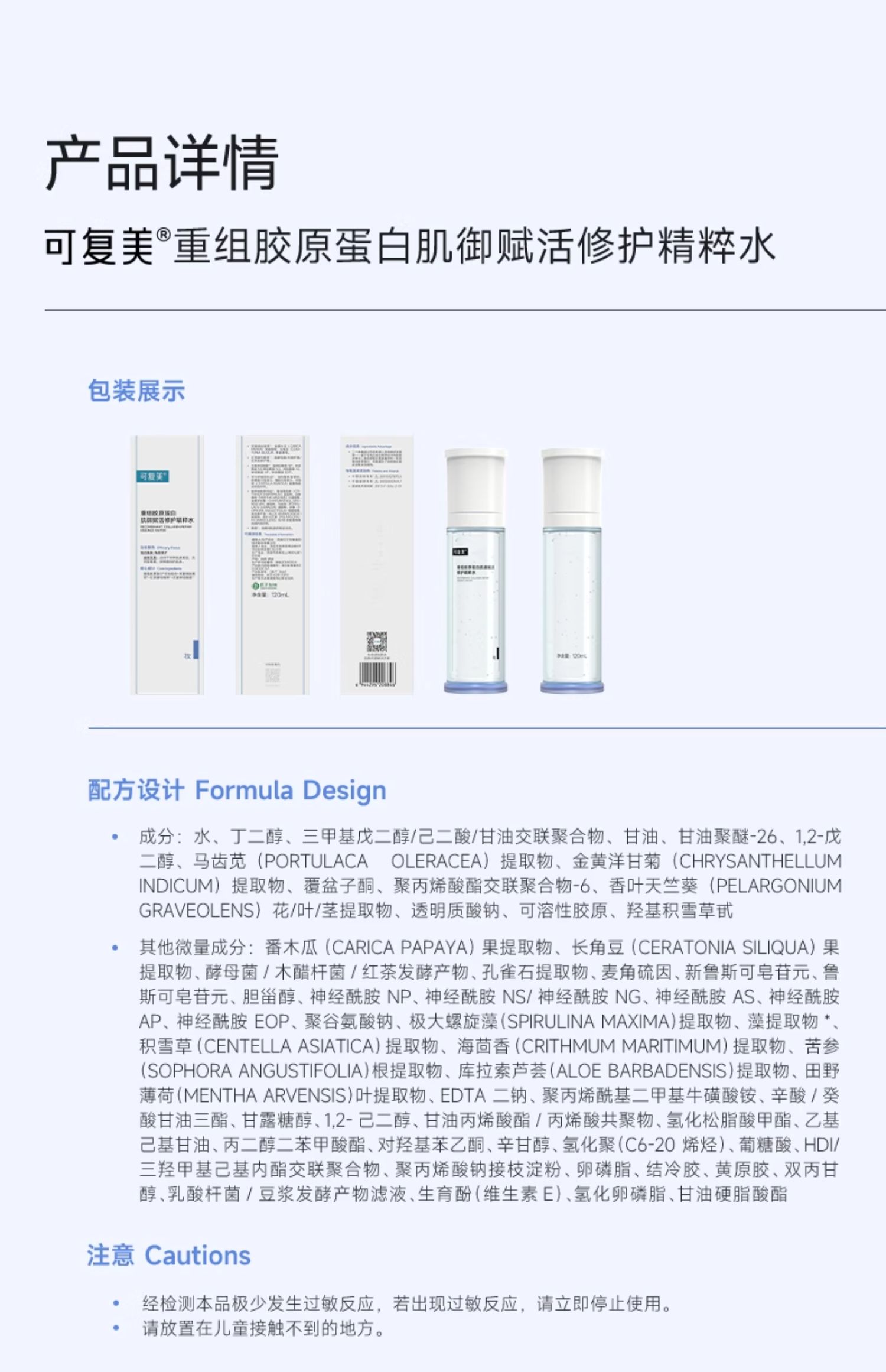 可复美重组胶原蛋白肌御赋活修护精粹水120ml/瓶(胶原水)