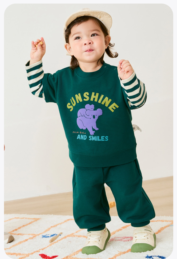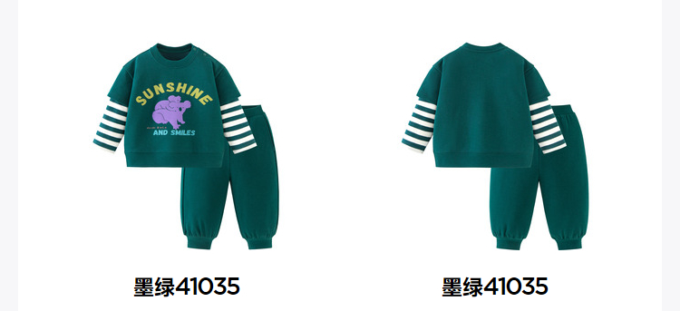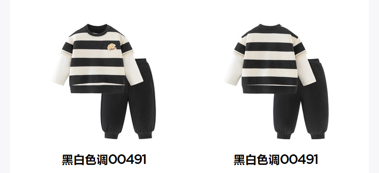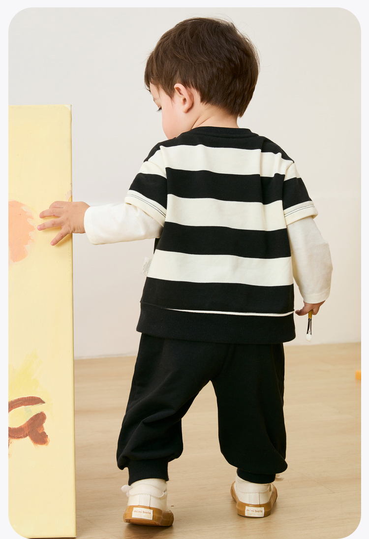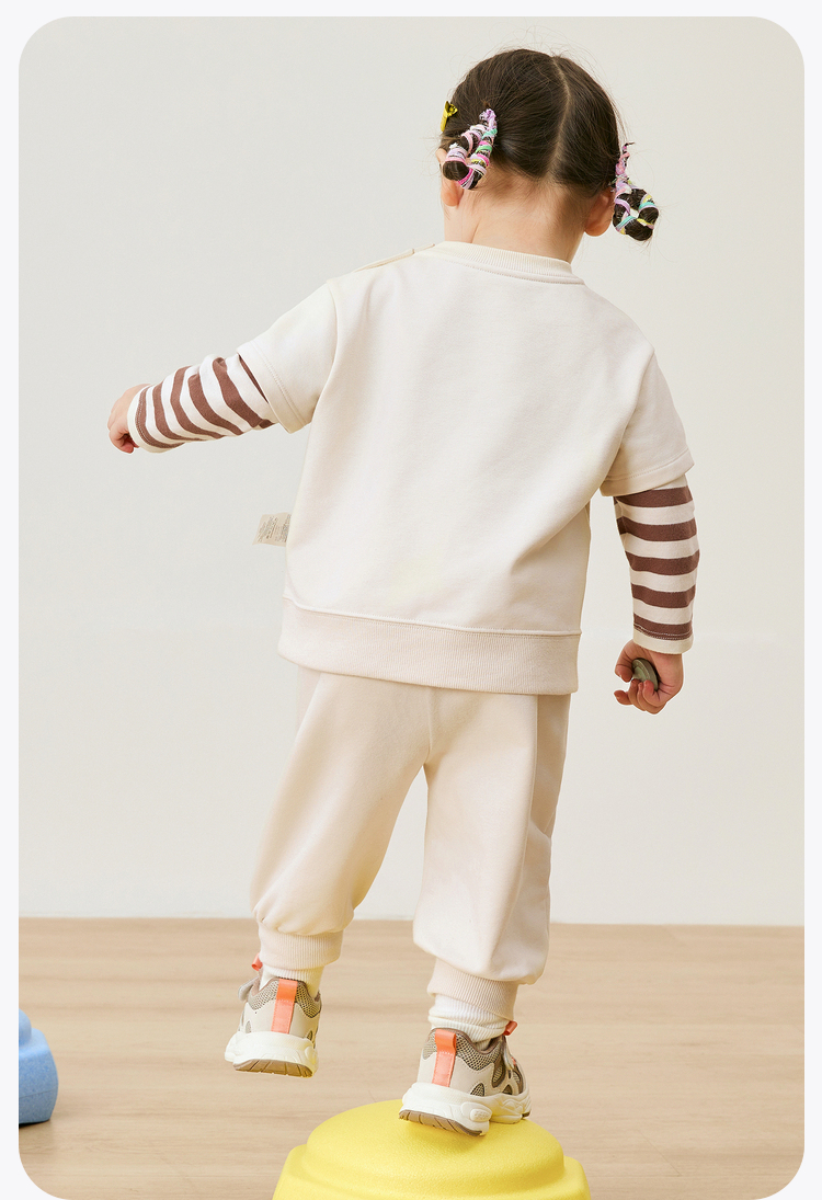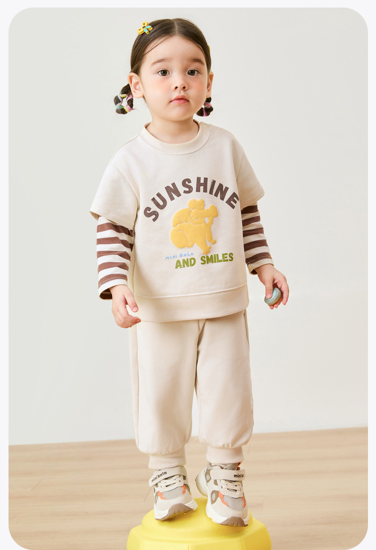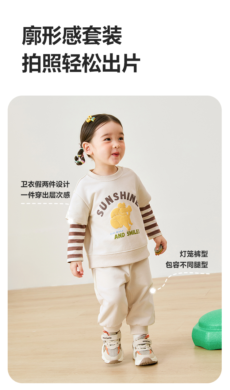 迷你巴拉长袖套装男童女童潮流萌趣假两件卫衣长裤两件套