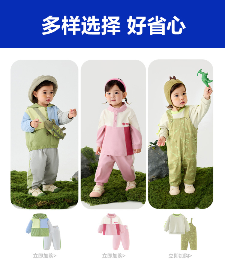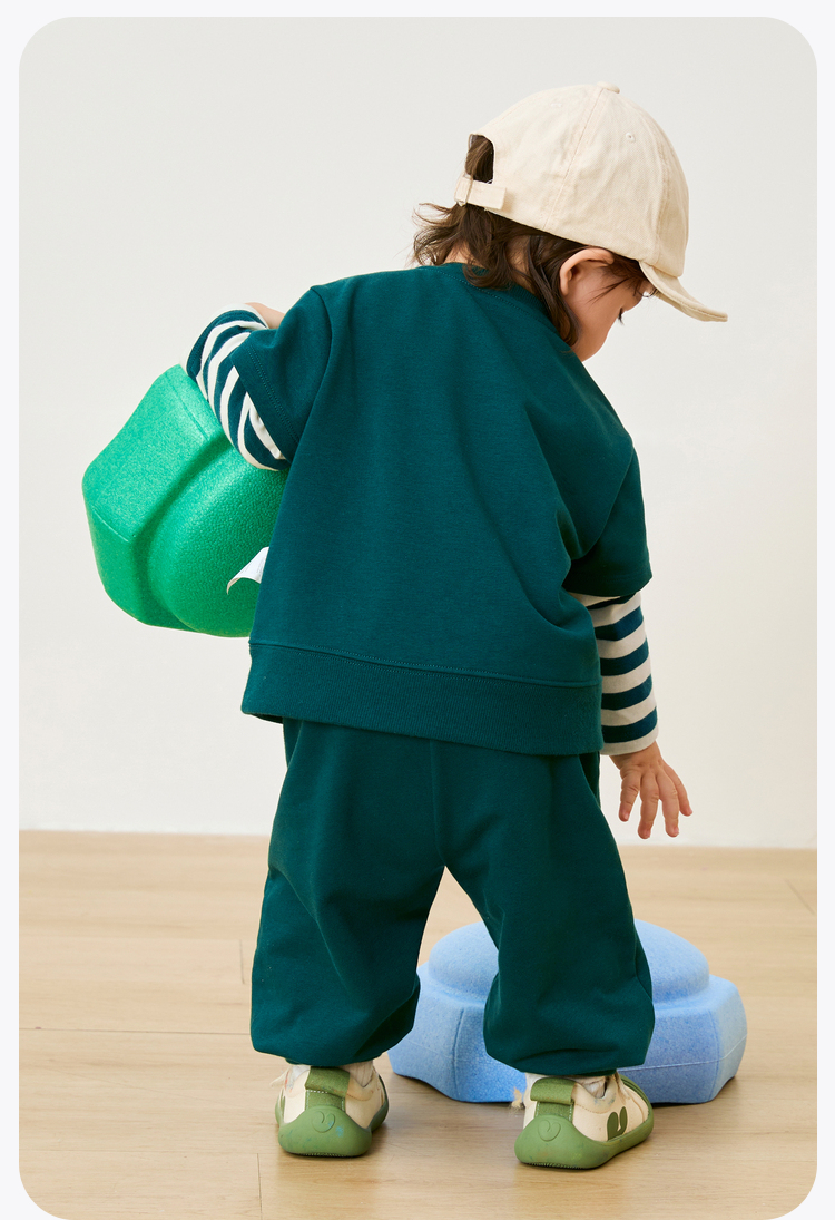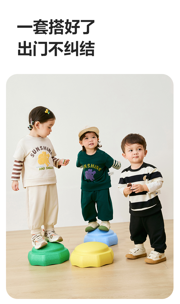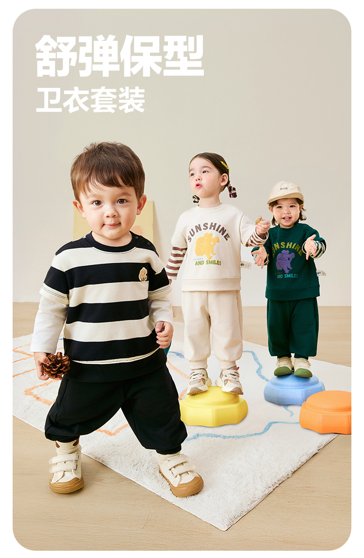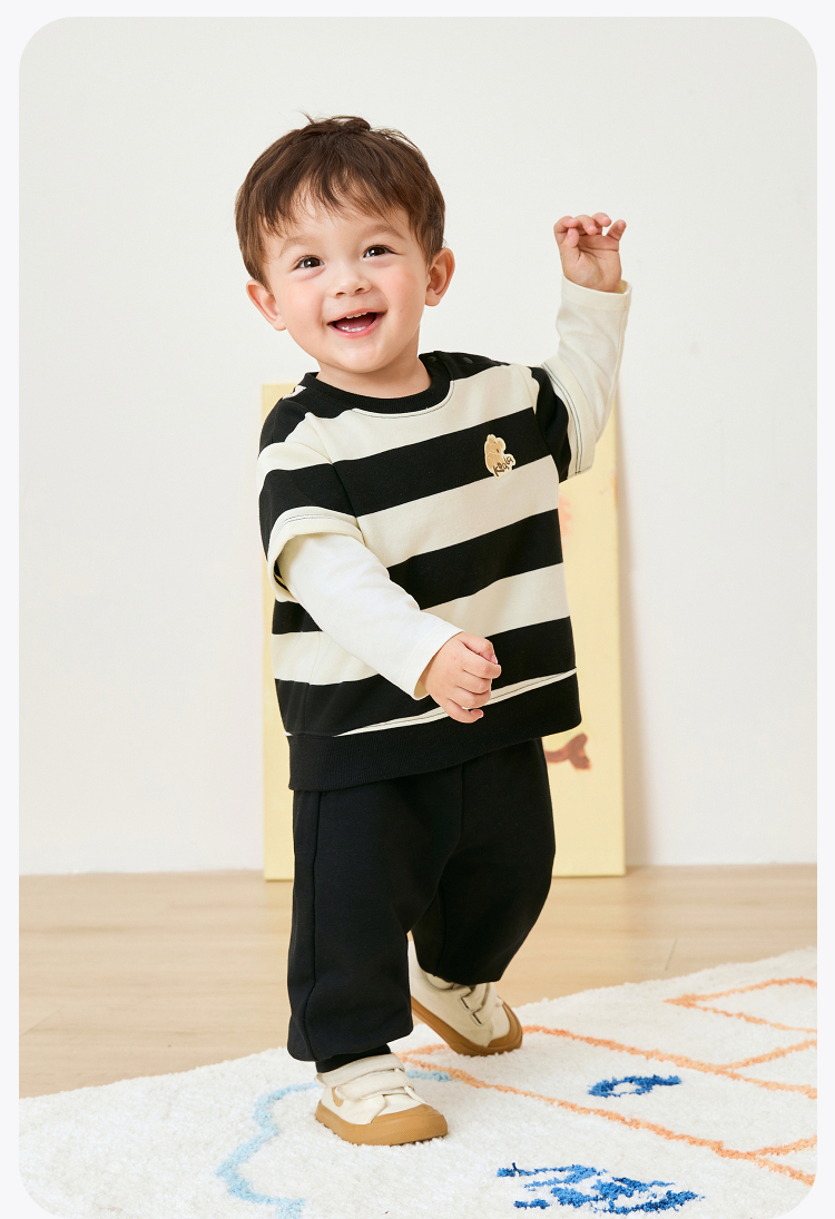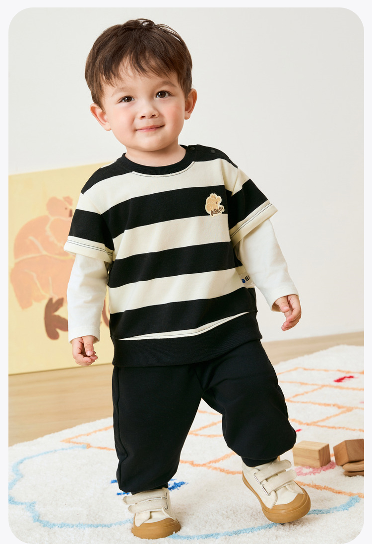迷你巴拉长袖套装男童女童潮流萌趣假两件卫衣长裤两件套