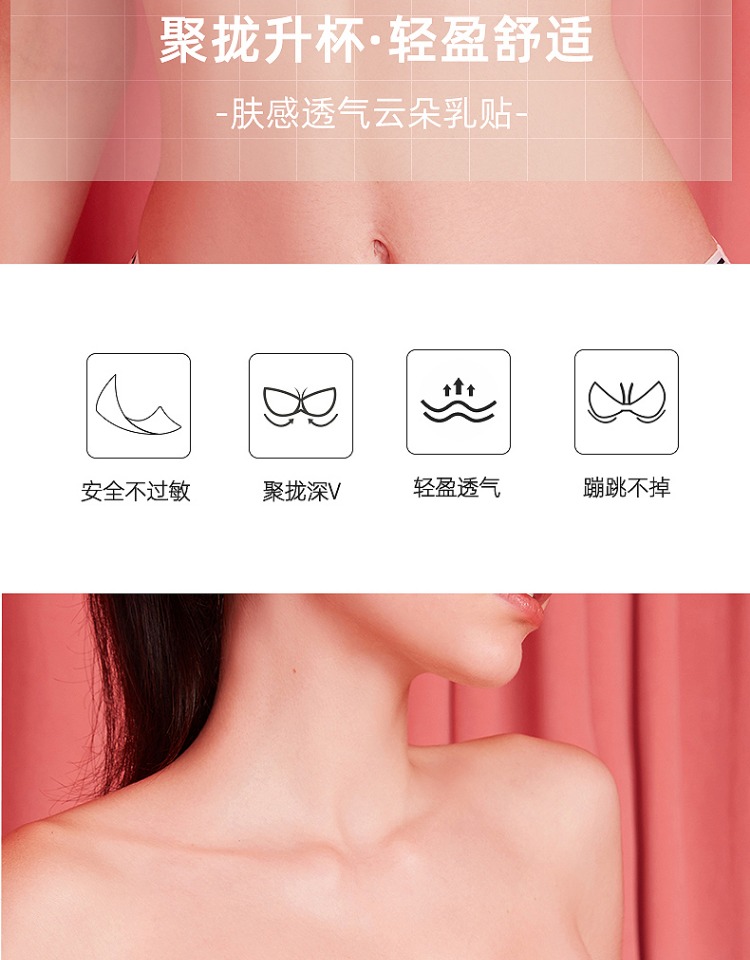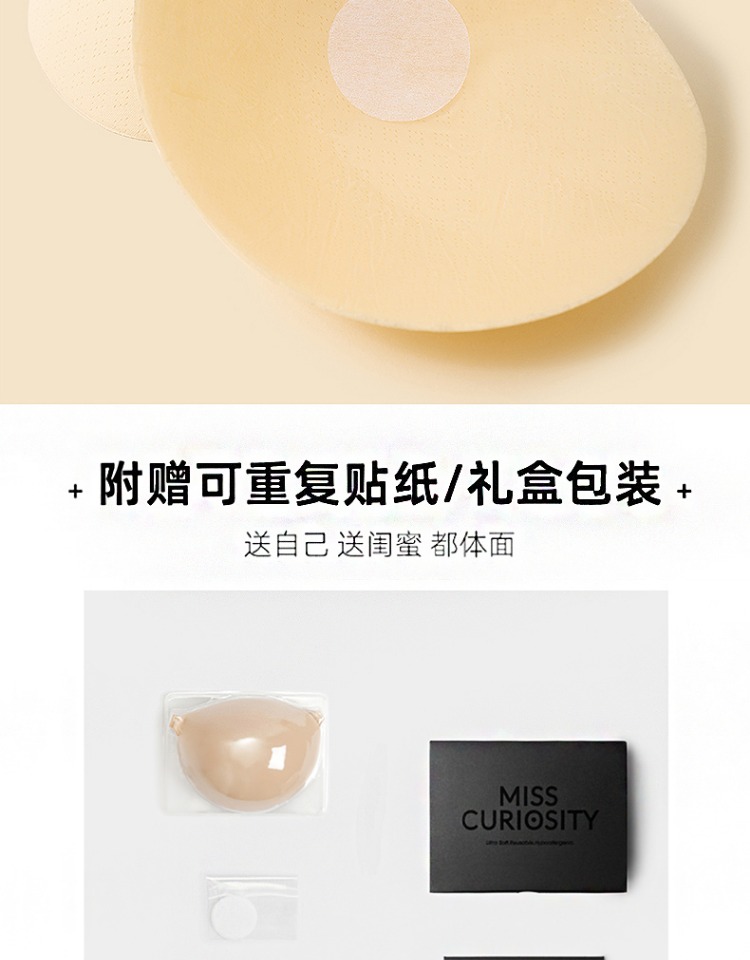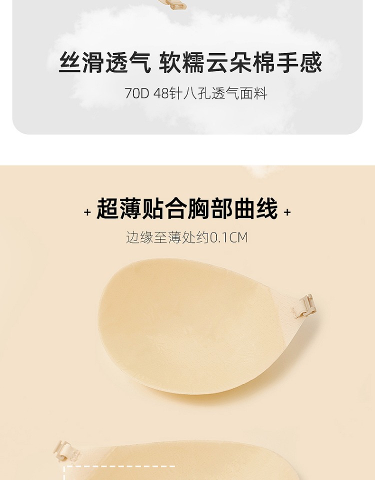 好奇蜜斯透气乳贴硅胶防走光隐形防凸点婚纱用小胸聚拢胸贴女夏 肤感透气云朵乳贴