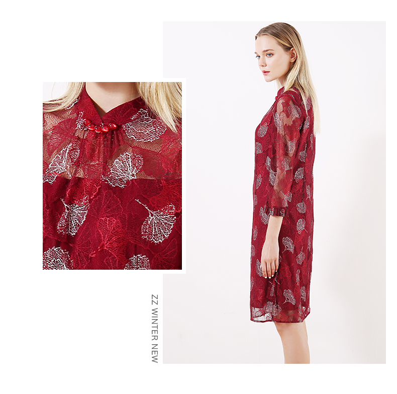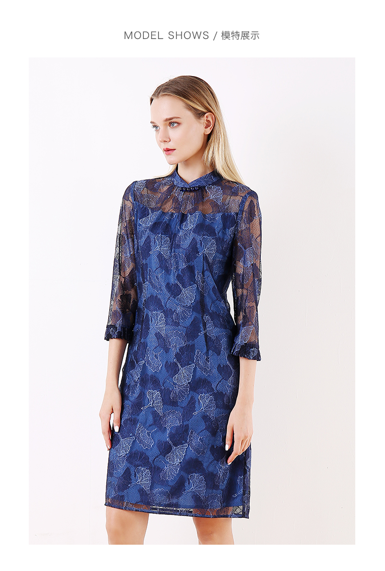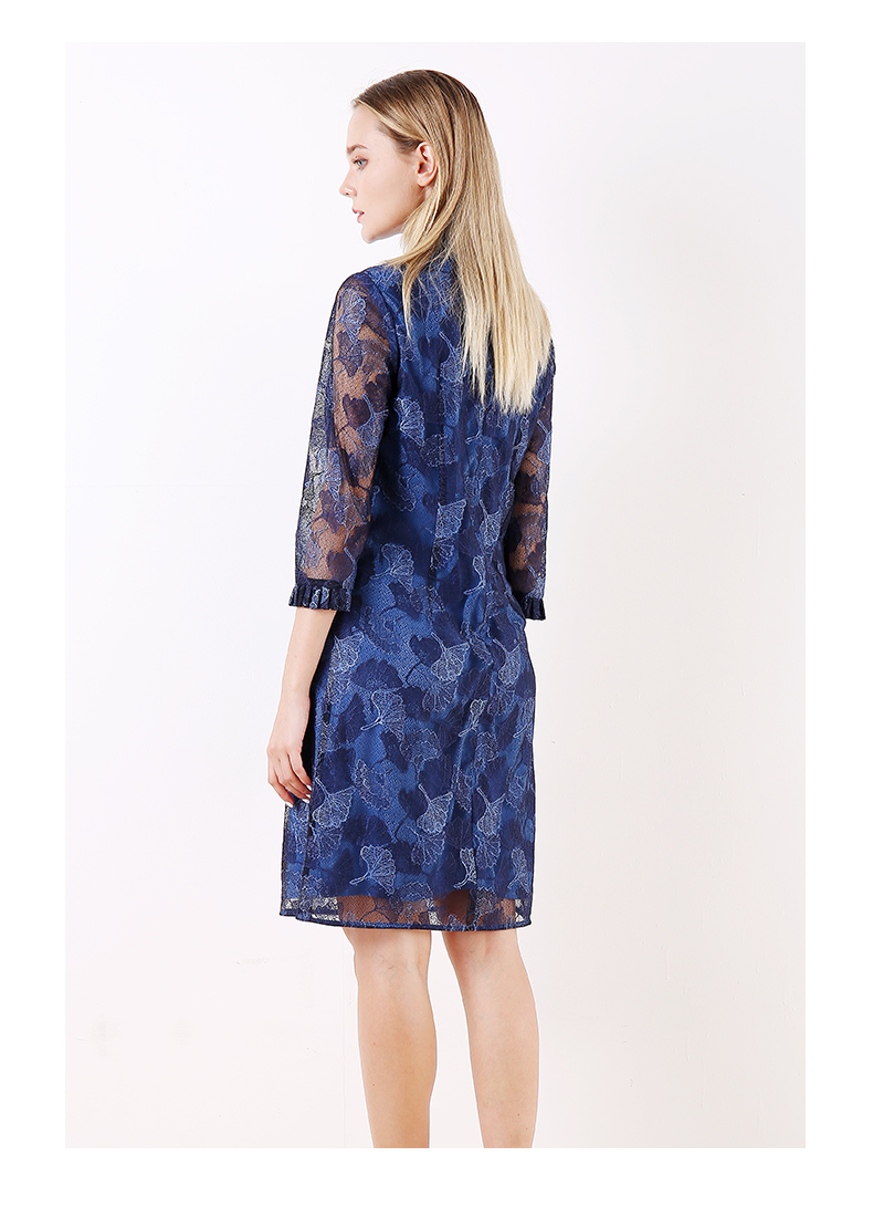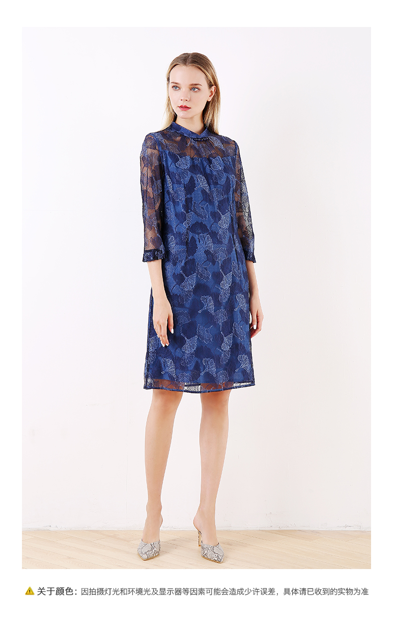 佐尔美早春季新款优雅气质蕾丝花边领复古中袖中长连衣裙E91LL24