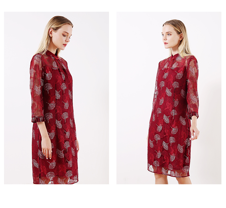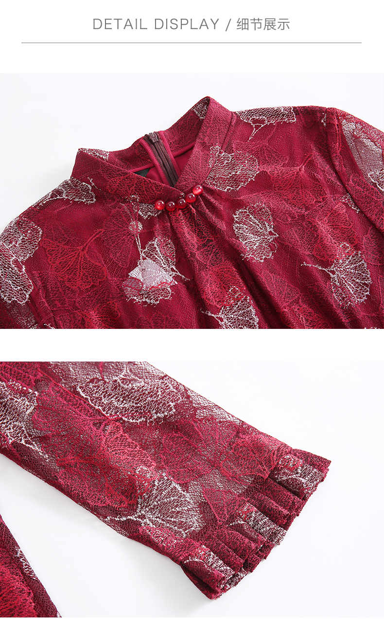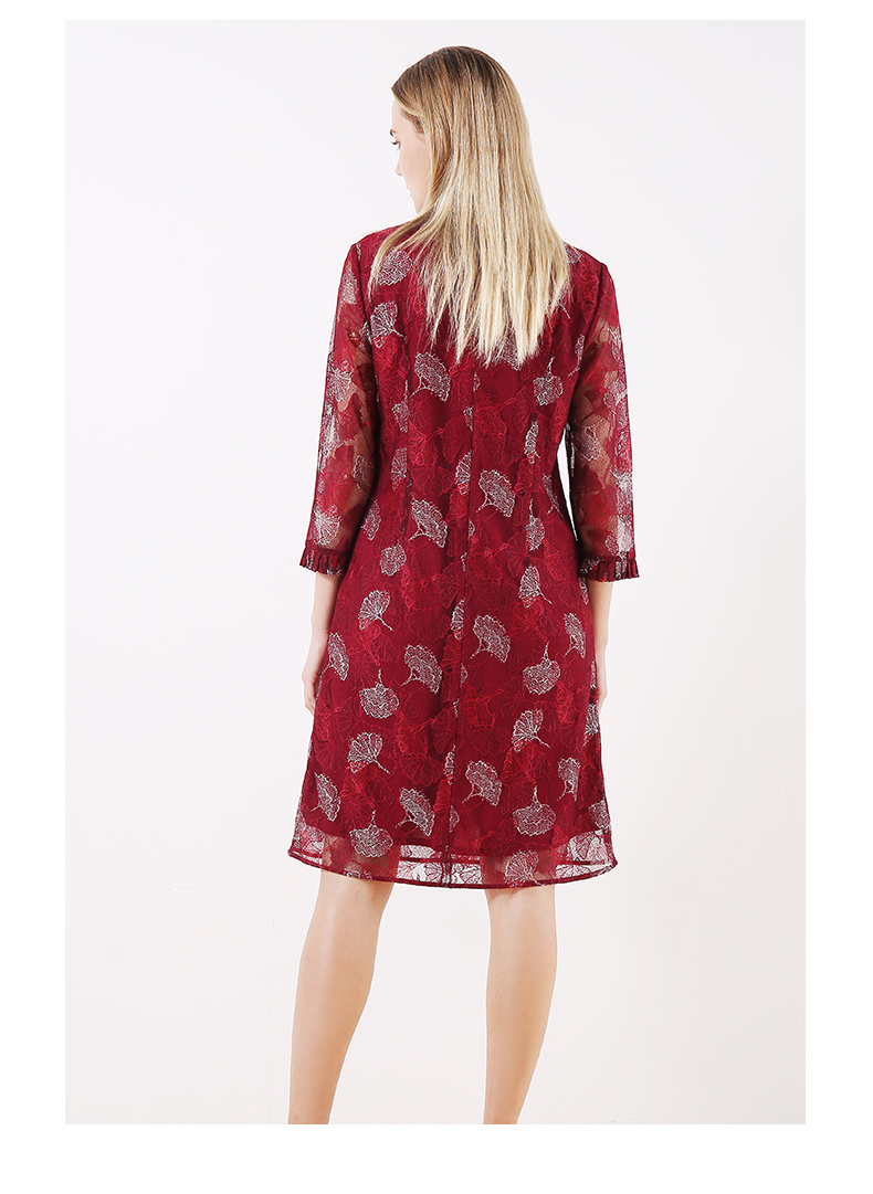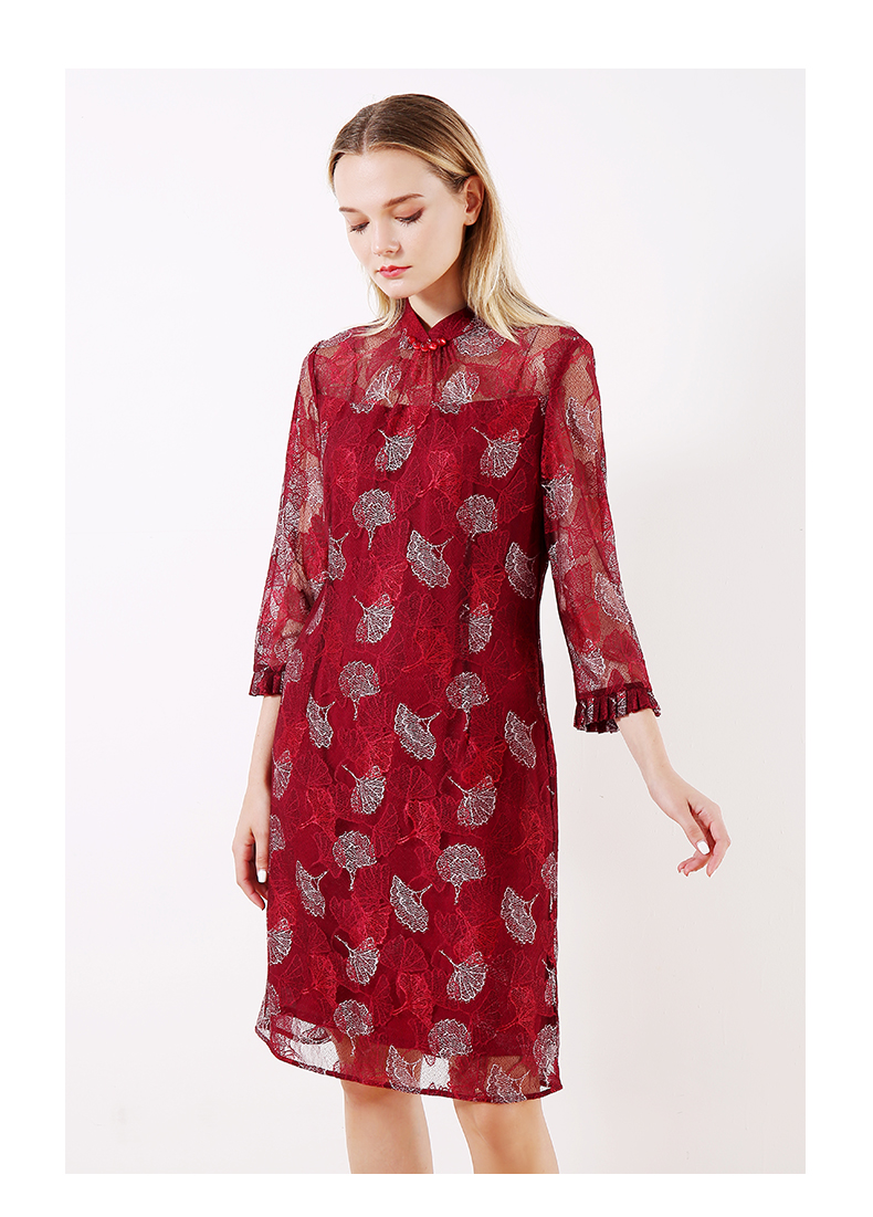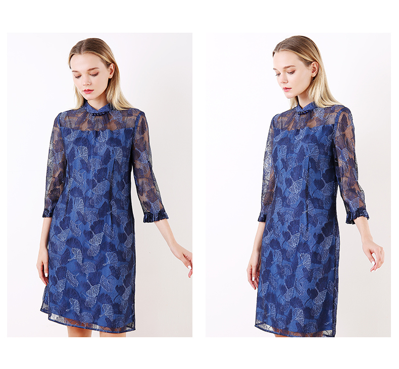 佐尔美早春季新款优雅气质蕾丝花边领复古中袖中长连衣裙E91LL24
