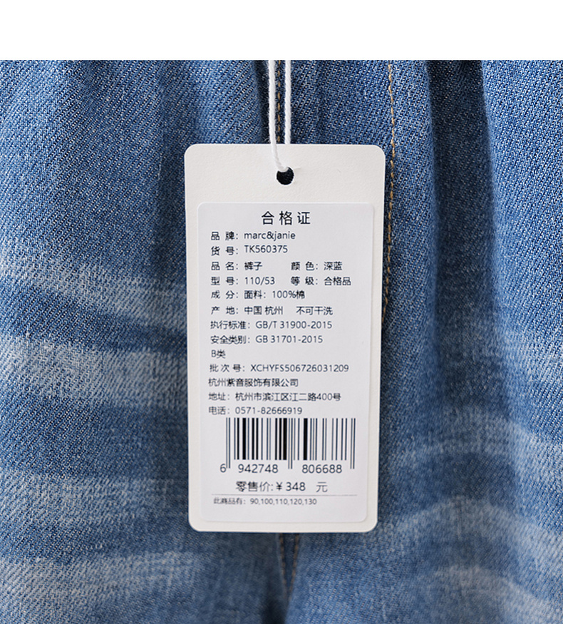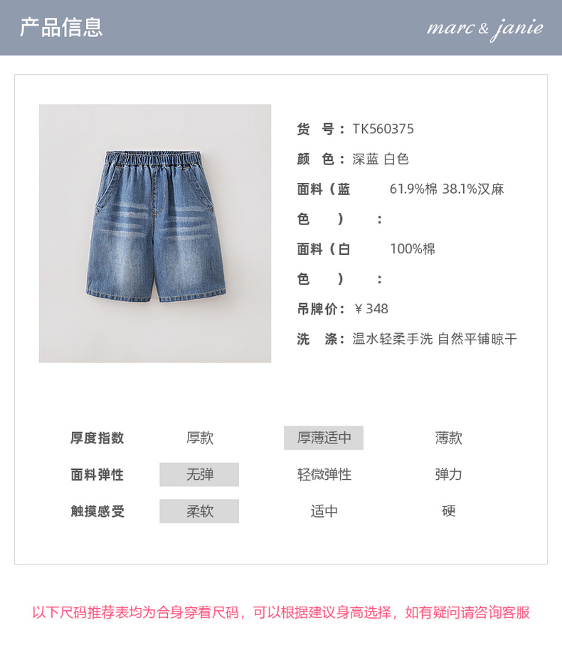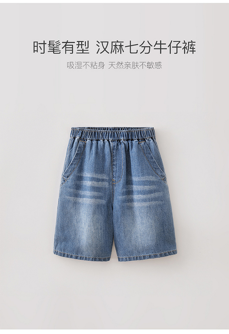 马克珍妮时髦有型男童汉麻七分牛仔裤2026年夏装新款560375