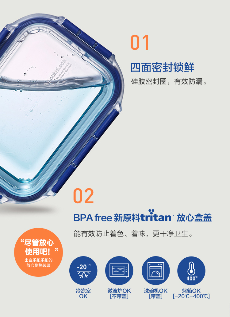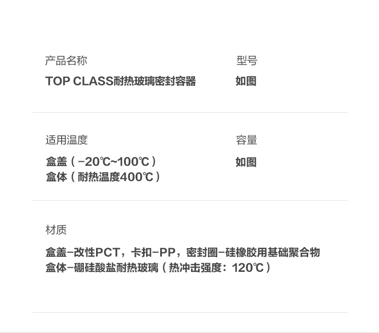 乐扣乐扣(LOCK&LOCK)TOPCLASS耐热玻璃保鲜盒单品 LBG