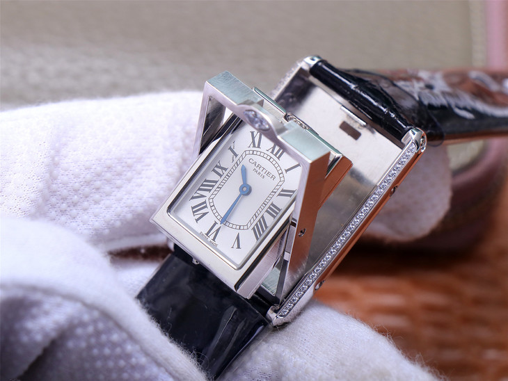 AW卡di亚翻转坦克,以其著名的长方形坦克为基础造型,再加上表身可,以翻转的功能,尺寸31×26×6.5,女士腕表,皮表带,石英机芯,密底
