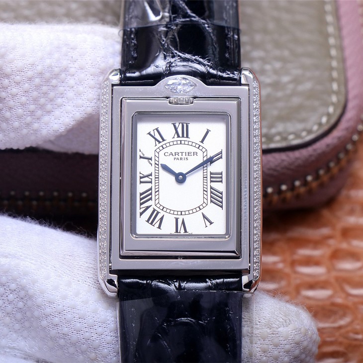 实拍 AW厂最新卡地亚翻转坦克卡地亚 Cartier的Tank Reversible系列诞生于1932年,也就是今日Tank Basculante的前身,是以其著名的长方形坦克为基础造型,再加上表身可以翻转的功能,此功能称为Cabriolet,法文的意思是有篷的马车,取其翻转过程形式篷顶收放,表壳电白金品质,搭配美州鳄鱼皮表带尺寸长31m宽26厚6.5。