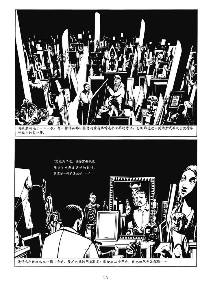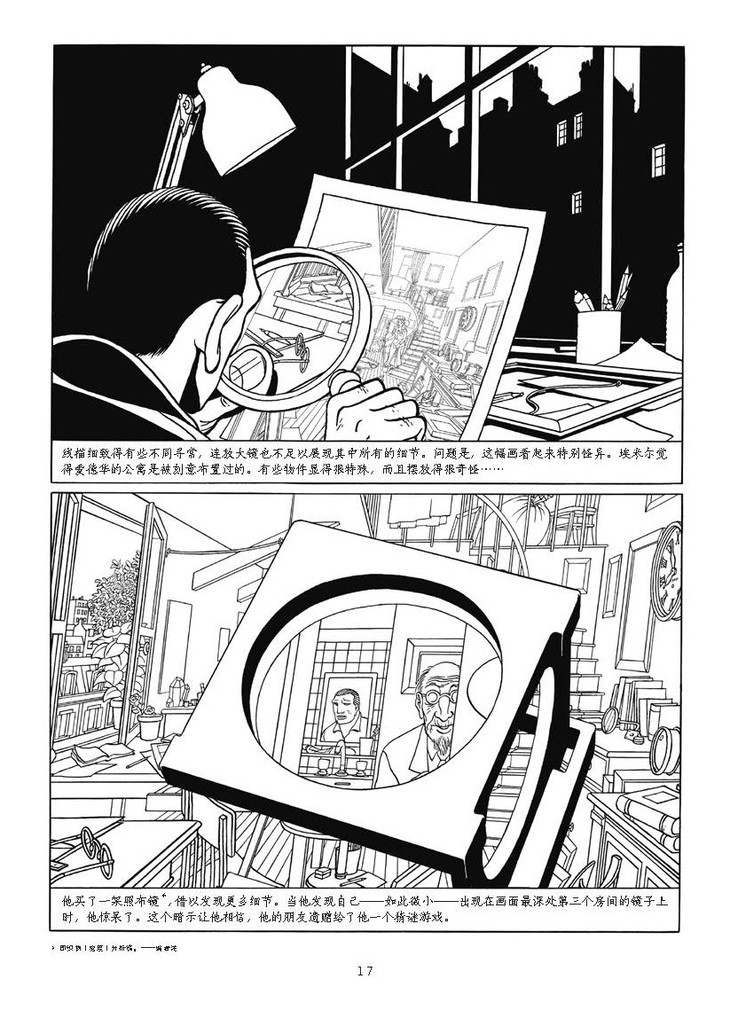 这本《画的秘密》,在马修的作品序列里显得充满诗意,安静神秘,从头到尾渗透着强有力的思想。同时,此书也营造了马修所擅长的图像迷宫般的世界。墨线画风完美无缺,原创剧本引人入胜。