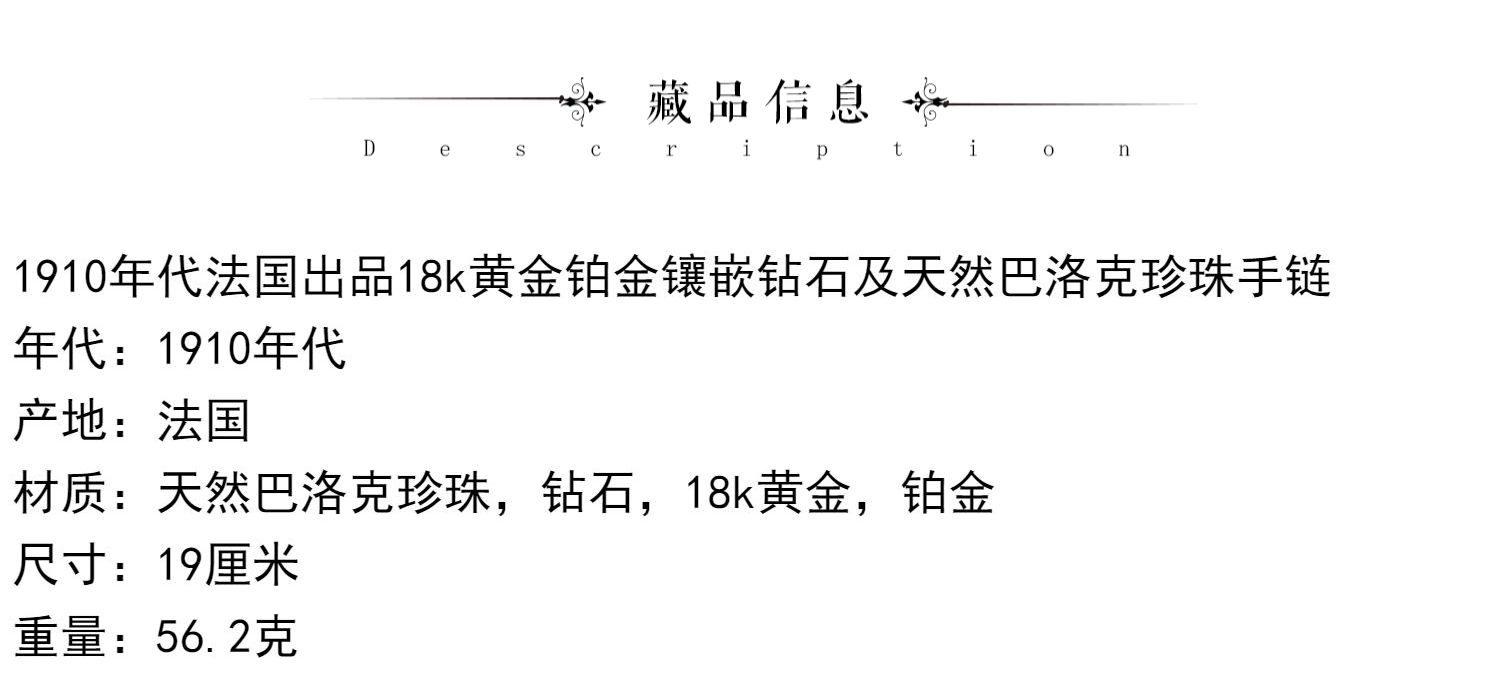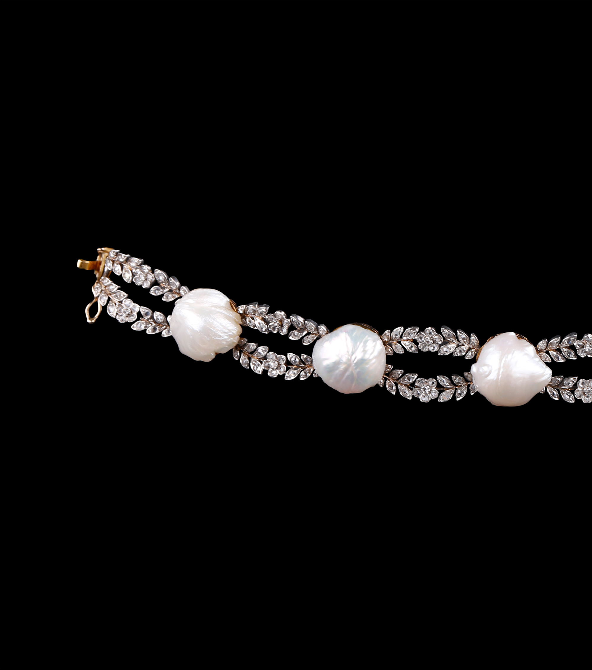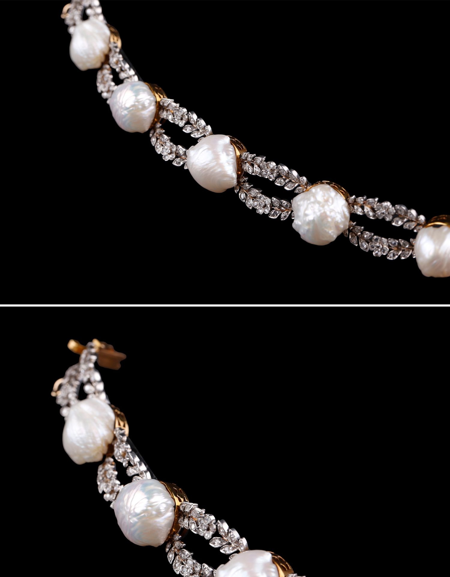 独角鹿西洋古董珠宝法国18K黄金铂金镶钻石天然巴洛克珍珠手链