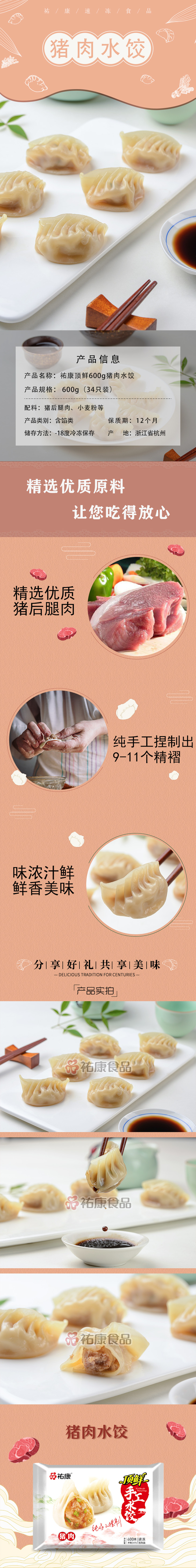 【包邮套餐】祐康600g顶鲜手工水饺(猪肉)*3包