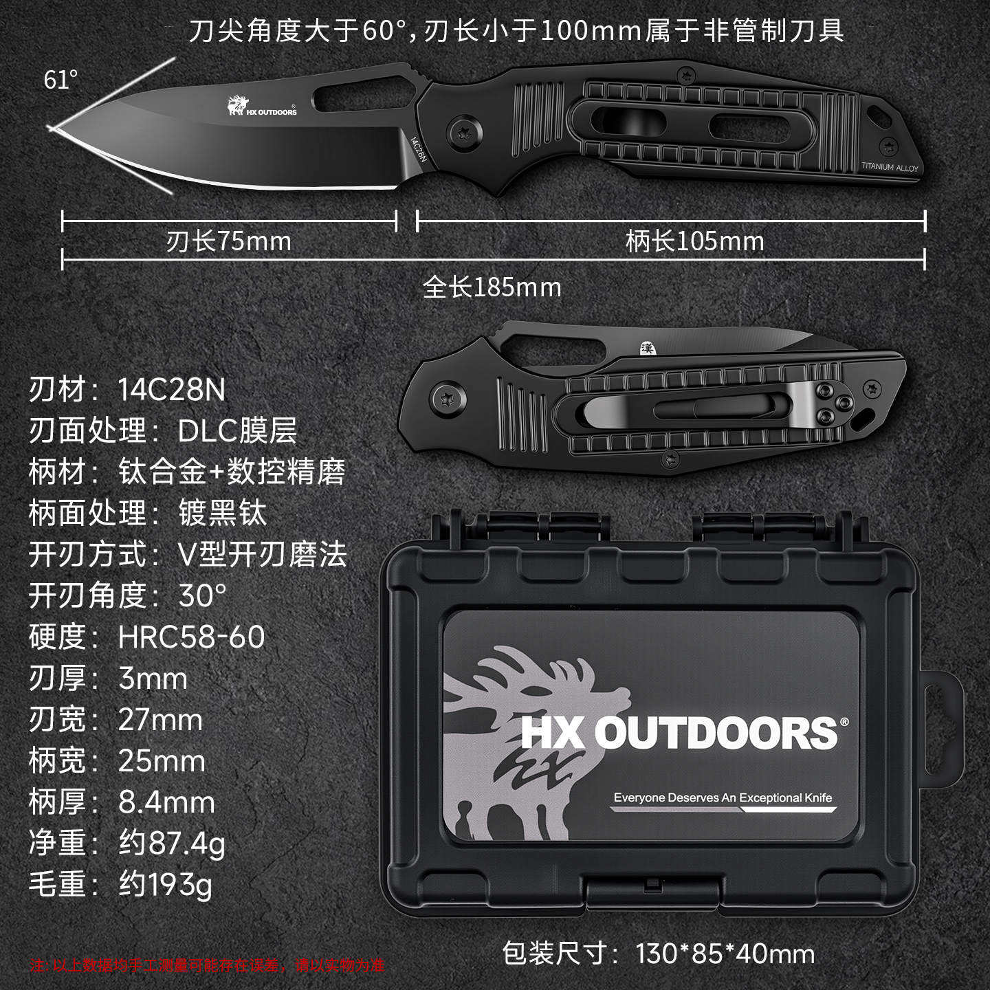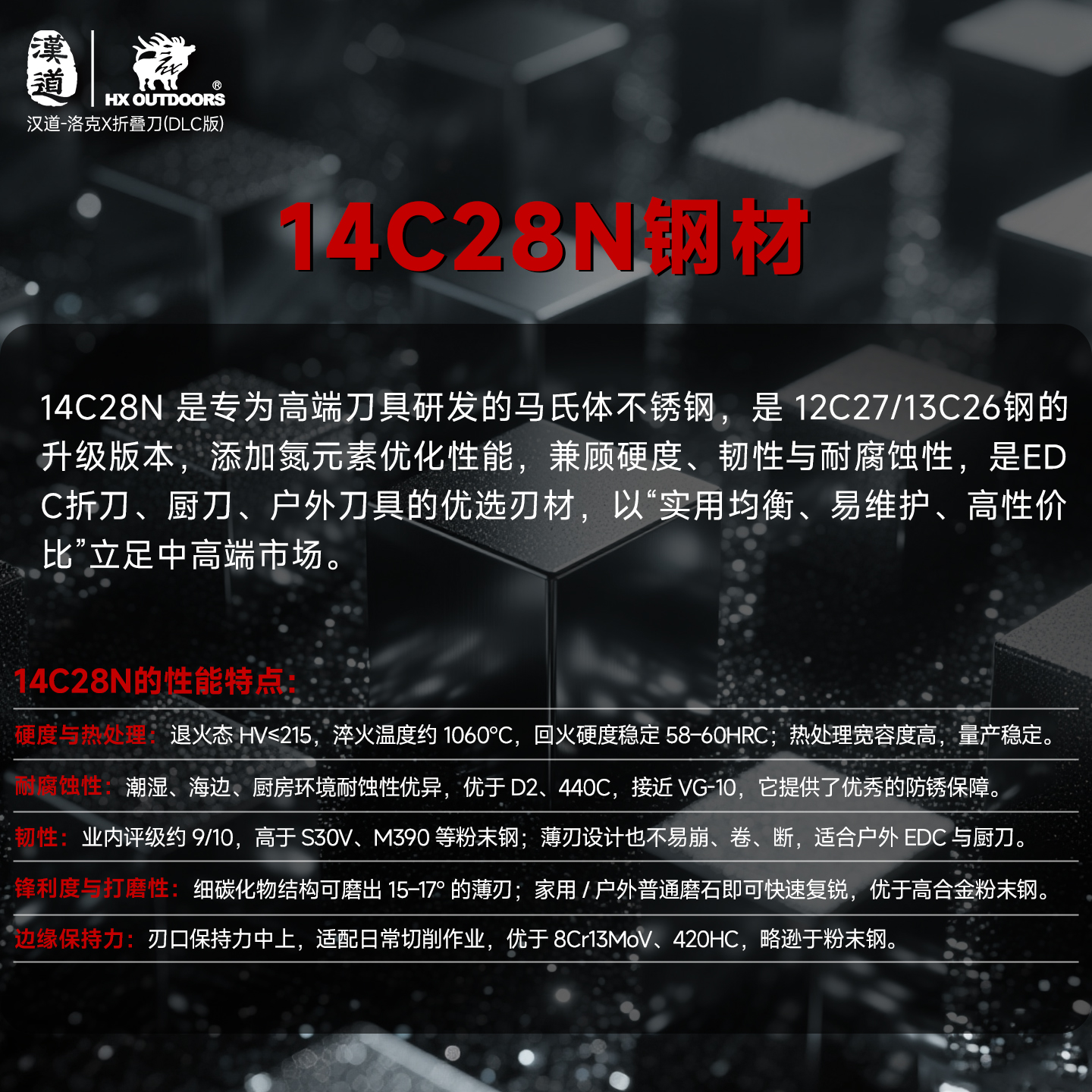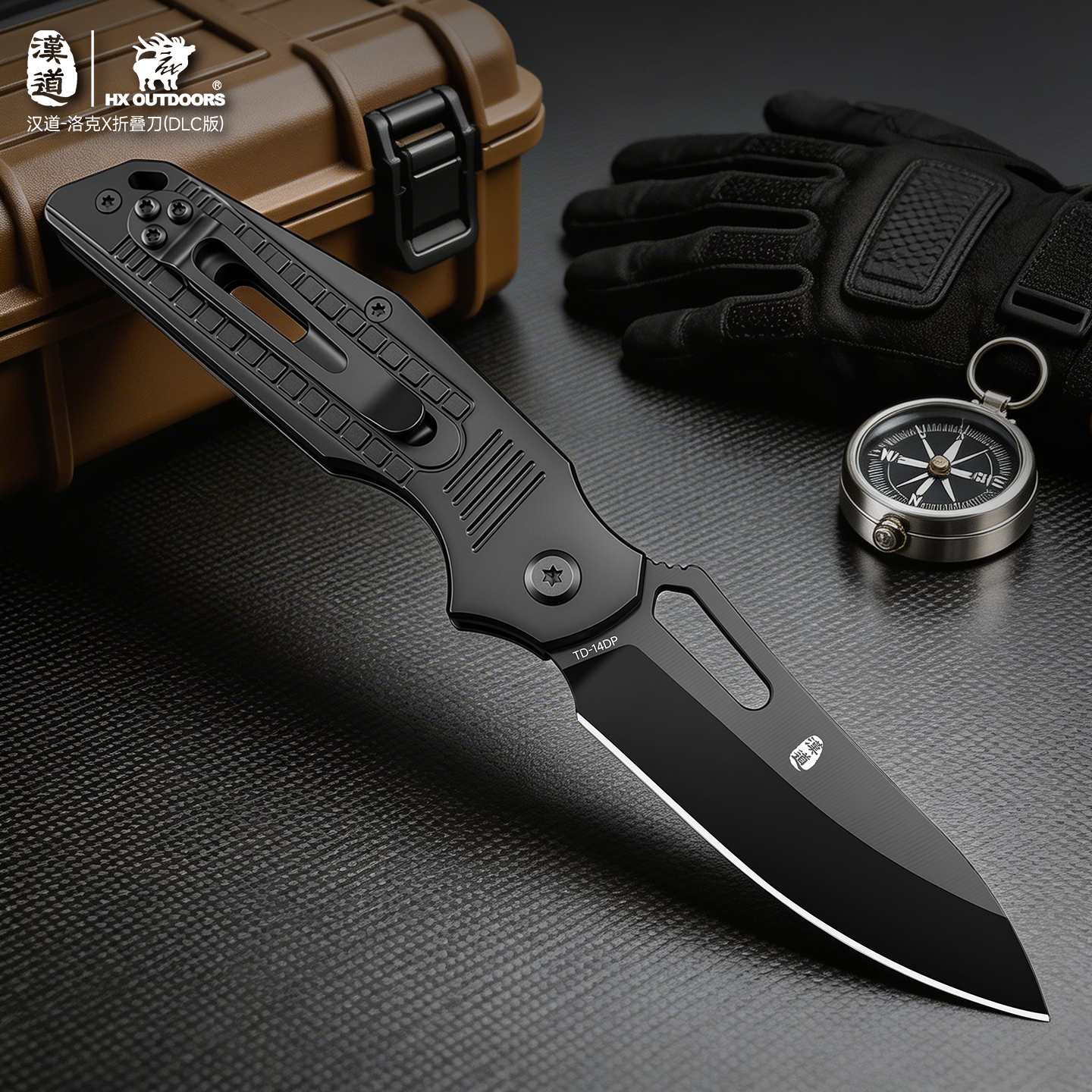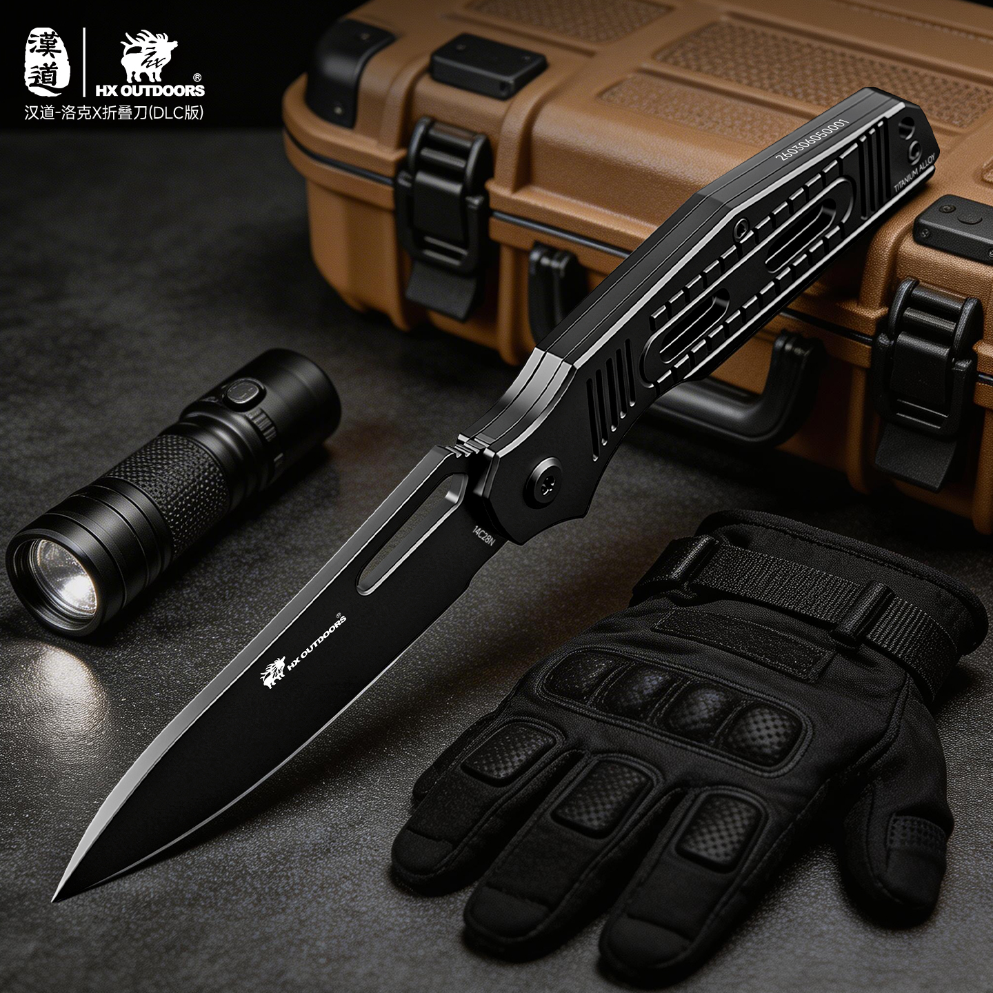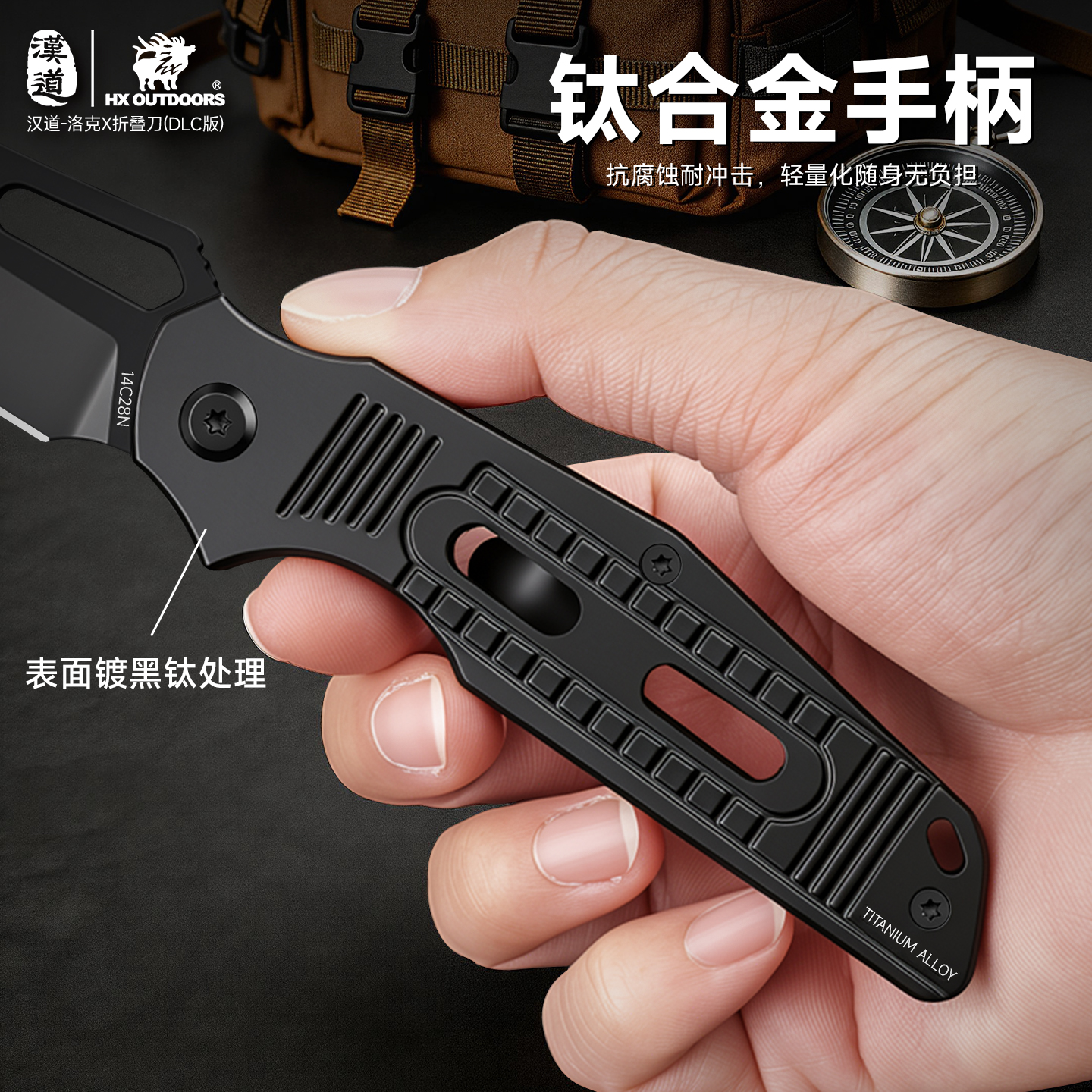 汉道14C28N洛克DLC涂层折叠刀求生刀户外折刀高硬度小刀家用水果刀便携菜刀(不带锁)