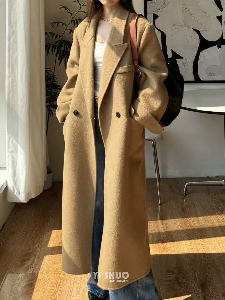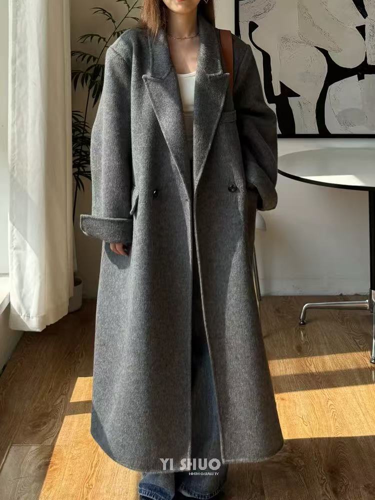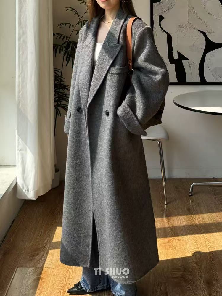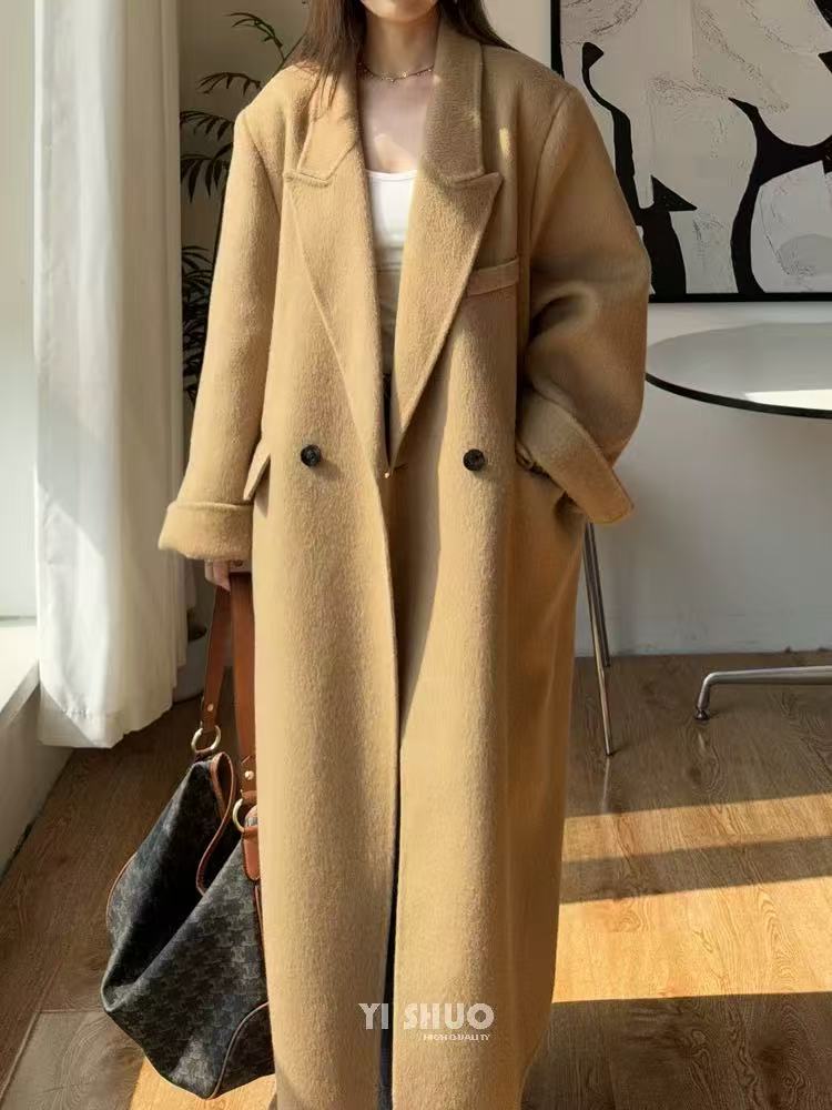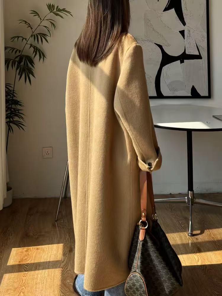 【YW】无忧购韩版宽松廓形百搭正肩双面羊毛大衣8812枪脖领(现货48小时发货)