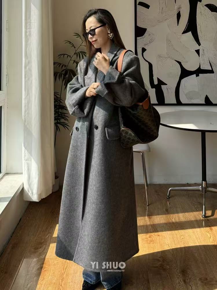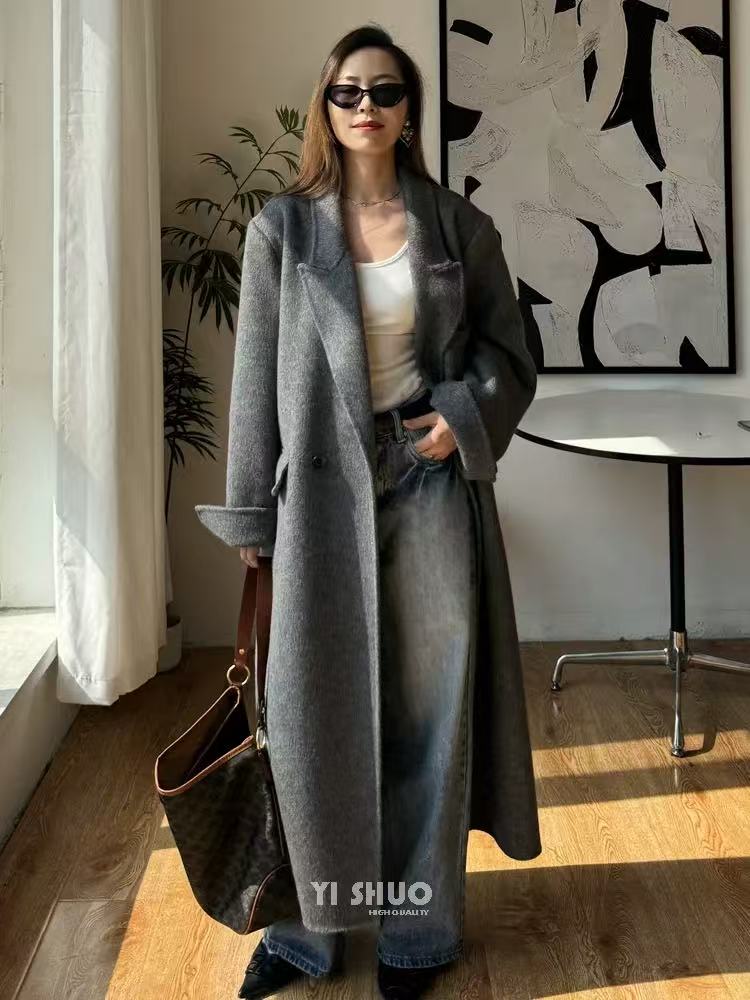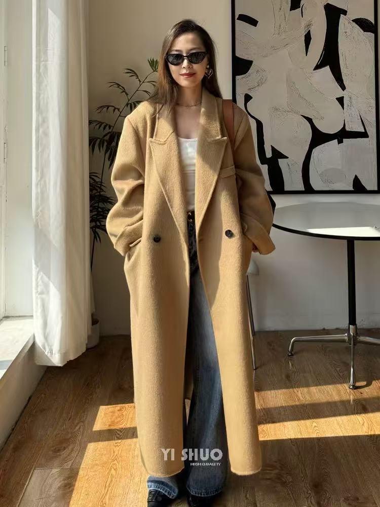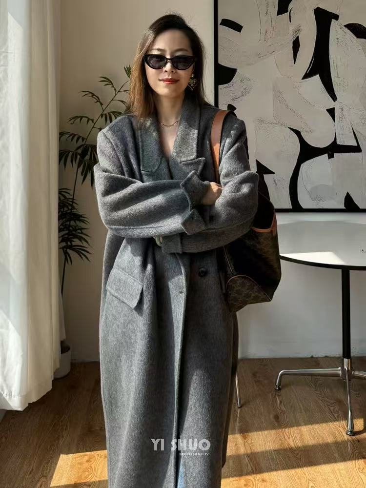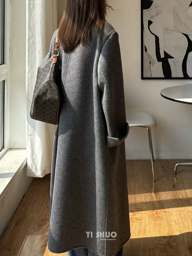 【YW】无忧购韩版宽松廓形百搭正肩双面羊毛大衣8812枪脖领(现货48小时发货)