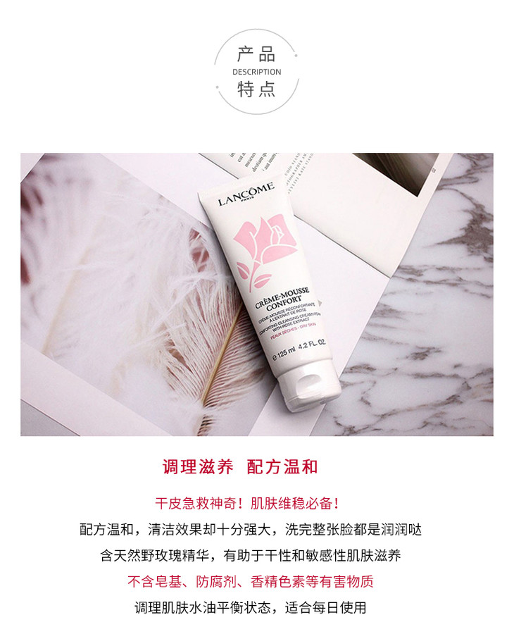 LANCÔME/兰蔻洗面奶 清滢柔肤滋润温和洁面乳粉色 干性肌肤适用 125ML