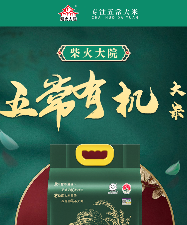 柴火大院 五常有机大米 稻花香米 五常大米 东北大米5kg
