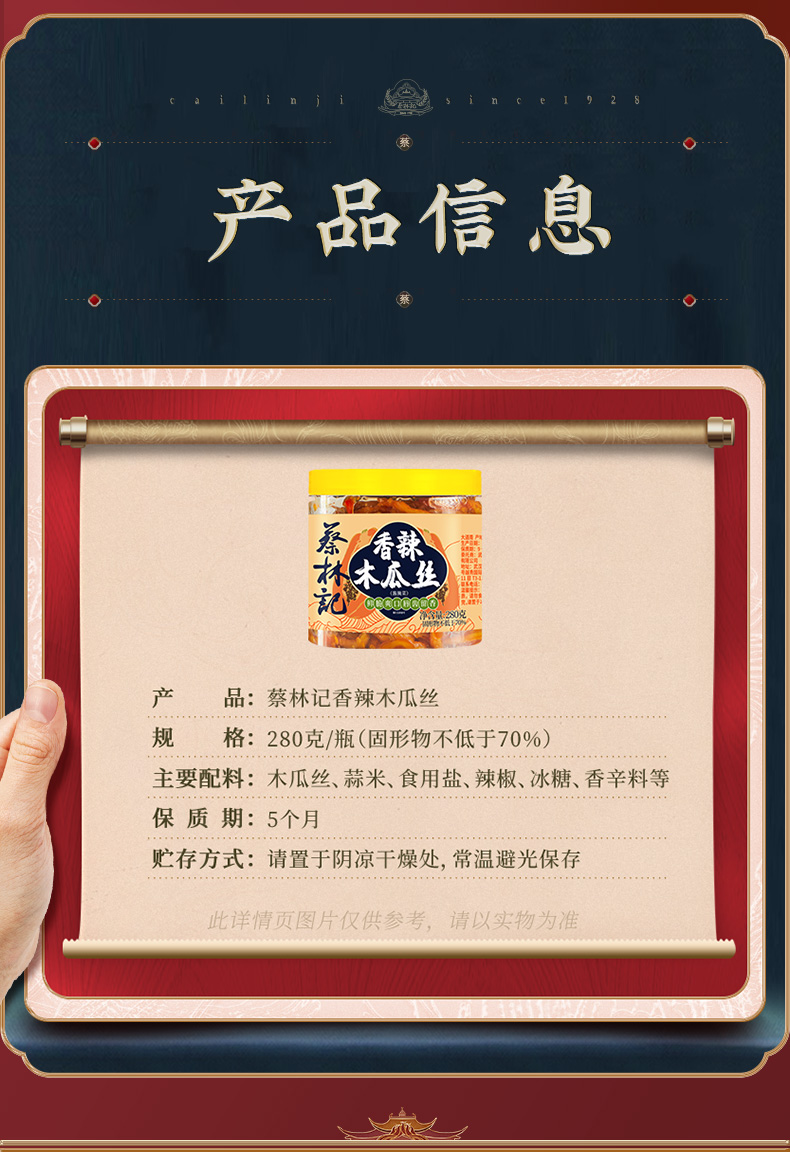 【第2件0元】蔡林记木瓜丝280g/瓶