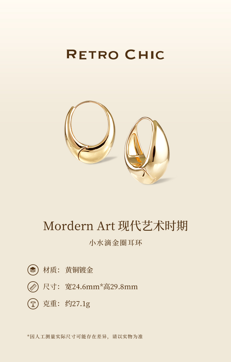 【网球职业运动员李娜&张予曦同款】Mordern Art 现代艺术时期 | 小水滴金/银圈耳环